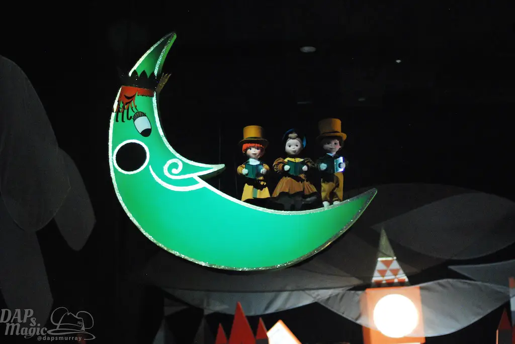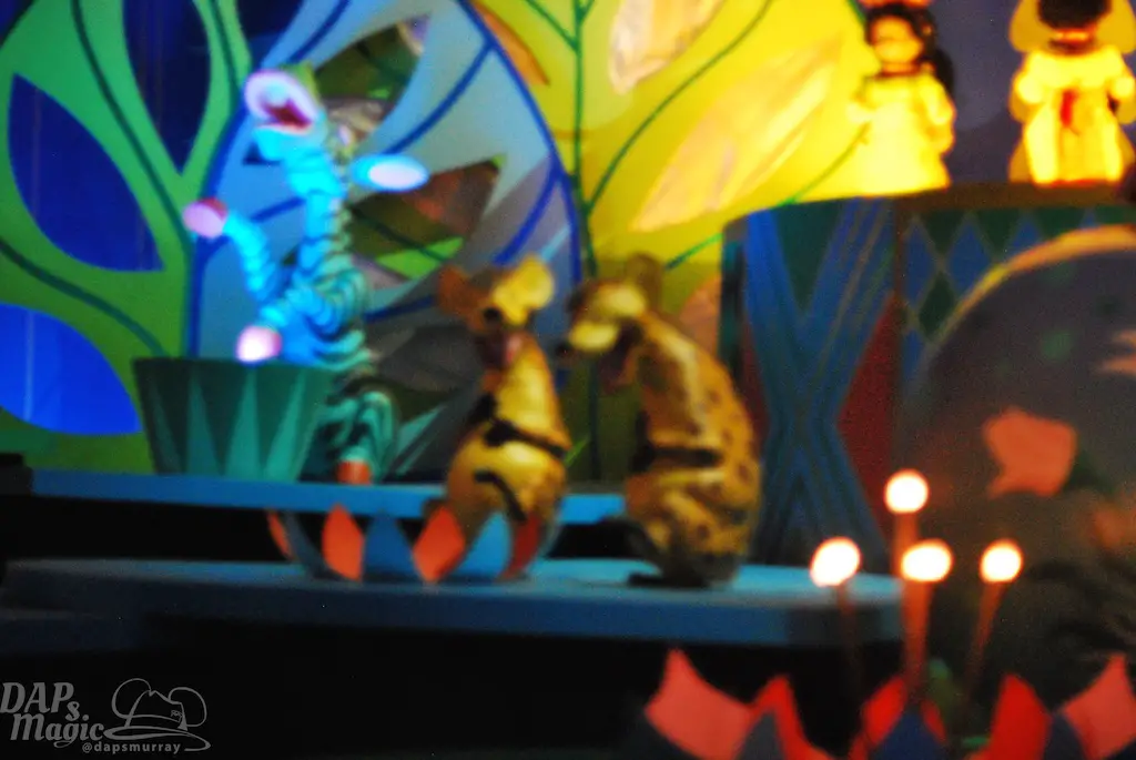 One of the best attractions of the park is located in this land. Pooh’s Hunny Hunt uses state of the art animatronics and vehicles to take guests on an entertaining ride through the Hundred Acre Wood. The audio animatronics have fur on them instead of a plastic look, and they are fully animated as opposed to limited animation. The vehicles are what are known as “trackless dark ride” vehicles. Through special technology, these vehicles seem to travel freely through the building. This also means spinning and near misses with other vehicles. The Heffalumps and Woozles scene is one of the best dark ride rooms of any ride. Because of the trackless nature, going through the ride will be a little different each time it’s visited. This attraction had one of the longest waits in the park, but was always worth it. Thankfully it had FastPass as well.