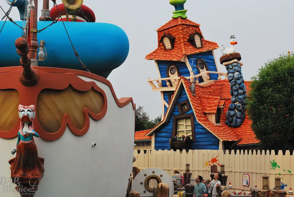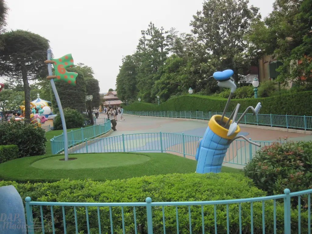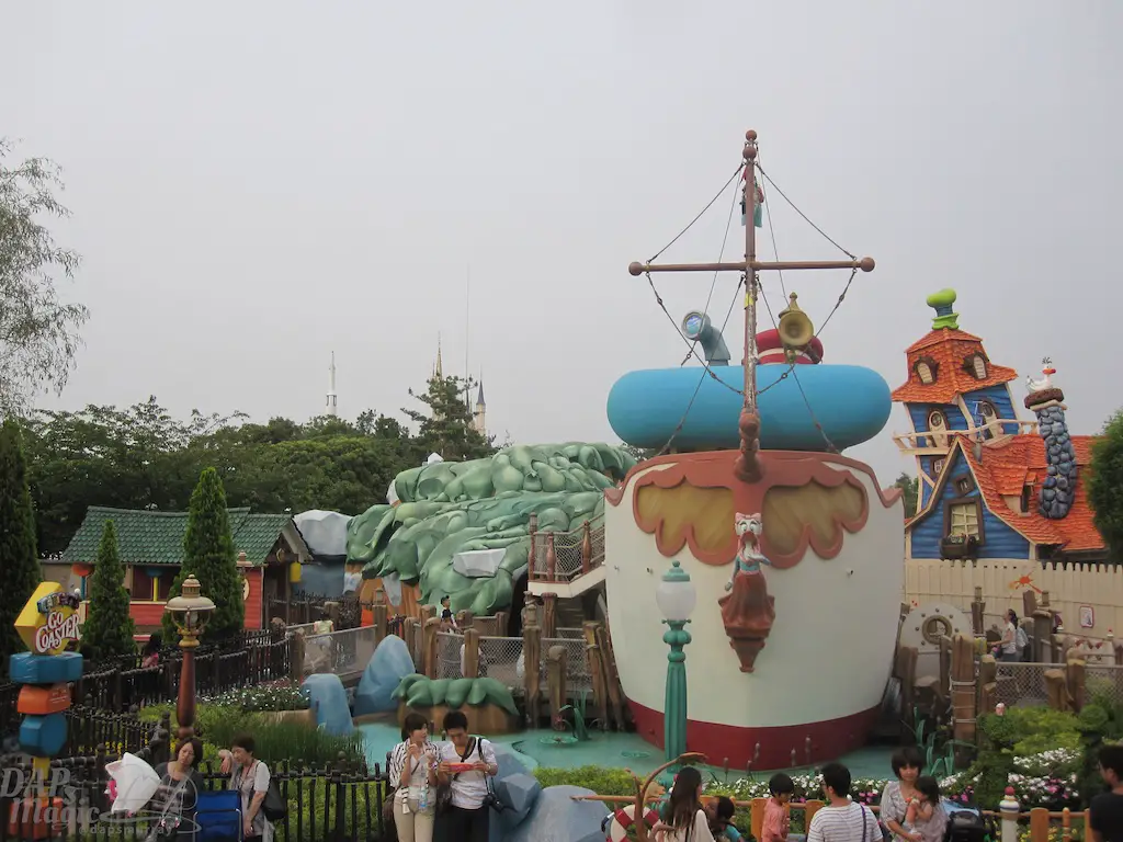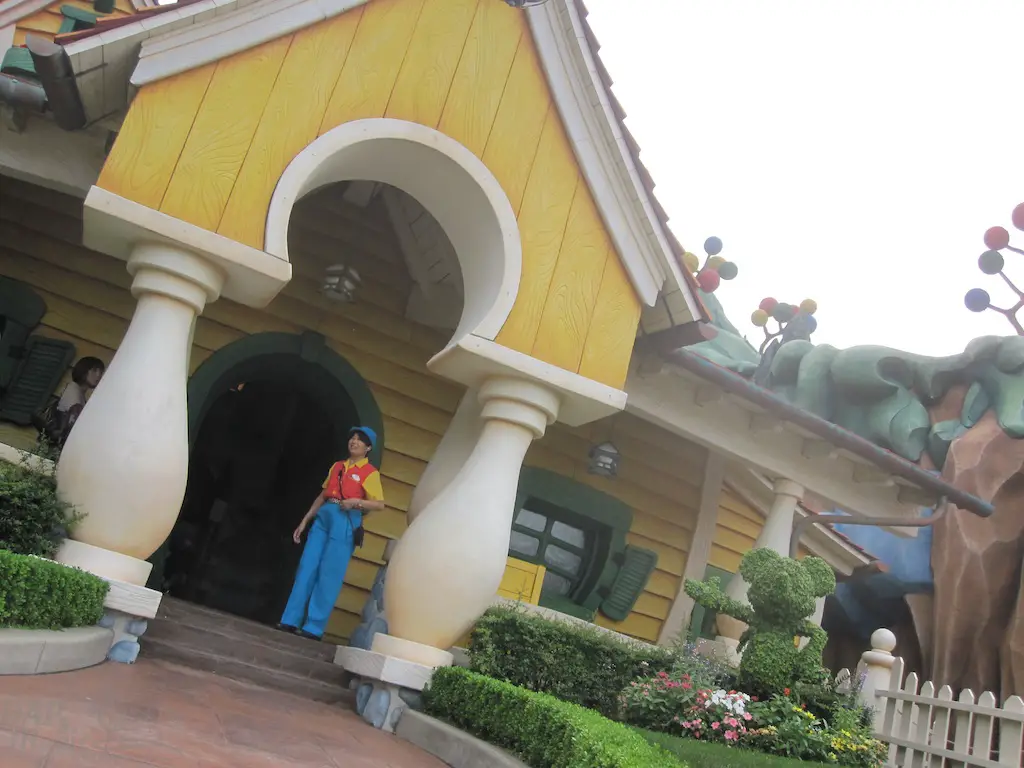 An exact replica of the cartoon land found in Disneyland is at the Tokyo version. One of the main differences are much more reference to Roger Rabbit. On the back of the Small World show building are posters of Roger Rabbit cartoons, and a small area that has a little more city landscape that fits the often missed character. An attraction that is unique to the area is Goofy’s Paint n’ Play House, which was under construction when I visited.