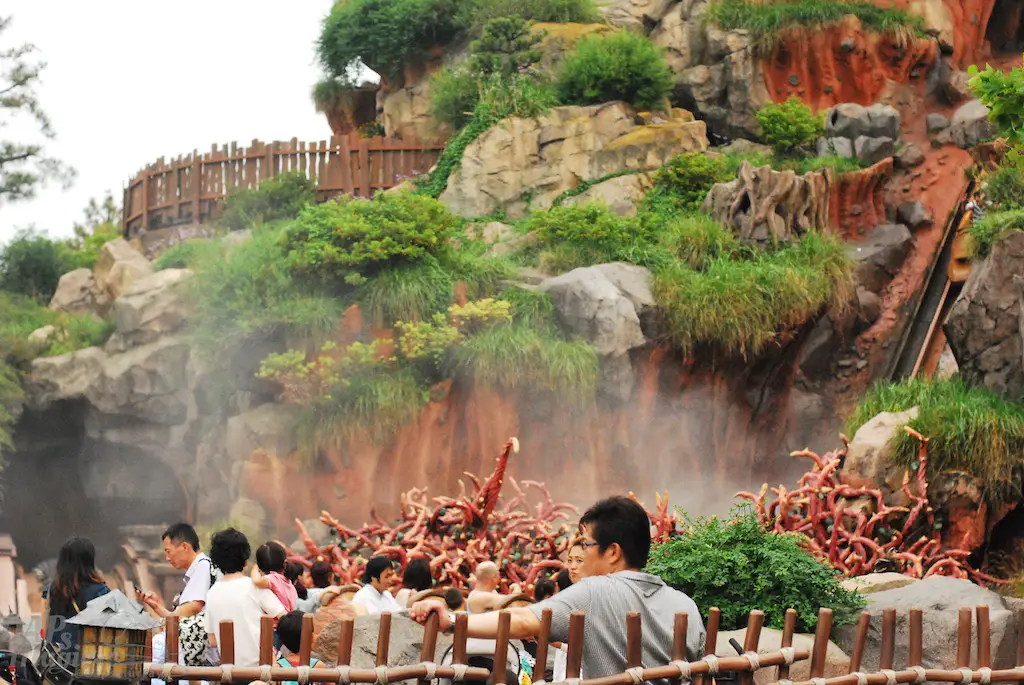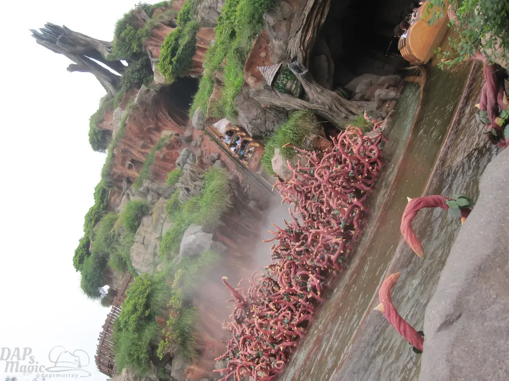 Past Westernland is Critter Country. This is home to Splash Mountain and Canoes. The layout for Splash Mountain seemed the same, though meandering around and over it provided a unique trail. One of the eateries had a view of the attraction. One walkway let people walk over a not so wet part of the ride. It was one of the most fun layouts of a land I’ve been to.