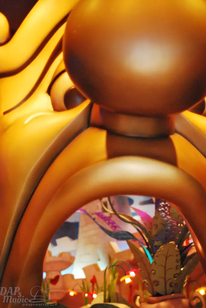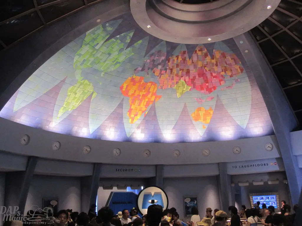The one building that is different from all the others contains Monster’s Inc Ride and Go Seek. A replica of the Monster’s Inc. company building has this very great and unique attraction. Guests take flashlights through the world of Monster’s Inc. as Boo has come back to have some fun with Mike and Sully. This attraction is interactive, but not entirely a game. Think setting off things in a shooting gallery instead of trying to score points. The light beams from everyone’s flashlight will interact with an icon on different parts, and will set an animation off. It made the re-ridability factor go up quite a bit as a result of this interaction.