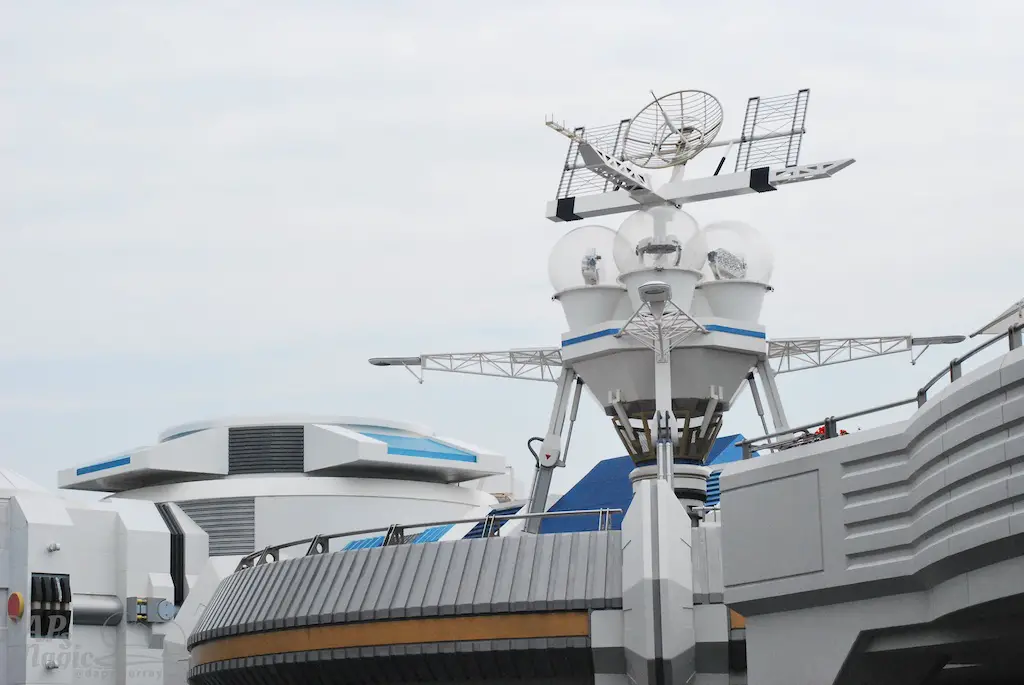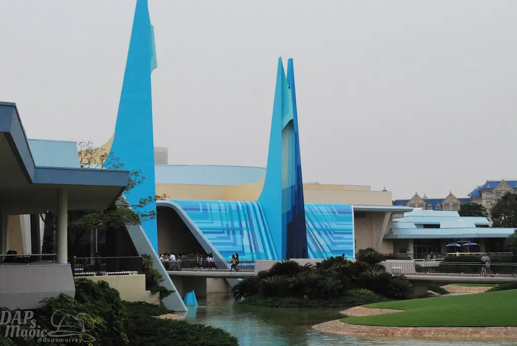 Rounding out the whole park and the end if going clockwise around is the land of the future. At first glance the land looks to be identical to Magic Kingdom’s, but there are some varied pathways. A 70’s blue paint job greets guests at the entrance off the hub. The rest of the land looks like a futuristic space port with walkways overhead and stale grey buildings housing the most exciting attractions.