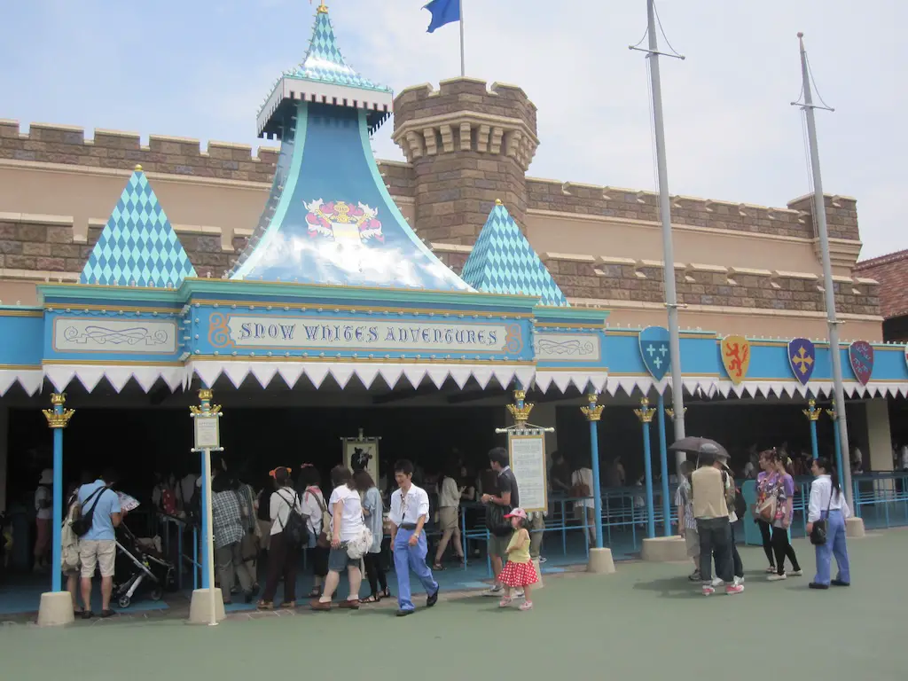 Another attraction that seems to keep to an older version is Snow White’s Adventures. I had heard that the original and Disney World version was a very scary ride where the witch was ever present and even the diamond mine was not to be taken lightly. I wish I had recorded riding the Tokyo version as this had all these elements. The witch seemed to be at every turn cackling and being nightmarish. The diamond mine had explosion noises and carts careening towards your vehicle. It was scary indeed.