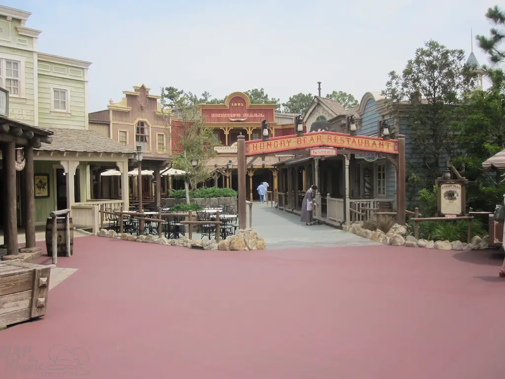 Heading off the hub past Adventureland, or going through that first land, one finds oneself in Westernland. This is definitely a Magic Kingdom Frontierland look and feel to it. The parade route is through here like the Florida version, and many of the buildings look like that version too.