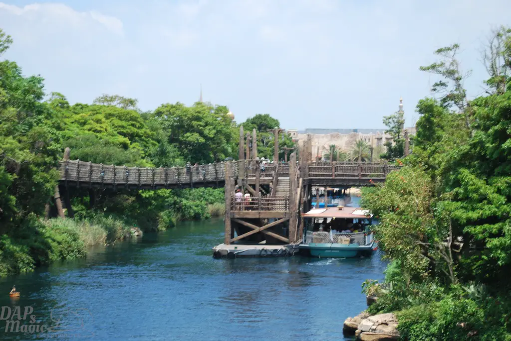 Lost River Delta’s atmosphere really transports guests into a tropical environment. It feels like a true jungle land that is maybe more so than any Adventureland I’ve been to. It has such a stark contrast to the other harbors because of scarcity of buildings. It really feels like we’ve stumbled upon an excavation happening in a remote continent.