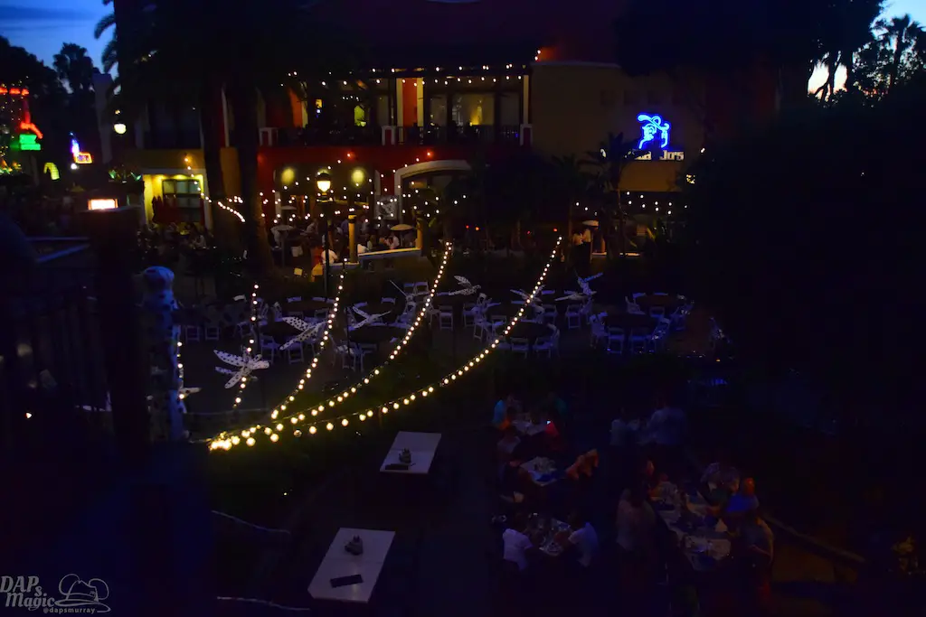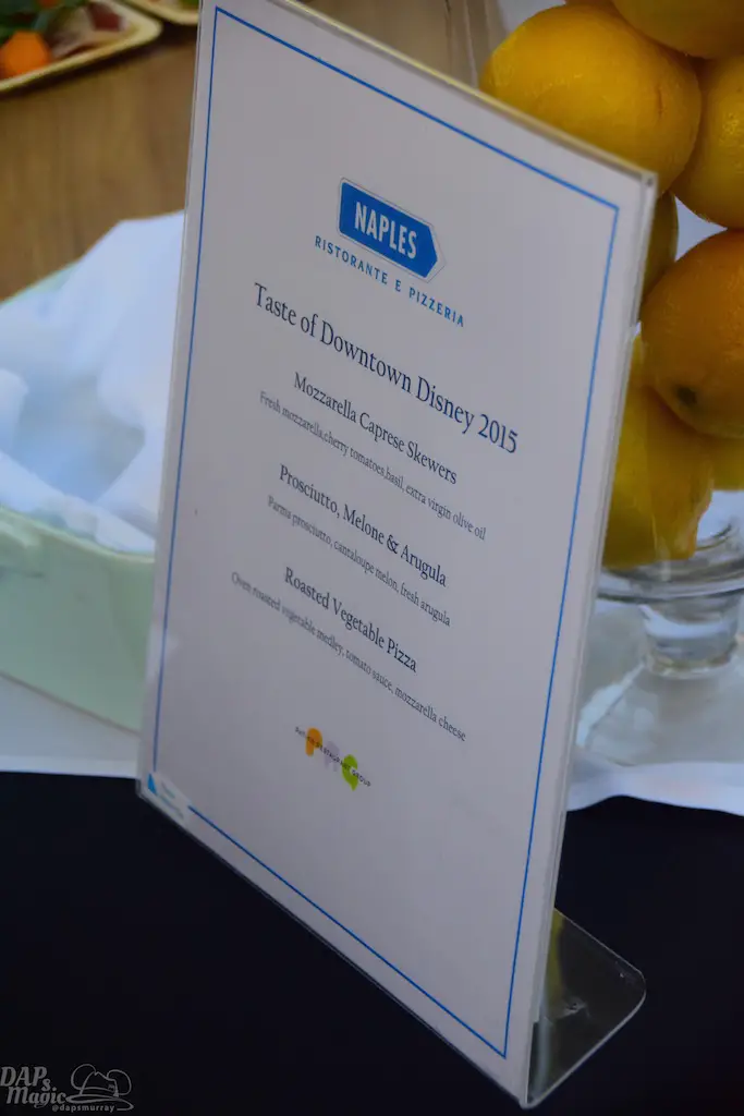Next was House of Blues, which was bittersweet to me as it’s leaving Downtown Disney somewhat soon. This had my favorite bites of the event: a meatball slider and island turkey burger slider with house chips. Also on hand were Anchor Blue pale ale and lager. The turkey slider was spicy, but definitely my favorite food out of the event. We were at the bar on the second floor overlooking Downtown Disney. It was a beautiful sight to see as the sun began going down and there was plenty to look out upon and enjoy.