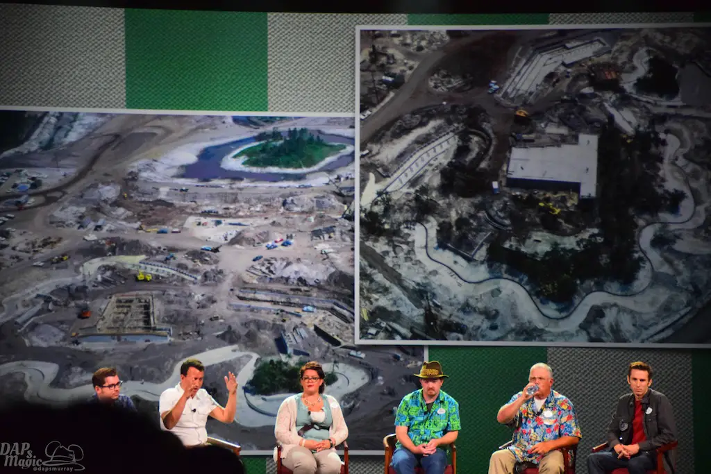 Lively and Williams talked at great length about the history of the original, and also showcased some vintage photos and film. It was fun to see the costumes skippers used to wear and the full color photos of the construction. Harper Goff used a stick and ran it along what he thought could be the course for the cruise to make it. Machinery followed along and dug out dirt, and that was the Jungle Cruise! A car was taken through the track before any water could even be put in, and this was in order to see how the ride would be before it was too late to make changes.