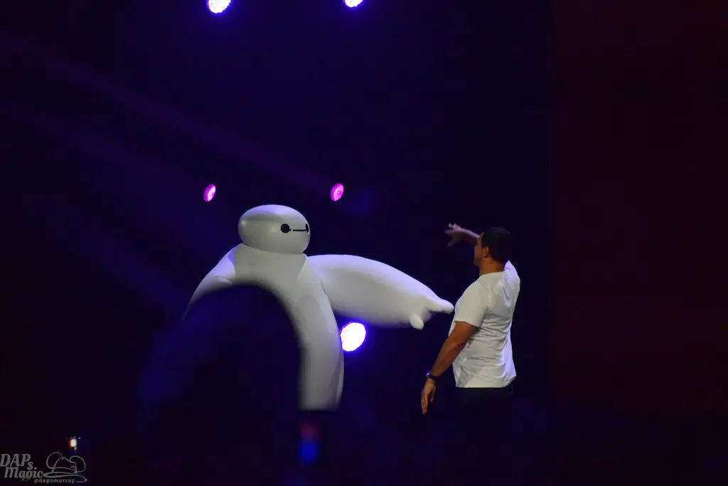 It didn’t disappoint as they talked about how Tangled was already revealed to be a world that Sora and company will visit. They went on to talk about how the Disney parks are paid tribute through spells used in the game. The big surprise reveal was that Big Hero 6 will be a world to visit in the new game. This world will have a story taking place after the hit movie, where the first version of Baymax has been lost in a portal. This version of Baymax will be corrupted by the Heartless, and Big Hero 6 and Sora must defeat the evil Baymax. With this, Baymax himself took to the stage to greet guests and the game makers.