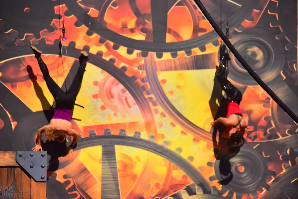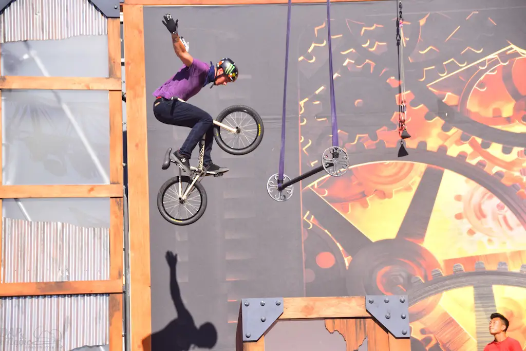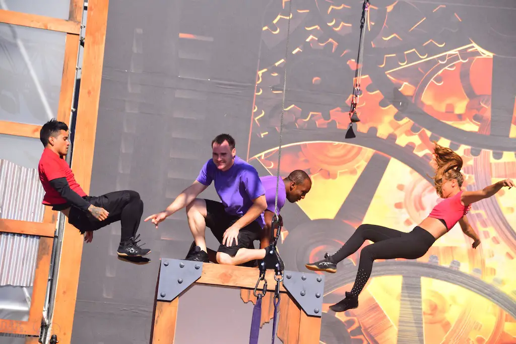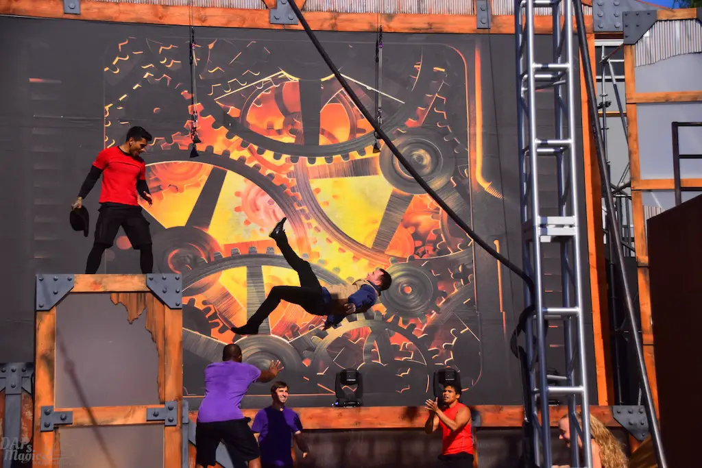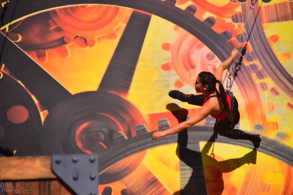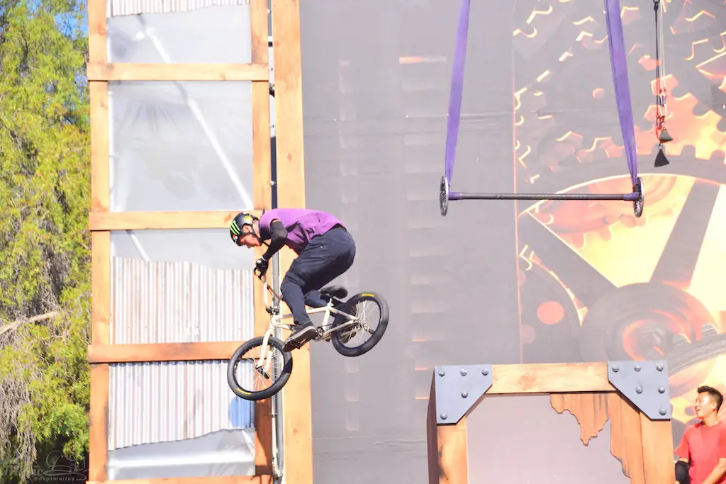 Over in Ghost Town, even more thrills abounded in Vertical Impact. Acrobats and BMX stunt riders entertained in one of the most unique shows I’ve ever seen. Trampolines lined some of the main stage and enabled performers to reach great heights and amazing flips. BMX riders had ramps to perform high in the air jumps and flips. Hoops, trapezes, and ropes enabled the acrobats to show off high in the sky skills that took some breath away. The performance was full of excitement and amazing moves that aren’t done just anywhere else.