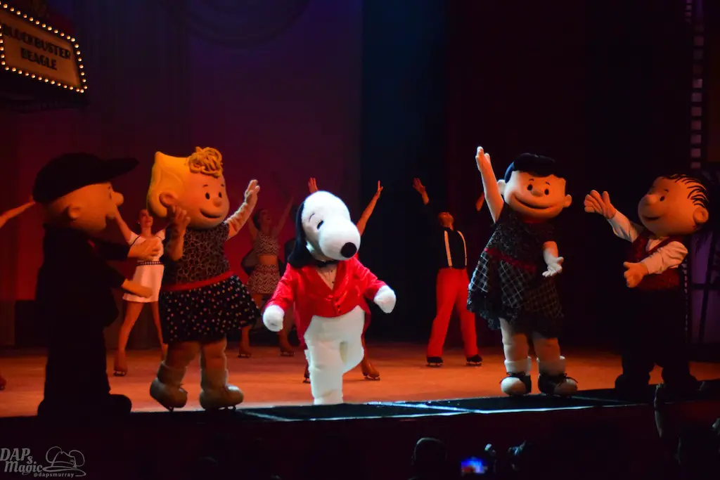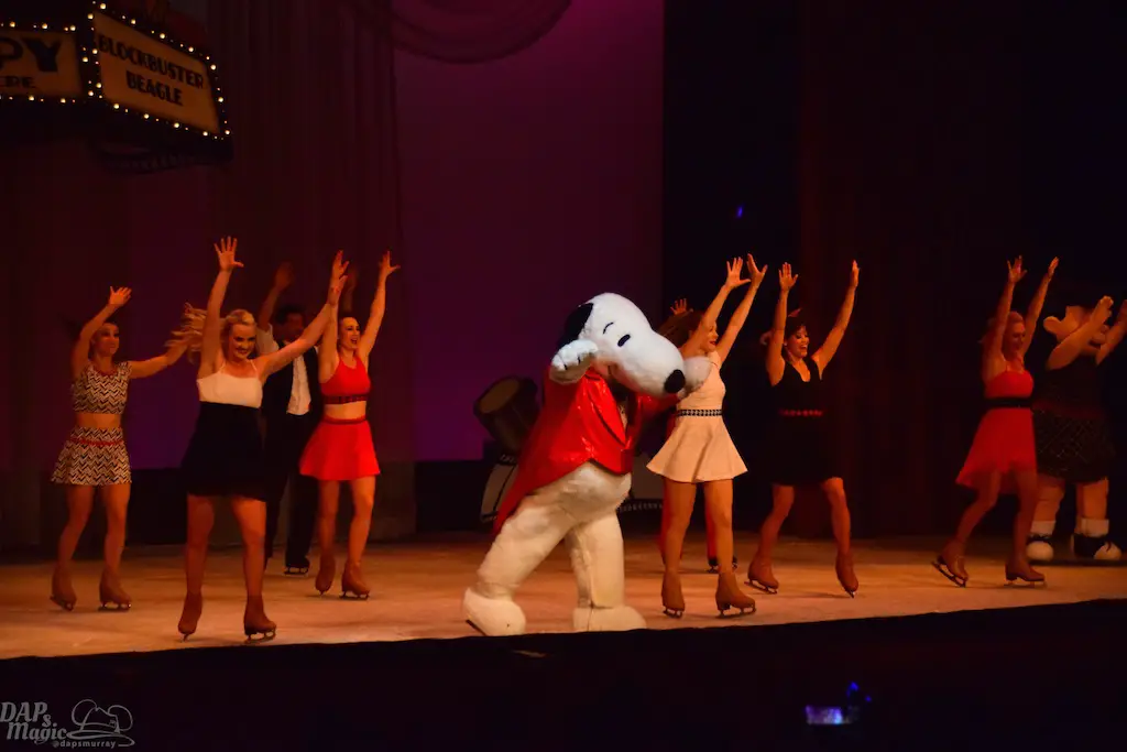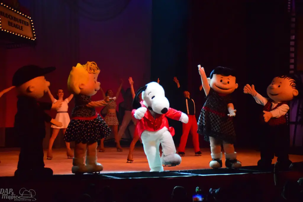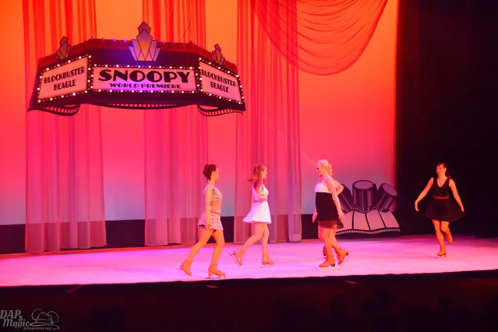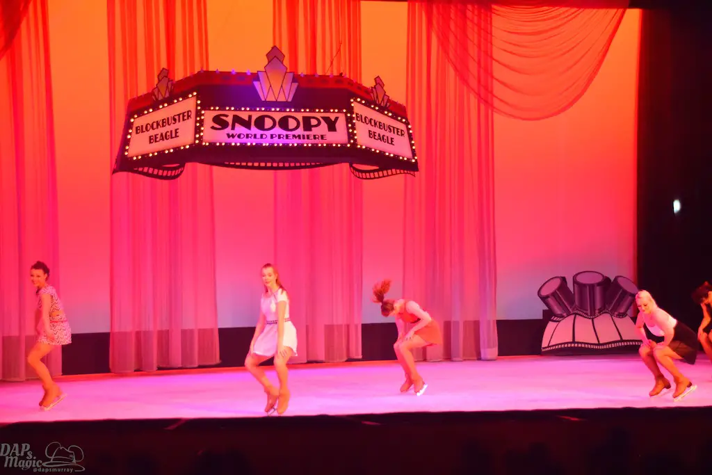 Blockbuster Beagle is a show in tradition of Charles M. Schulz theater’s long line of ice skating shows. This one features the Peanuts gang a bit more grandly as they venture to Hollywood in conjunction with the upcoming Peanuts movie (set to debut this winter season). Charlie Brown, Lucy, Linus, and Sally join Snoopy along with other skaters for a big skating production. The sets were simple, but provided great backdrops and settings for all to glide around. The dances had some amazing feats and thrills! I’ve seen quite a few of the shows in the theater, and this was one of the best! Having the Peanuts characters featured made this a great family show too. But, I heard the audience wow more at the performers’ stunts. Some were breathtaking. It was certainly worth the viewing.