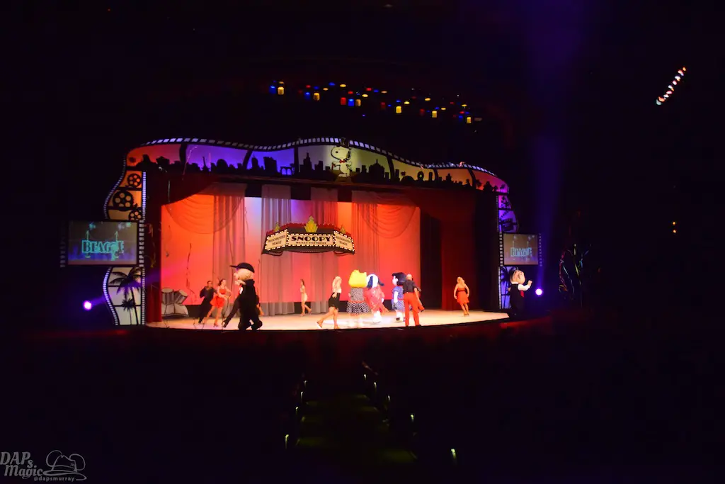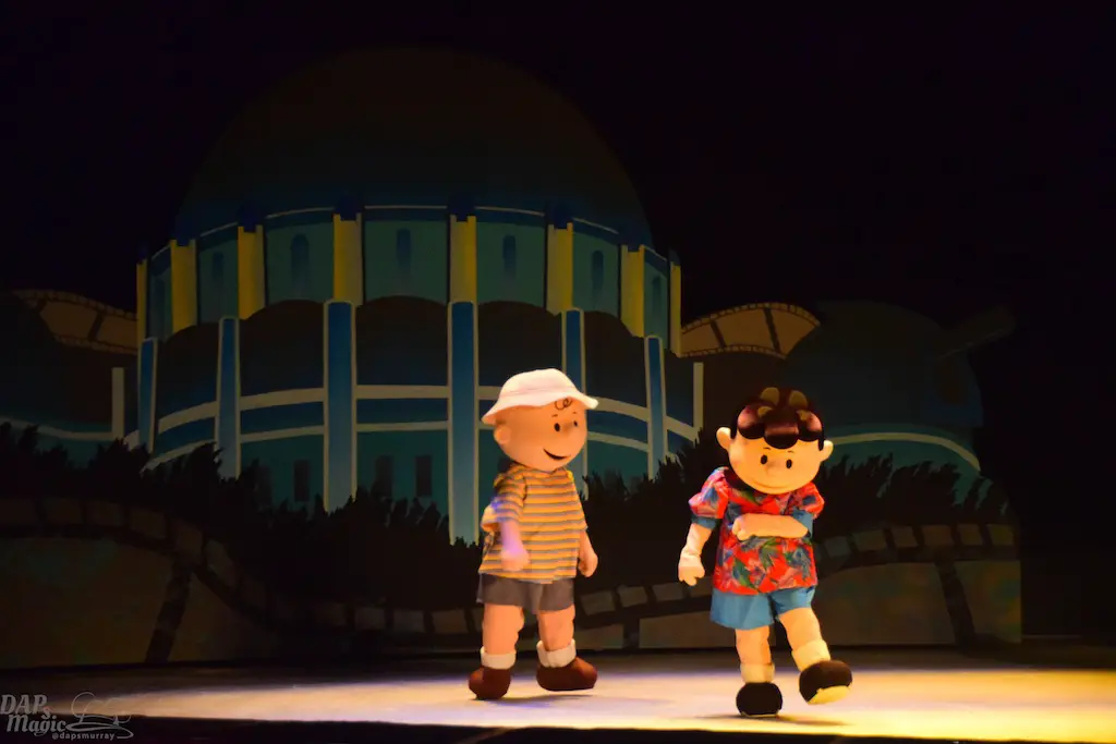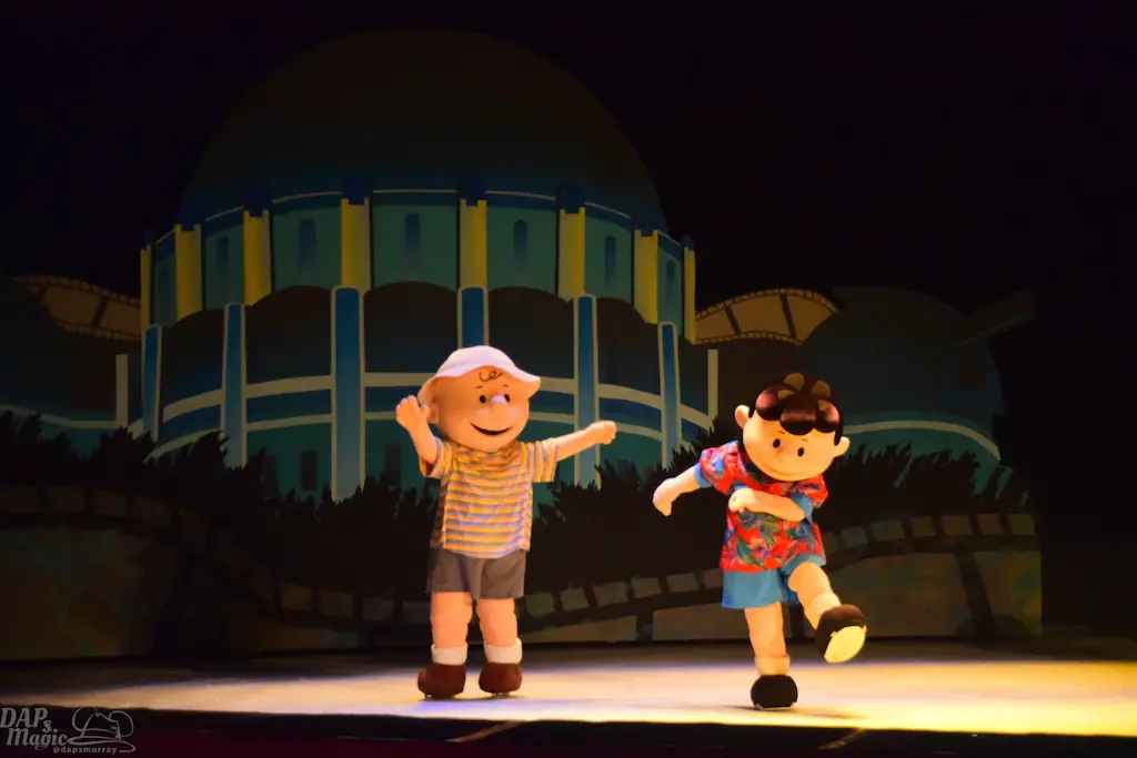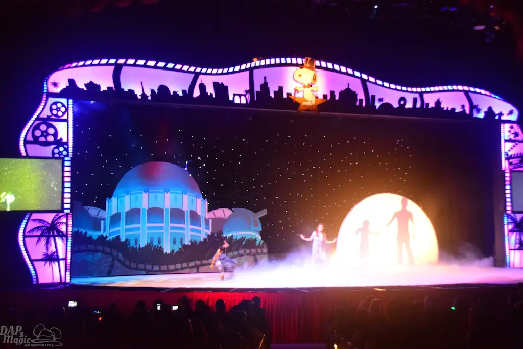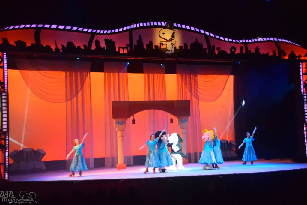Blockbuster Beagle is a show in tradition of Charles M. Schulz theater’s long line of ice skating shows. This one features the Peanuts gang a bit more grandly as they venture to Hollywood in conjunction with the upcoming Peanuts movie (set to debut this winter season). Charlie Brown, Lucy, Linus, and Sally join Snoopy along with other skaters for a big skating production. The sets were simple, but provided great backdrops and settings for all to glide around. The dances had some amazing feats and thrills! I’ve seen quite a few of the shows in the theater, and this was one of the best! Having the Peanuts characters featured made this a great family show too. But, I heard the audience wow more at the performers’ stunts. Some were breathtaking. It was certainly worth the viewing.