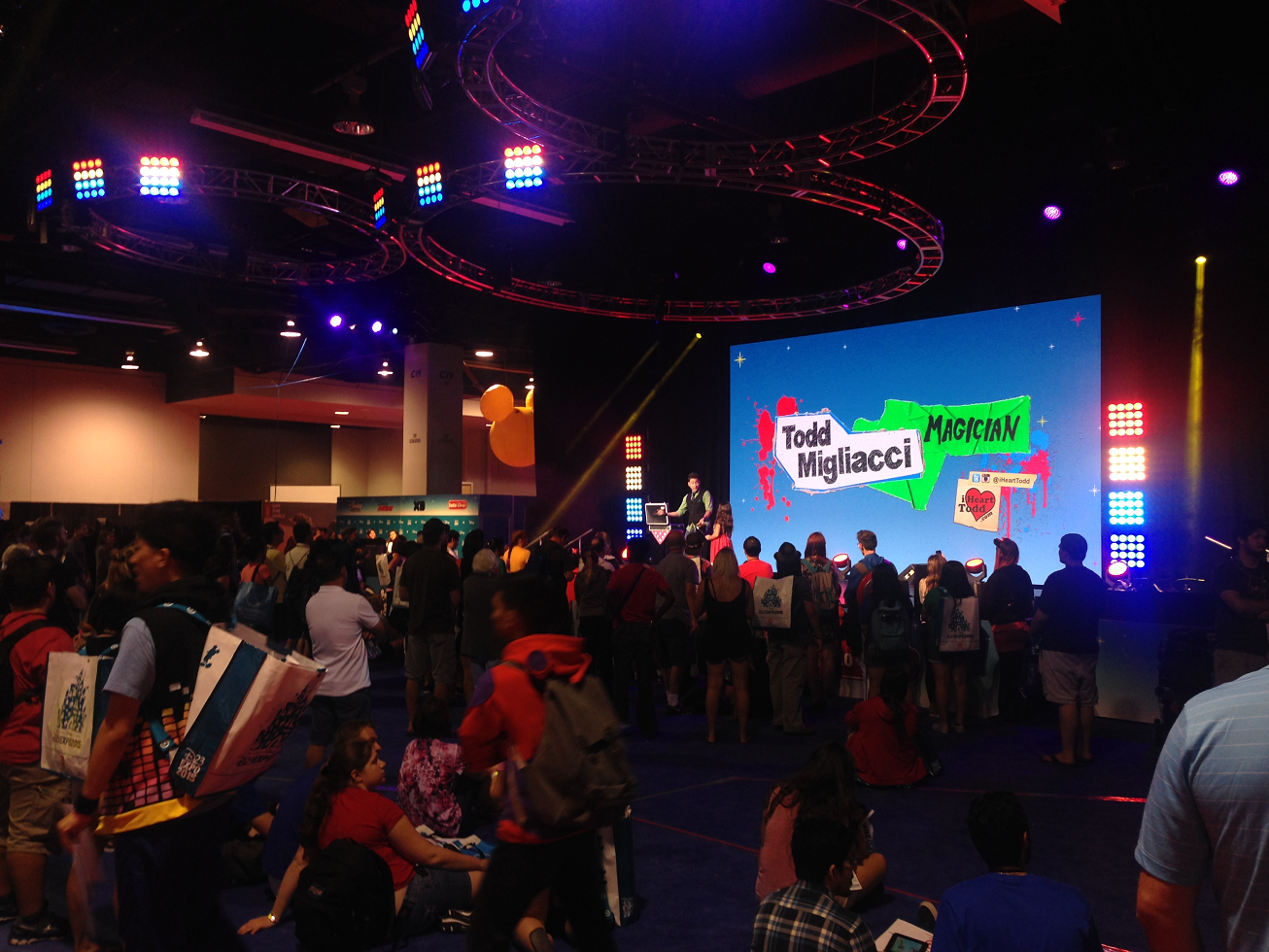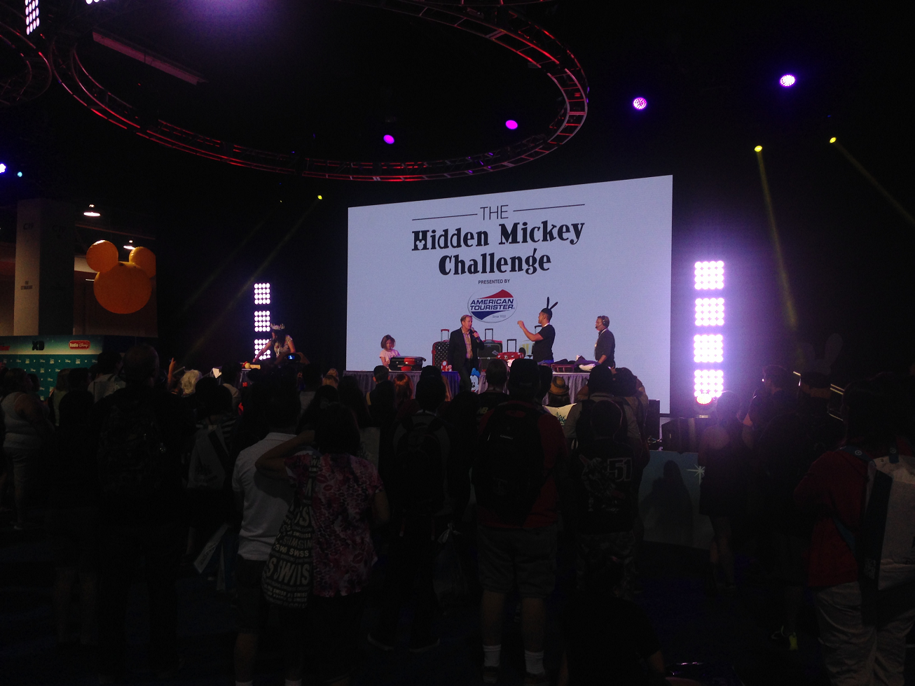 The evening concluded with a few shows at center stage on the main show floor. Here we saw a magic show and a find the hidden Mickey game. While watching the show, I even had the chance to pass out some DAPs Magic buttons to a few readers.