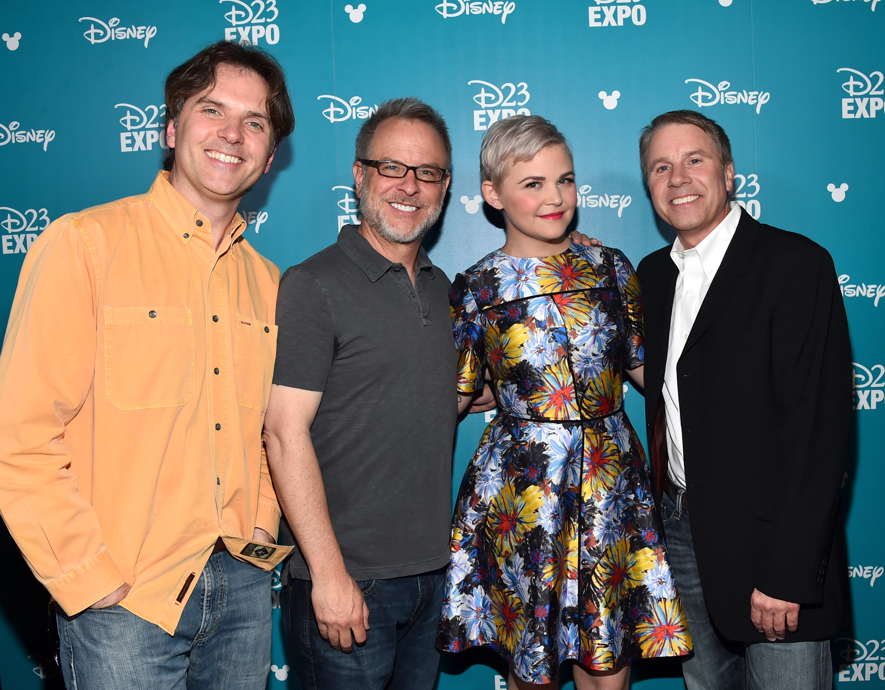 ANAHEIM, CA – AUGUST 14: (L-R) Directors Byron Howard and Rich Moore, actress Ginnifer Goodwin and producer Clark Spencer of ZOOTOPIA took part today in “Pixar and Walt Disney Animation Studios: The Upcoming Films” presentation at Disney’s D23 EXPO 2015 in Anaheim, Calif. (Photo by Alberto E. Rodriguez/Getty Images for Disney) *** Local Caption *** Ginnifer Goodwin; Byron Howard; Rich Howard; Clark Spencer