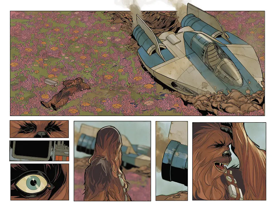 New York, NY—September 15th, 2015 — Known as the skilled co-pilot of the infamous Millennium Falcon, the legendary Wookiee warrior Chewbacca is flying solo for his very own limited series! Today, Marvel is pleased to present your first look at CHEWBACCA #1 – from blockbuster creators Gerry Duggan and Phil Noto! Following the Battle of Yavin, Chewbacca finds himself on his own and separated from the Rebel Alliance. Crash landing on an Imperial occupied planet, Chewie finds himself in the company of a young local girl in need. Together, they may just be enough to take on the forces invading her home and get Chewbacca back to the Rebellion. Don’t call him a fuzz ball. Don’t call him a walking carpet. This is Chewbacca – fierce and loyal warrior of Kashyyyk in a brand new series beginning this October in CHEWBACCA #1!