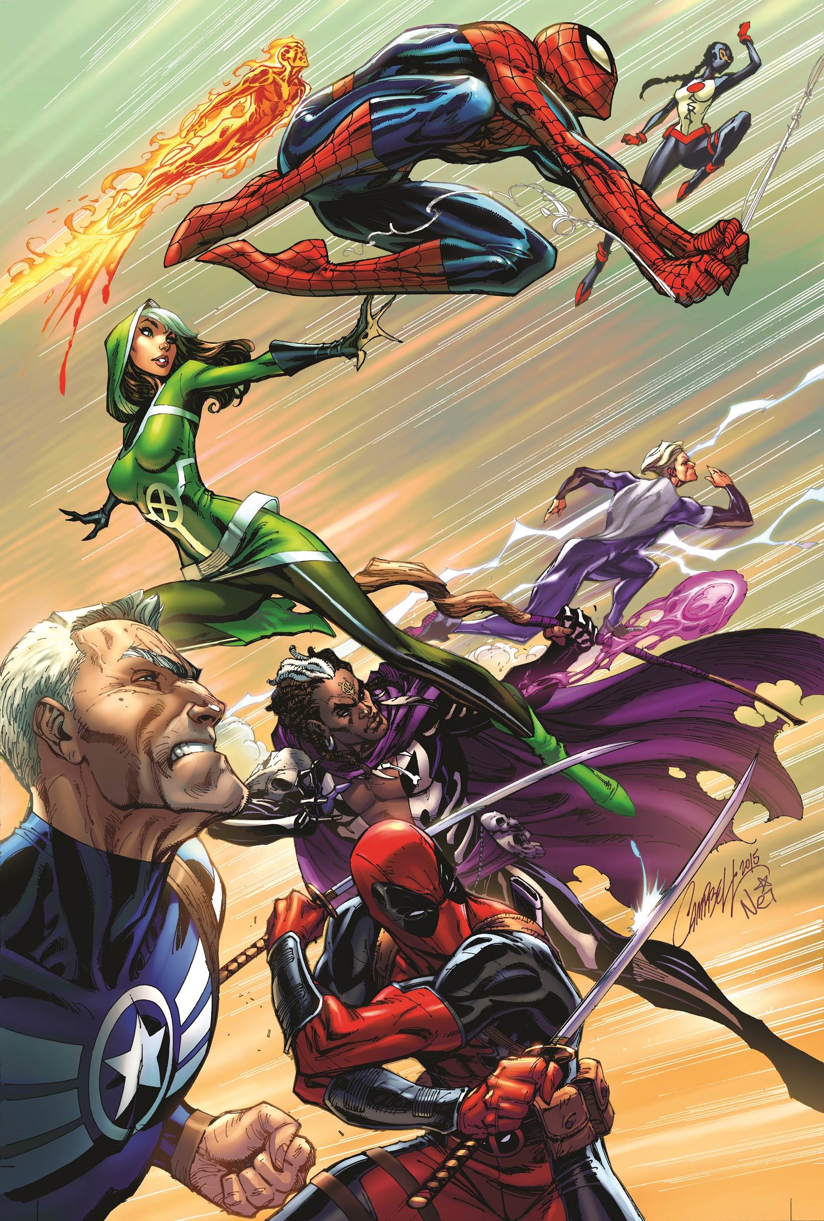 New York, NY—September 17th, 2015 —This October, it’s truly a team of Earth’s Mightiest Heroes unlike any you’ve seen before. Humans! Mutants! Inhumans! Deadpool! Yeah, we’re not kidding! Today, Marvel is pleased to present your first look at UNCANNY AVENGERS #1 – the blockbuster new series from Gerry Duggan and Ryan Stegman! It’s an All-New, All-Different Marvel Universe and Steve Rogers has assembled a new squad for the same purpose – unity. Joining the man once called Captain America are Rogue, Spider-Man, the Human Torch, Doctor Voodoo, Deadpool, Quicksilver and newcomer Synapse. United under one banner, these seven heroes will stand shoulder to shoulder in the public eye – a shining beacon of cooperation between human, inhuman and mutant alike. But with a dangerous new villain on the prowl, the bonds of this untested squad will stretched. Are cracks in the unity squad already beginning to form? Find out this October in the explosive debut of UNCANNY AVENGERS #1!