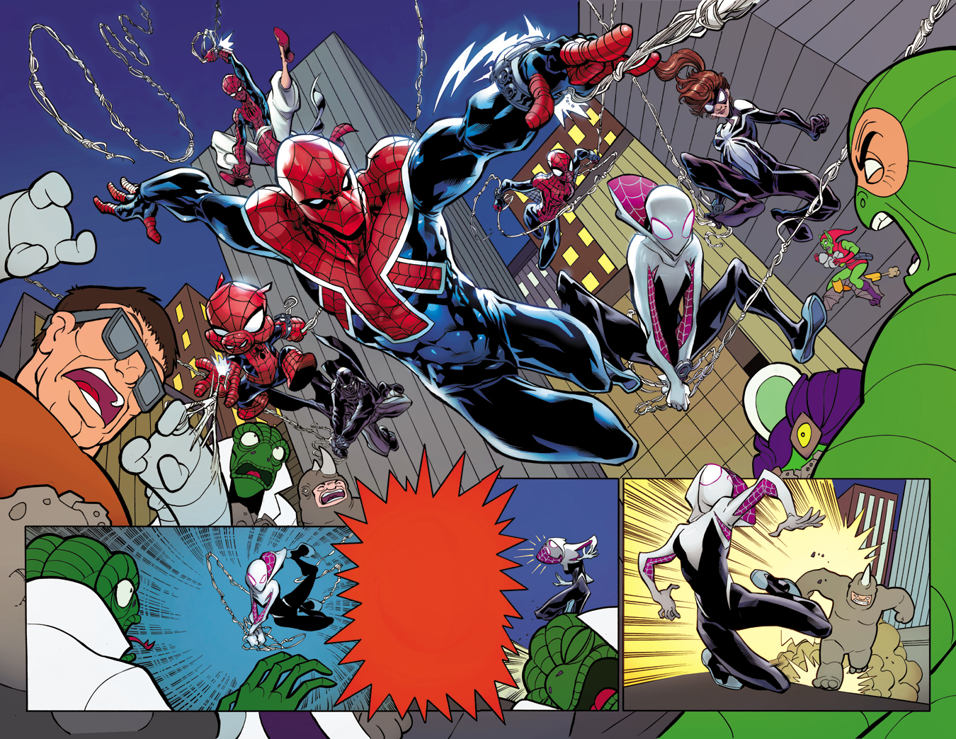New York, NY—October 19th, 2015 —Protecting the Spider-Verse by any means necessary! Today, Marvel is pleased to present your new look at WEB WARRIORS #1 – the new ongoing series from writer Mike Costa (Scarlet Spiders) and artist David Baldeon (Nova)! Following the events of Spider-Verse, multiple realities were left without a Spider-Man of their own. Victims of Morlun and the Inheritors. But those worlds still need protecting, and it’s up to a new team of wallcrawlers and webslingers to swing in and save the day. Spider-Gwen! Spider-Man Noir! Spider-Man India! Spider-UK! Spider-Ham! Together, they are…the Web Warriors! From their home base on Earth-001, if your world needs help, they’ll be there! But when Electro threatens all of reality, this newly formed team will be pushed to their very limits. Is their mission over before it’s even begun? Find out this November as this universe-hopping team of webslingers makes their debut in WEB WARRIORS #1!