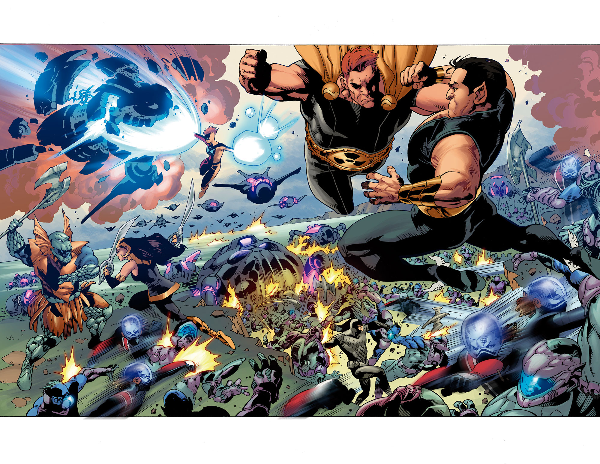 Each the sole survivor of a lost Earth, they’ll do anything to protect this one, whether you like it or not. Hyperion, Nighthawk, Dr. Spectrum, Blur and Power Princess – the Squadron Supreme. To them all that matters is the safety of Earth – and they don’t ask permission or care about your rules. Their first target? Namor! Responsible for the destruction of Dr. Spectrum’s reality, it’s time Namor paid for his crimes. And the Squadron will start by turning Atlantis to rubble!