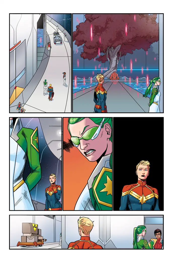 It’s a bold new frontier for Earth’s Mightiest Hero as she soars to new heights on her most daring mission yet – head of the all-new Alpha Flight space program. As Earth’s first line of defense, Carol and Alpha Flight protect the planet from any and all threats the deep void of space can throw at them. With a space station and an entire fleet at her command, if you come here looking for trouble, you won’t know what hit you! But is Carol ready to be a soldier and a diplomat at the same time? Especially when an unknown enemy emerges she can’t quite punch.