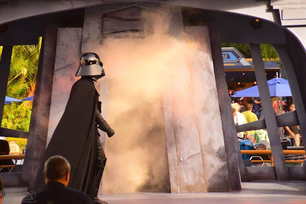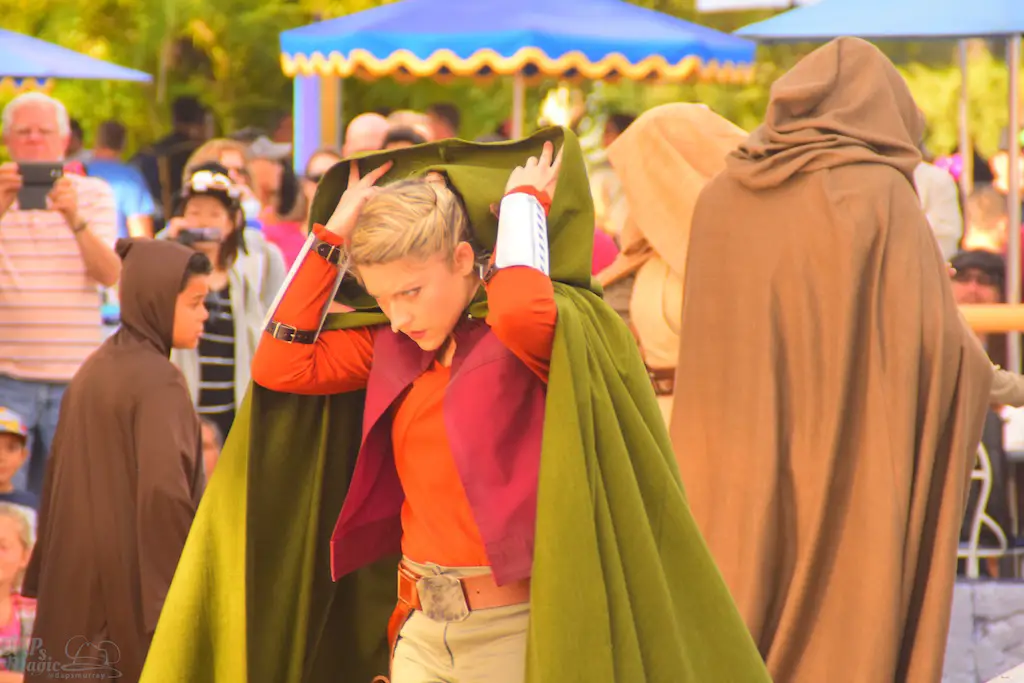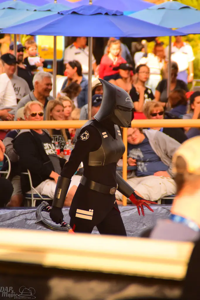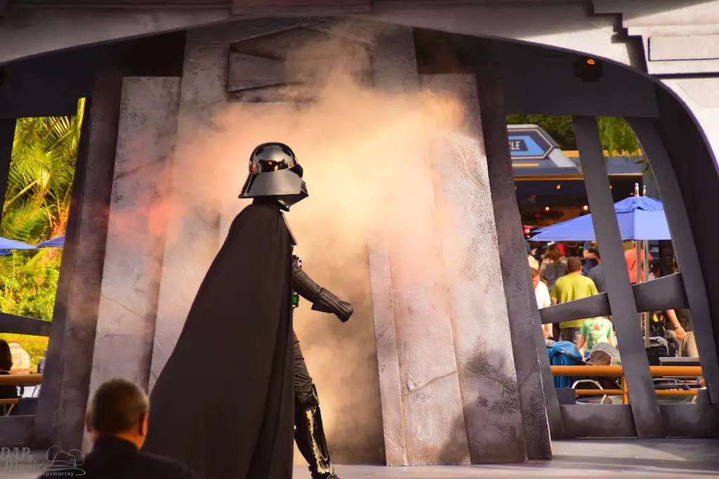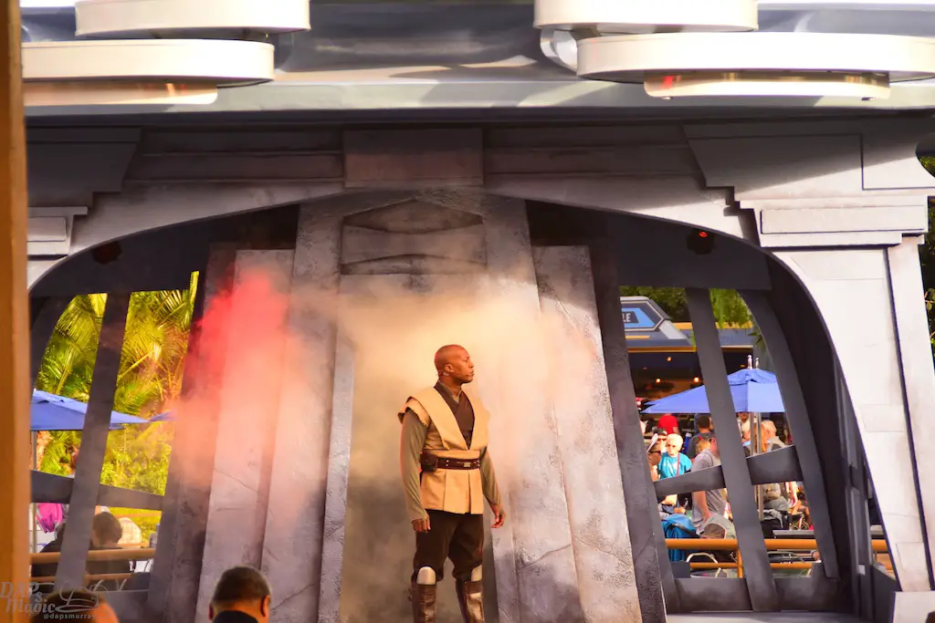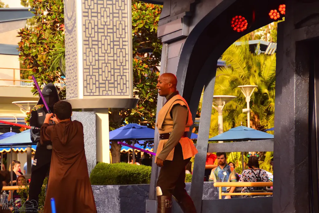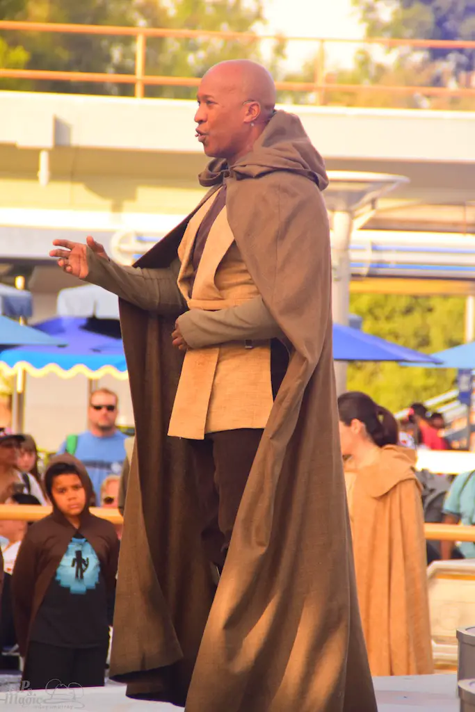 Yesterday, Jedi Training Academy premiered its second incarnation: Jedi Training Trials of the Temple. Taking place between Episode III and IV, the stage show still has younglings take up lightsabers against the Sith. The story is now about two Jedi, one Master and one Apprentice, who are trying to find new Jedi in a time where most are wiped out. All together they raise a Jedi temple where all will be tested. Enter Darth Vader and Seventh Sister, the inquisitor from Star Wars Rebels. But, these two are not the real versions of the Sith. They are manifestations of fears of the group. The younglings take turns fighting them, and ultimately push them back into the temple. But, the Apprentice’s fears become real too. Darth Maul appears and fights the Jedi one on one. The group must help the Jedi before the Dark Side of the force takes over. It’s successful and the group has passed the trial of the temple to become honorary Jedi.