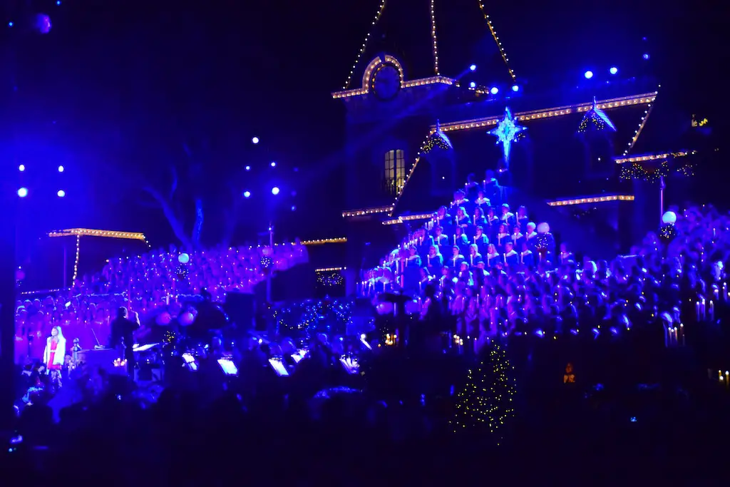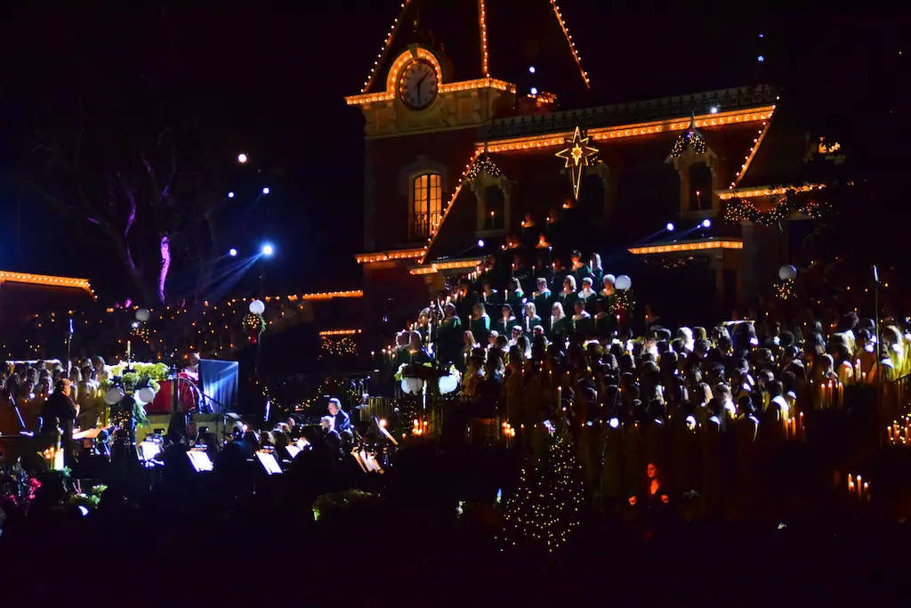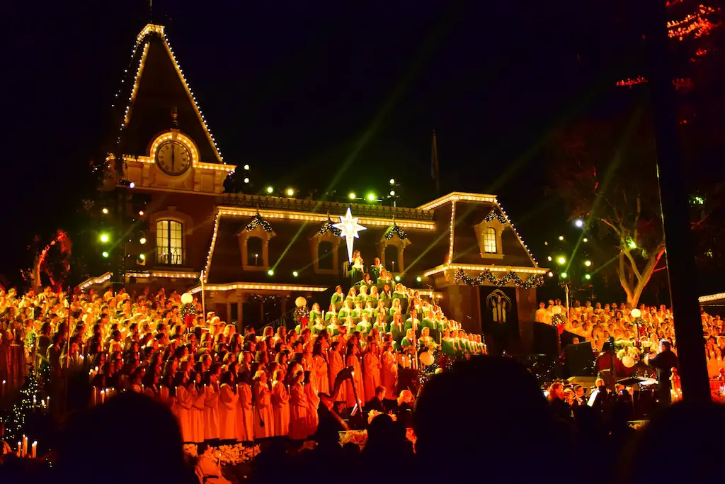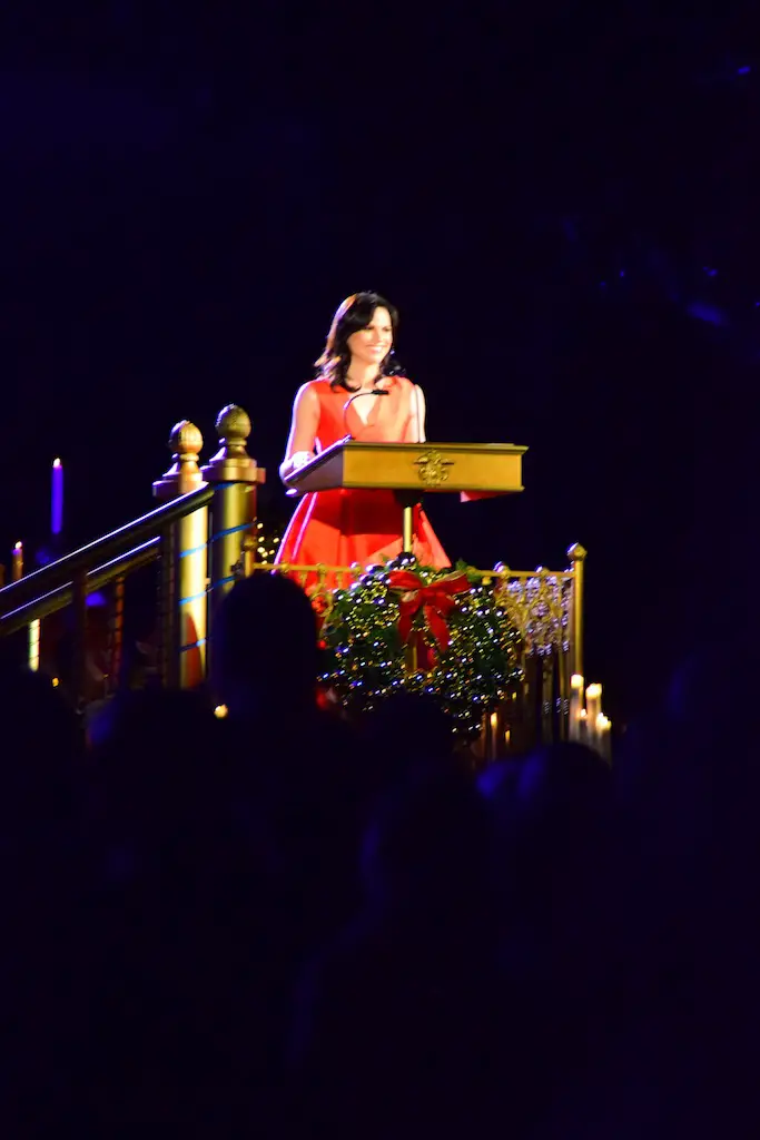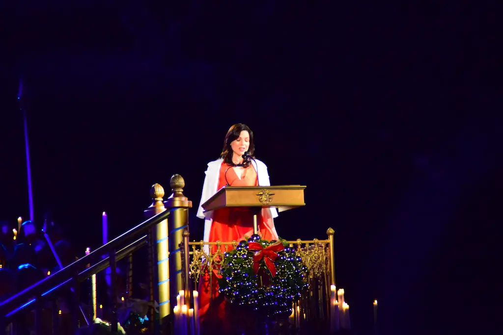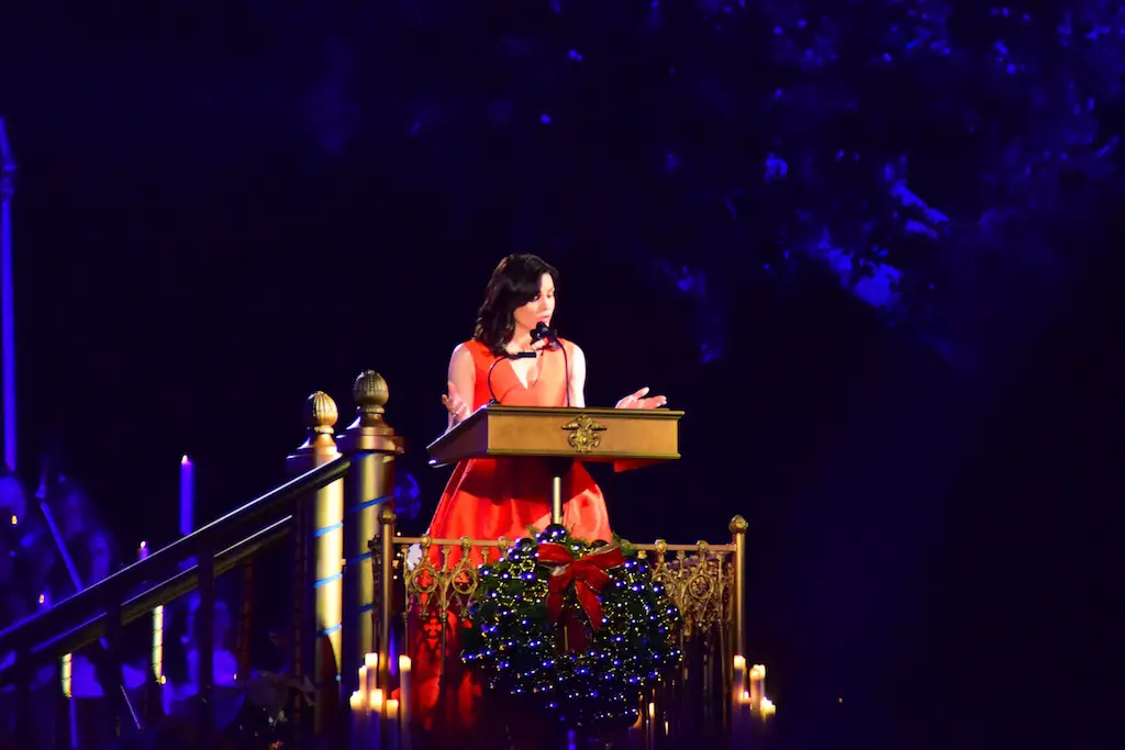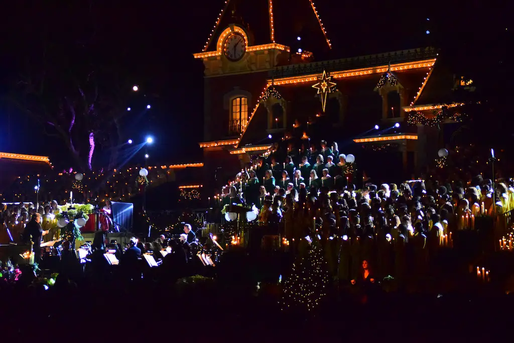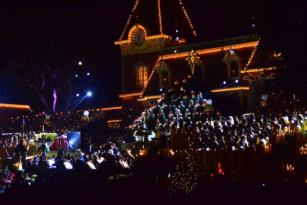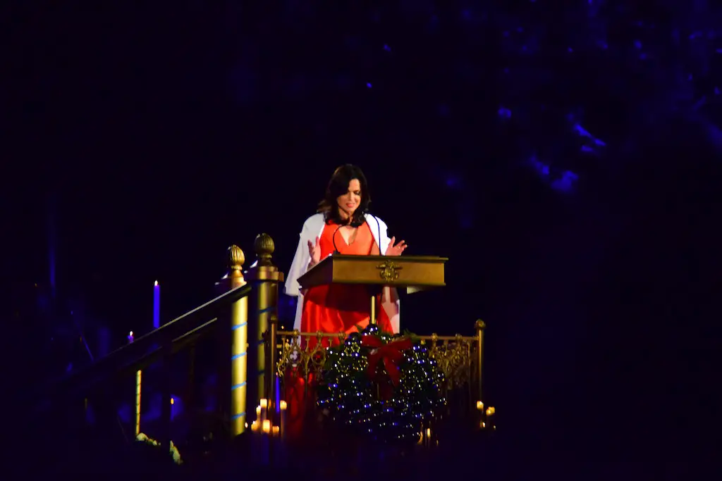 Candlelight Processional at Disneyland has always marked the holiday season. This weekend event has had many celebrity narrators that have read the Christmas story with great reverence. This year was another joyous and momentous occasion. Geena Davis narrated the first night, Saturday, December 5th. Her reaction after Silent Night summed up her delight in being able to take part of this great event. Lana Parrilla of Once Upon A Time fame narrated the second night, Sunday, December 6th (funny note: Once Upon A Time was airing the same time she was narrating). Though she plays an Evil Queen on the show, her presence was just the opposite, filling Main Street with her wonderful voice to retell the story. Both did a remarkable job, and the audience had a great time with the show. Things were just a little different with some musical numbers, like a little difference in soloists. Not that it detracted from a magical time in front of the train station. It is always a refreshing and joyful time at Disneyland, filled with music and a story of peace and love.