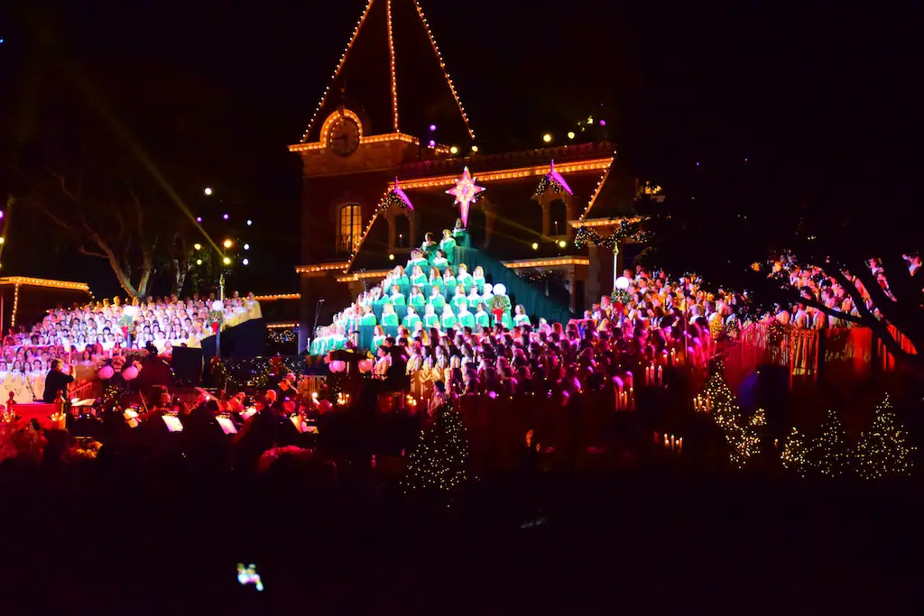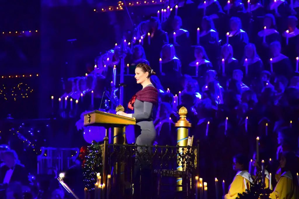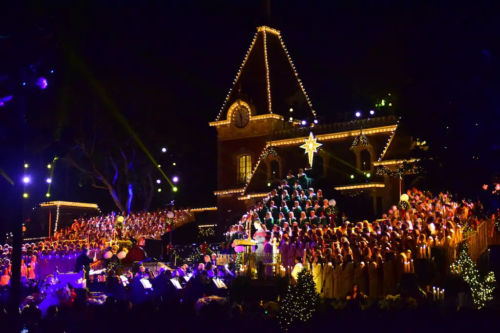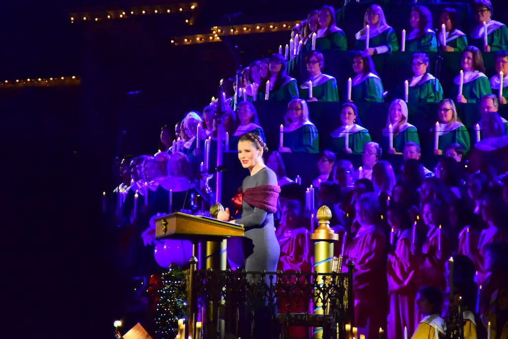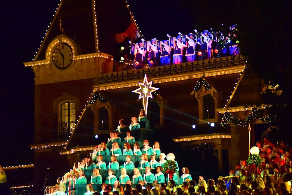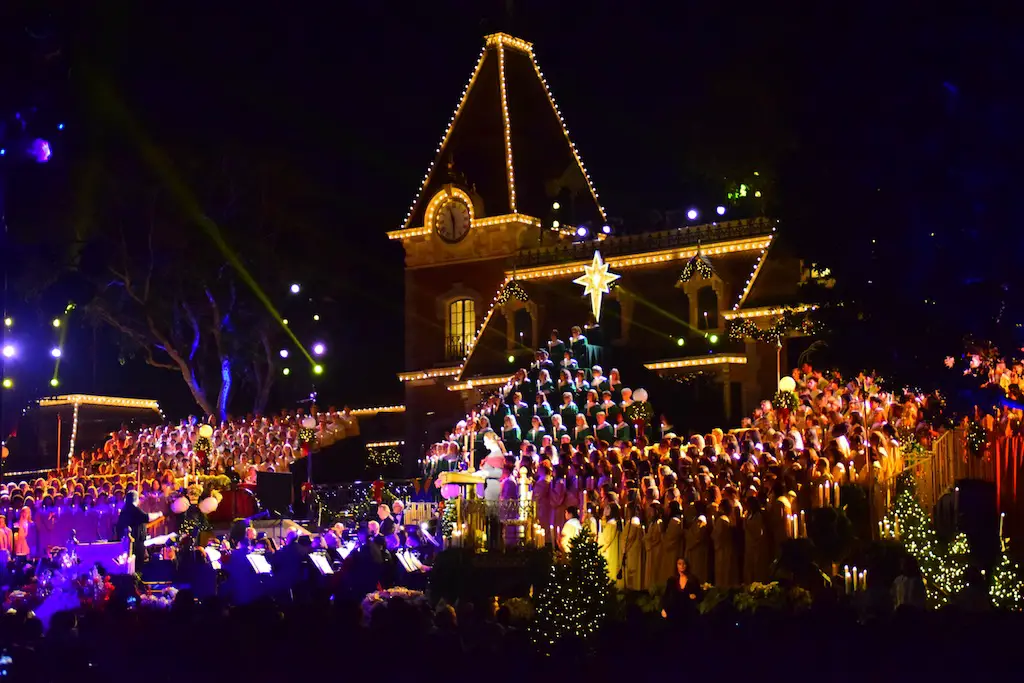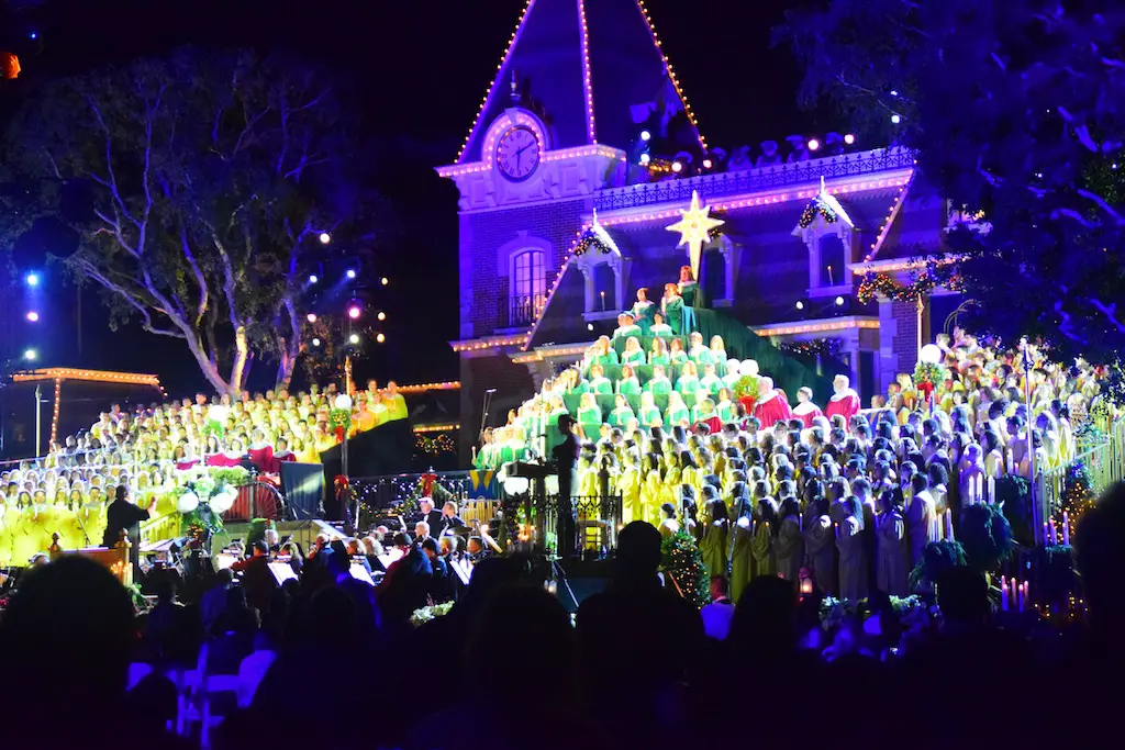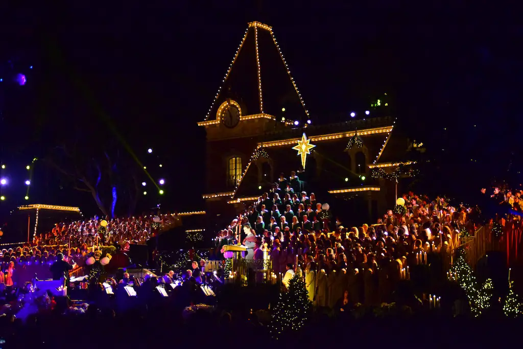 Candlelight Processional at Disneyland has always marked the holiday season. This weekend event has had many celebrity narrators that have read the Christmas story with great reverence. This year was another joyous and momentous occasion. Geena Davis narrated the first night, Saturday, December 5th. Her reaction after Silent Night summed up her delight in being able to take part of this great event. Lana Parrilla of Once Upon A Time fame narrated the second night, Sunday, December 6th (funny note: Once Upon A Time was airing the same time she was narrating). Though she plays an Evil Queen on the show, her presence was just the opposite, filling Main Street with her wonderful voice to retell the story. Both did a remarkable job, and the audience had a great time with the show. Things were just a little different with some musical numbers, like a little difference in soloists. Not that it detracted from a magical time in front of the train station. It is always a refreshing and joyful time at Disneyland, filled with music and a story of peace and love.