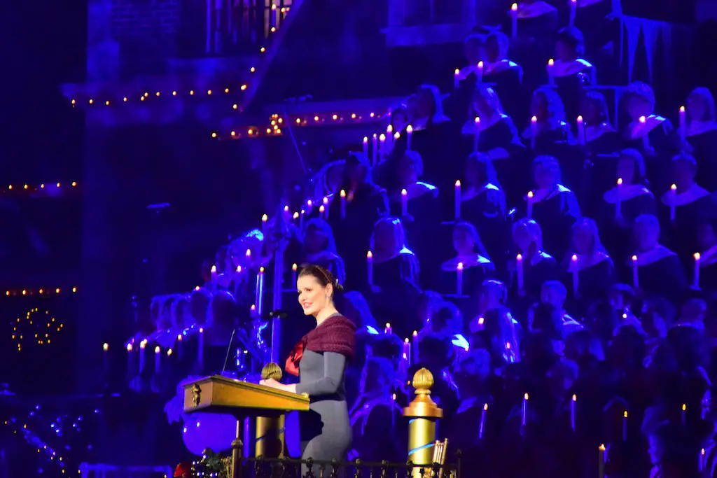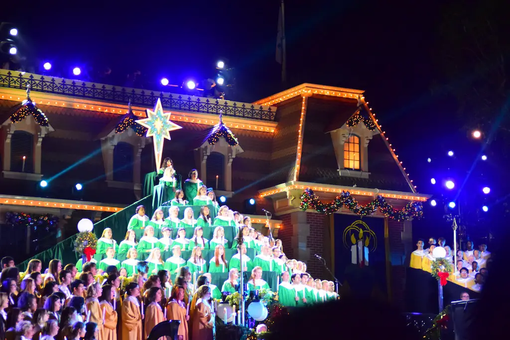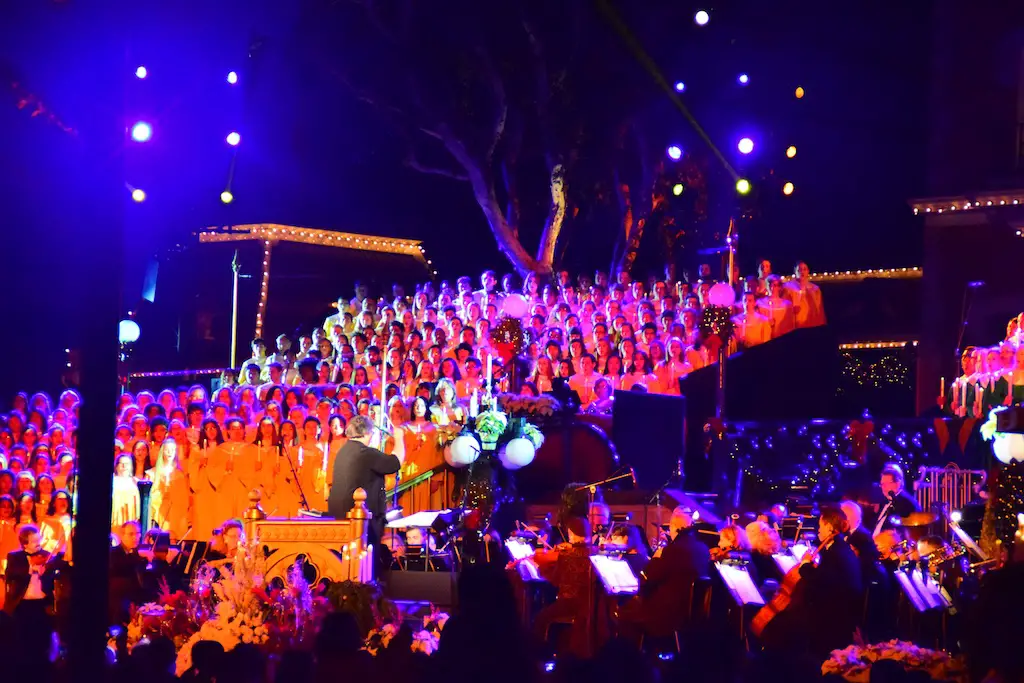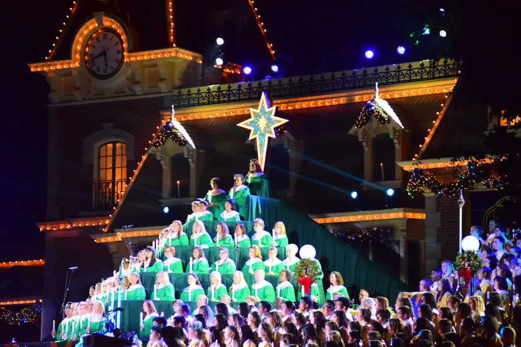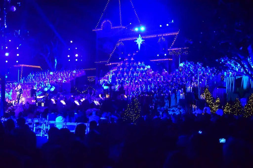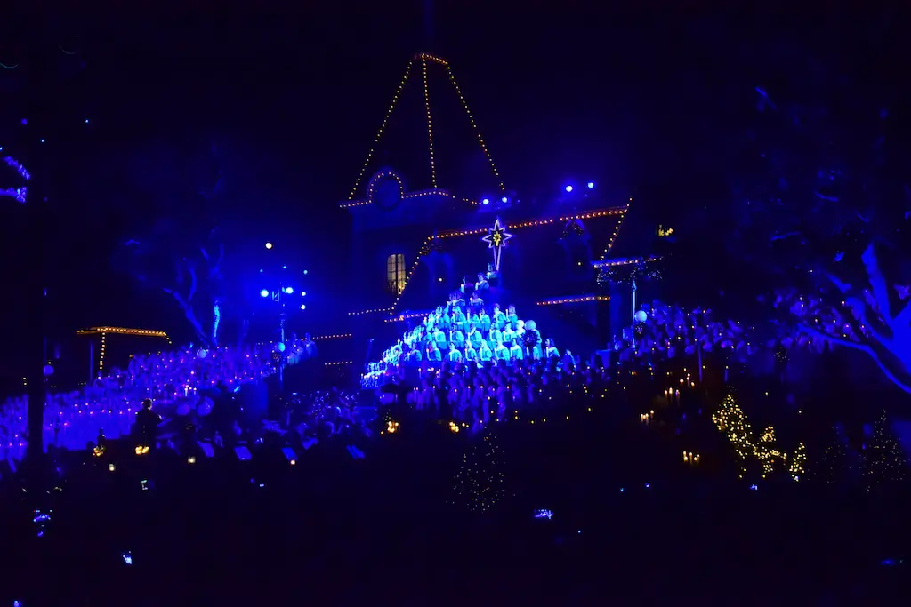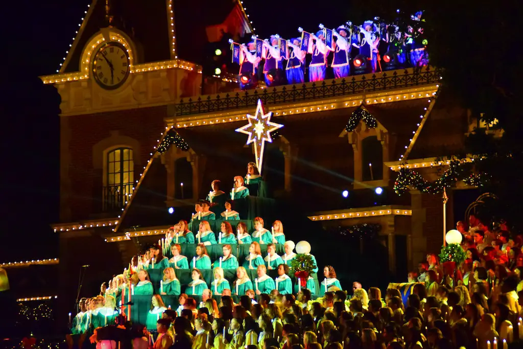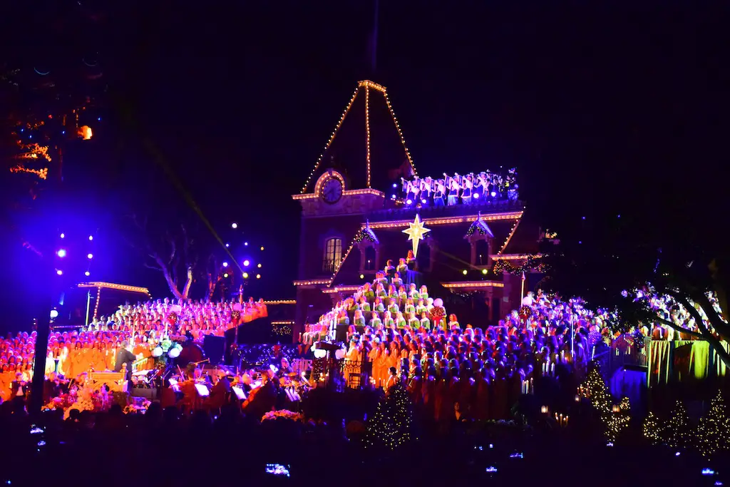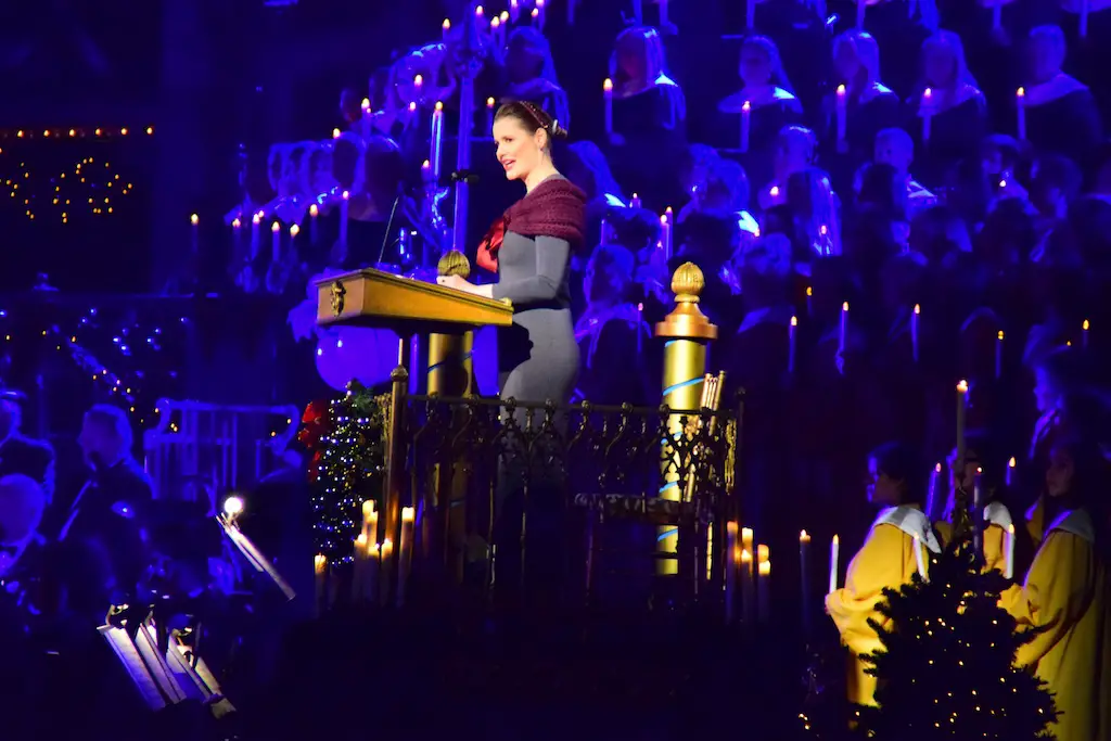 Candlelight Processional at Disneyland has always marked the holiday season. This weekend event has had many celebrity narrators that have read the Christmas story with great reverence. This year was another joyous and momentous occasion. Geena Davis narrated the first night, Saturday, December 5th. Her reaction after Silent Night summed up her delight in being able to take part of this great event. Lana Parrilla of Once Upon A Time fame narrated the second night, Sunday, December 6th (funny note: Once Upon A Time was airing the same time she was narrating). Though she plays an Evil Queen on the show, her presence was just the opposite, filling Main Street with her wonderful voice to retell the story. Both did a remarkable job, and the audience had a great time with the show. Things were just a little different with some musical numbers, like a little difference in soloists. Not that it detracted from a magical time in front of the train station. It is always a refreshing and joyful time at Disneyland, filled with music and a story of peace and love.