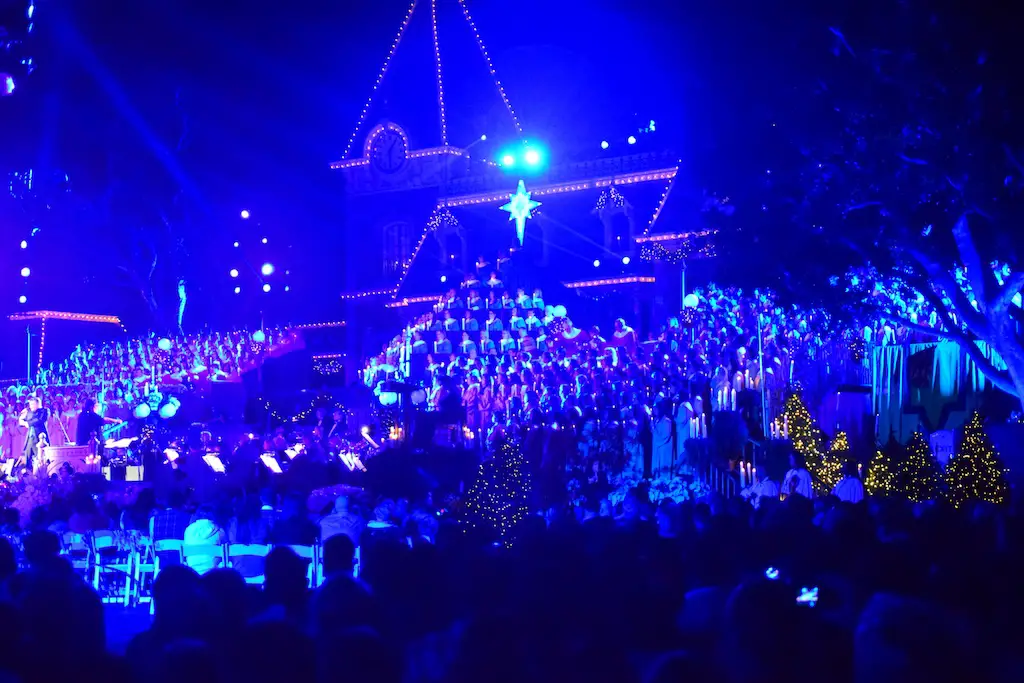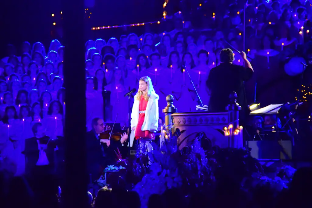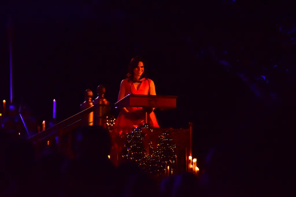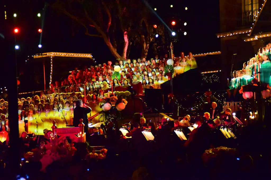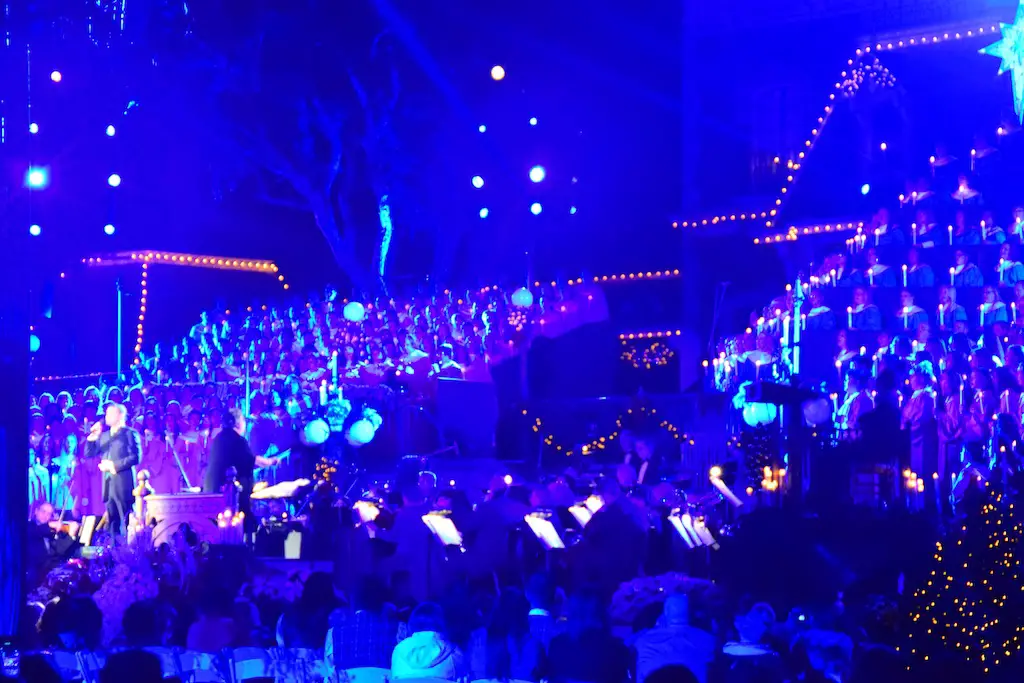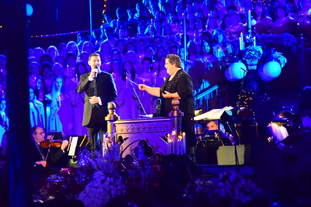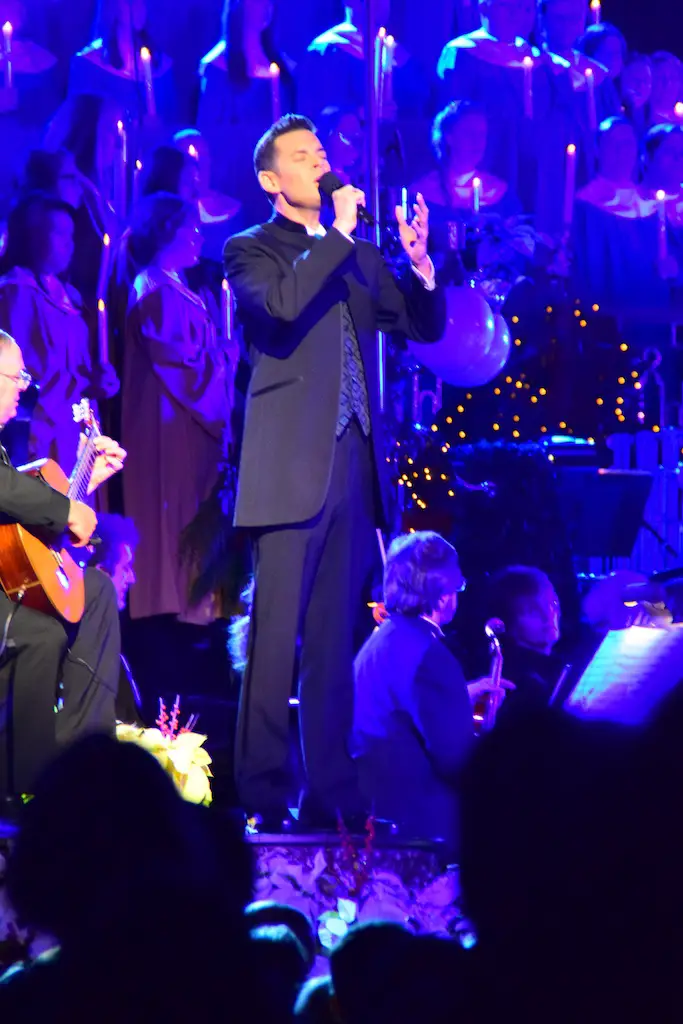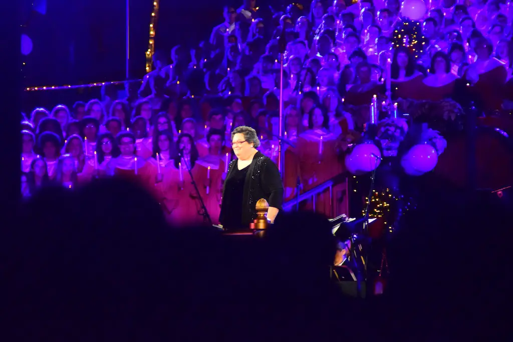 Candlelight Processional at Disneyland has always marked the holiday season. This weekend event has had many celebrity narrators that have read the Christmas story with great reverence. This year was another joyous and momentous occasion. Geena Davis narrated the first night, Saturday, December 5th. Her reaction after Silent Night summed up her delight in being able to take part of this great event. Lana Parrilla of Once Upon A Time fame narrated the second night, Sunday, December 6th (funny note: Once Upon A Time was airing the same time she was narrating). Though she plays an Evil Queen on the show, her presence was just the opposite, filling Main Street with her wonderful voice to retell the story. Both did a remarkable job, and the audience had a great time with the show. Things were just a little different with some musical numbers, like a little difference in soloists. Not that it detracted from a magical time in front of the train station. It is always a refreshing and joyful time at Disneyland, filled with music and a story of peace and love.