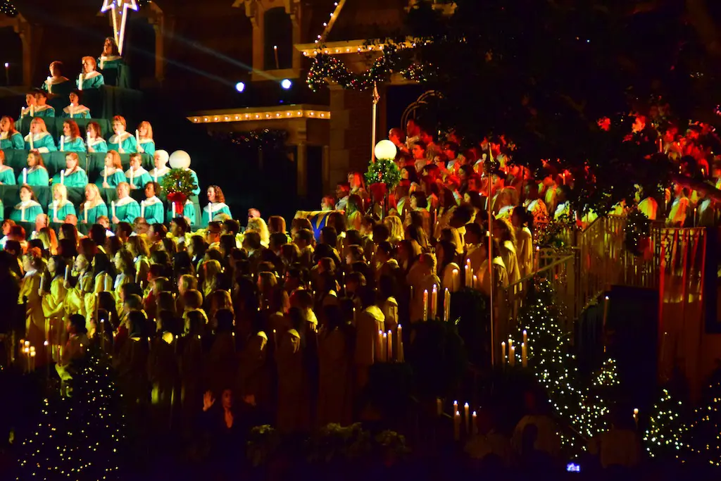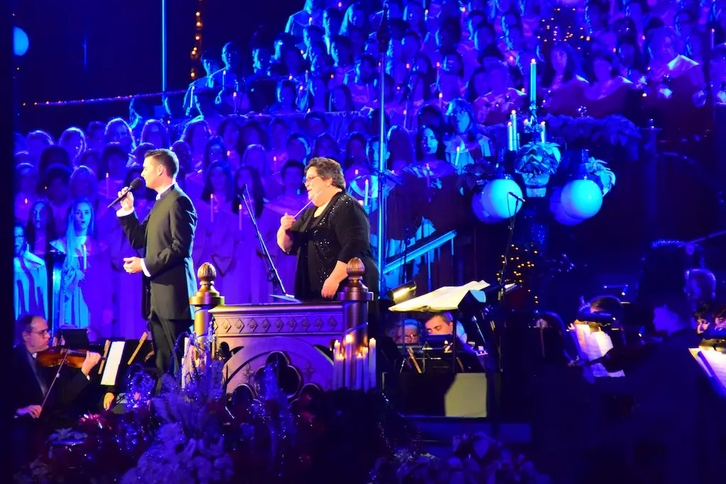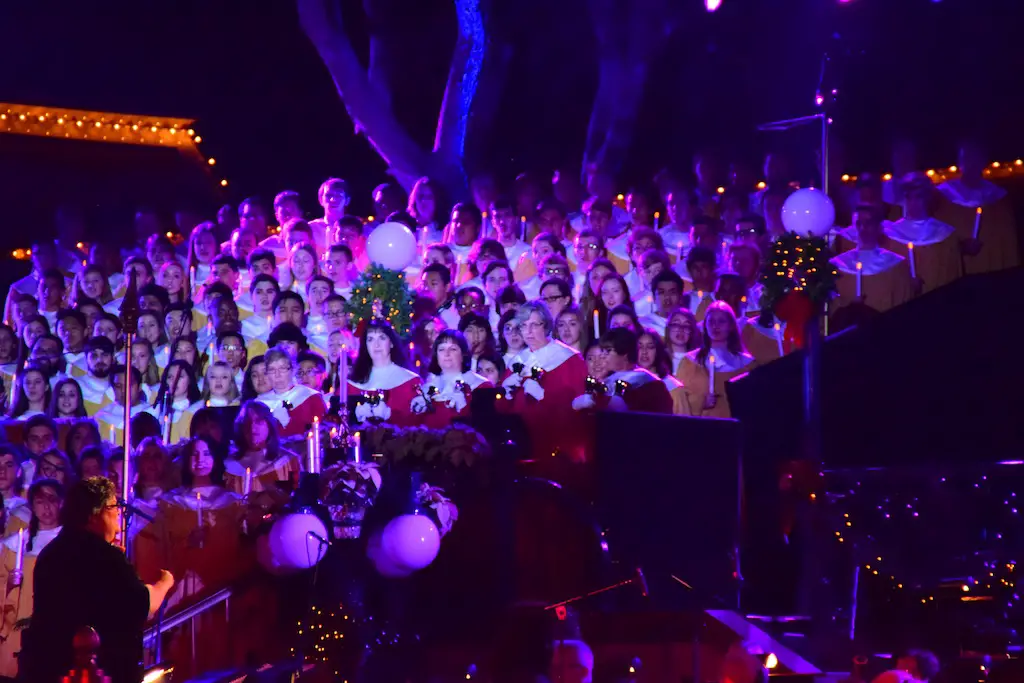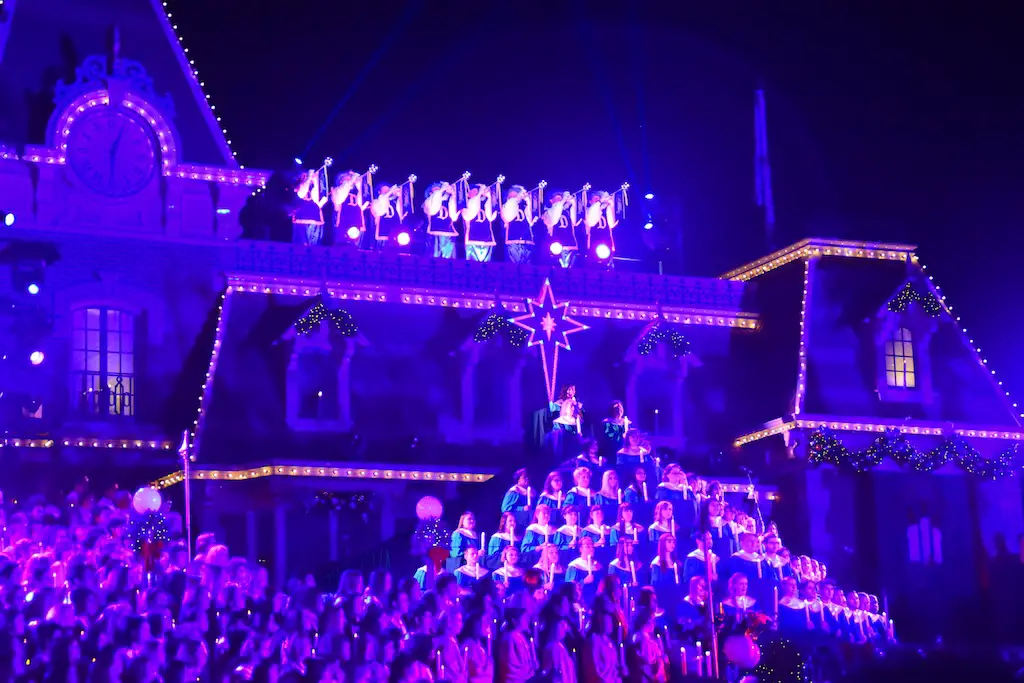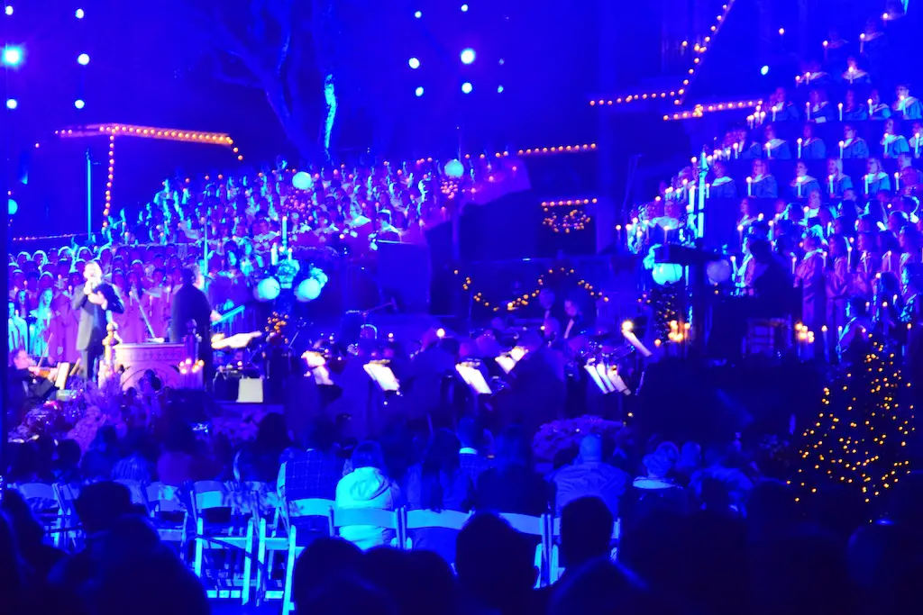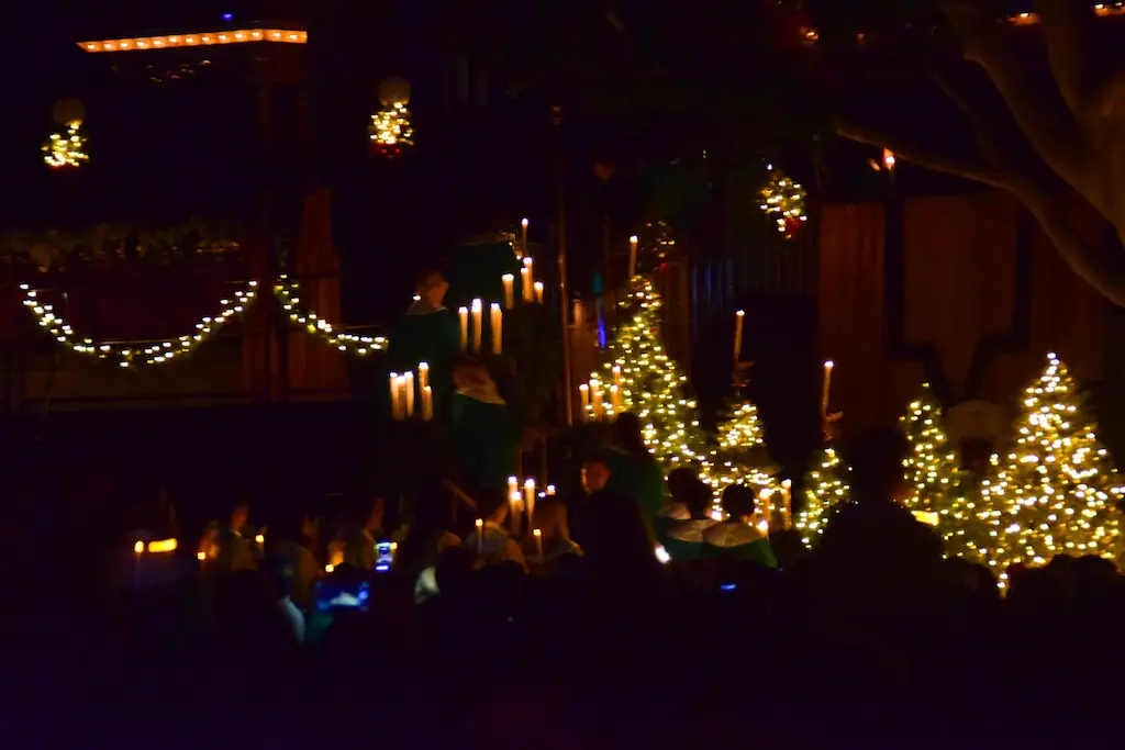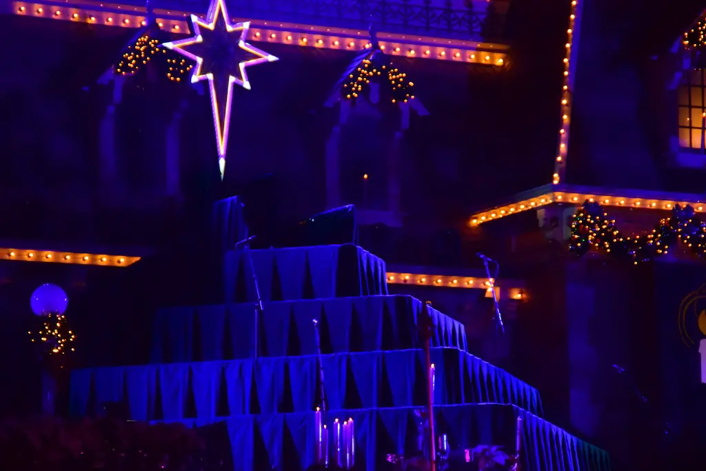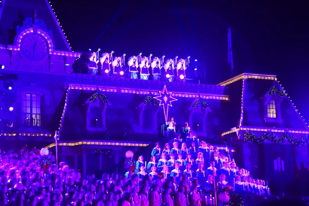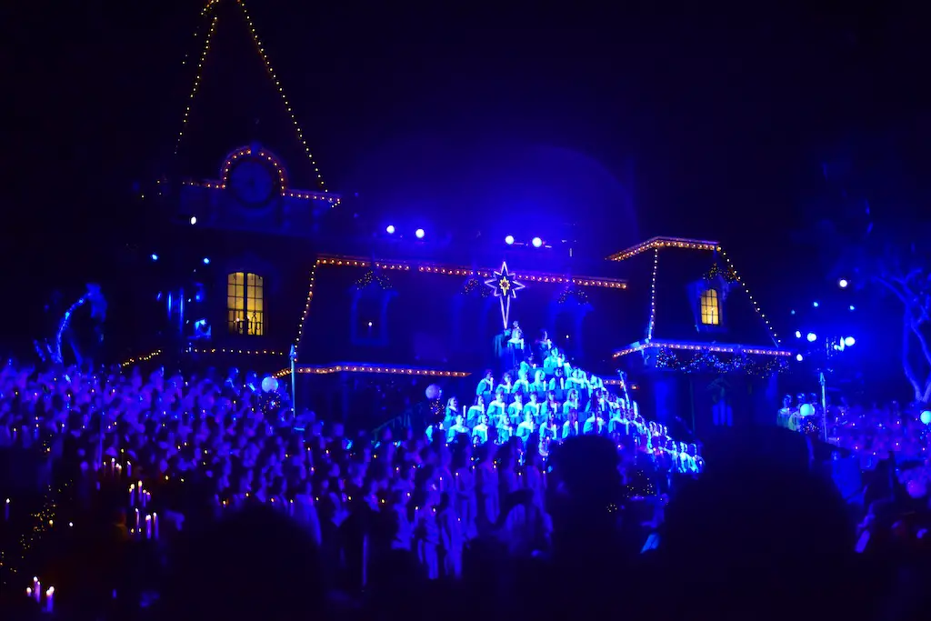 Candlelight Processional at Disneyland has always marked the holiday season. This weekend event has had many celebrity narrators that have read the Christmas story with great reverence. This year was another joyous and momentous occasion. Geena Davis narrated the first night, Saturday, December 5th. Her reaction after Silent Night summed up her delight in being able to take part of this great event. Lana Parrilla of Once Upon A Time fame narrated the second night, Sunday, December 6th (funny note: Once Upon A Time was airing the same time she was narrating). Though she plays an Evil Queen on the show, her presence was just the opposite, filling Main Street with her wonderful voice to retell the story. Both did a remarkable job, and the audience had a great time with the show. Things were just a little different with some musical numbers, like a little difference in soloists. Not that it detracted from a magical time in front of the train station. It is always a refreshing and joyful time at Disneyland, filled with music and a story of peace and love.