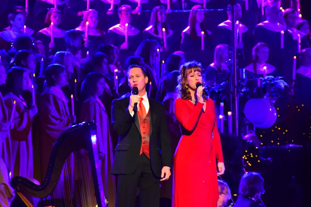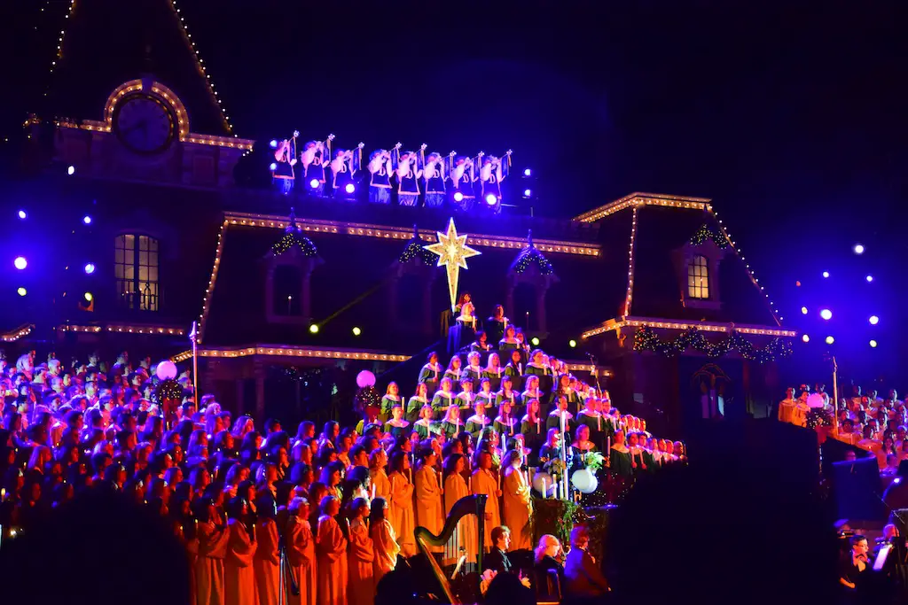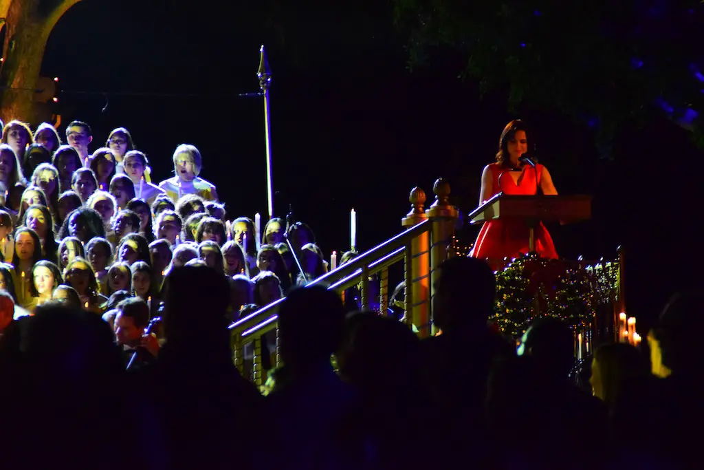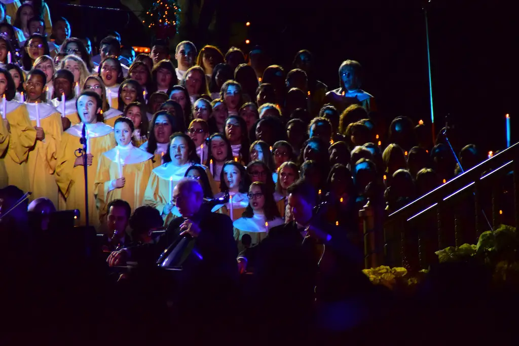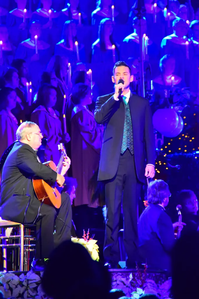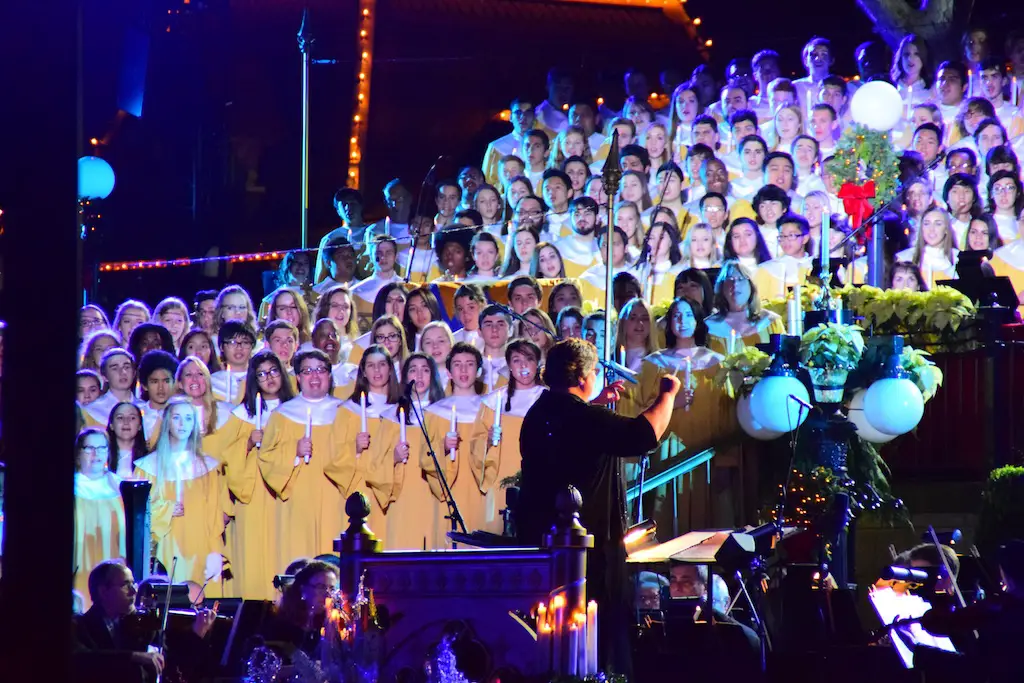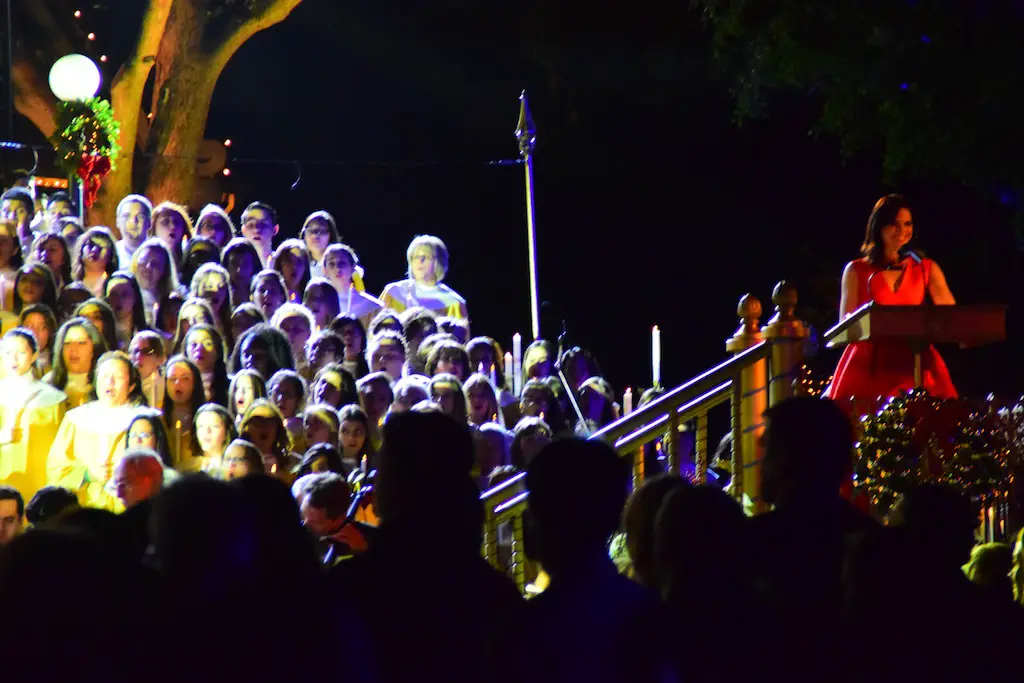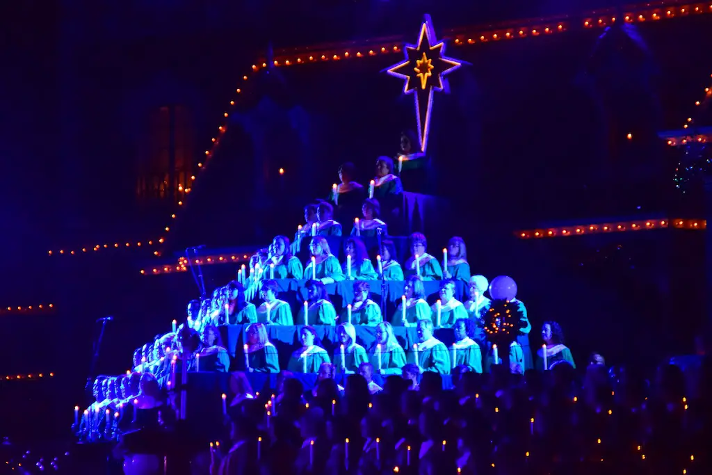 Candlelight Processional at Disneyland has always marked the holiday season. This weekend event has had many celebrity narrators that have read the Christmas story with great reverence. This year was another joyous and momentous occasion. Geena Davis narrated the first night, Saturday, December 5th. Her reaction after Silent Night summed up her delight in being able to take part of this great event. Lana Parrilla of Once Upon A Time fame narrated the second night, Sunday, December 6th (funny note: Once Upon A Time was airing the same time she was narrating). Though she plays an Evil Queen on the show, her presence was just the opposite, filling Main Street with her wonderful voice to retell the story. Both did a remarkable job, and the audience had a great time with the show. Things were just a little different with some musical numbers, like a little difference in soloists. Not that it detracted from a magical time in front of the train station. It is always a refreshing and joyful time at Disneyland, filled with music and a story of peace and love.