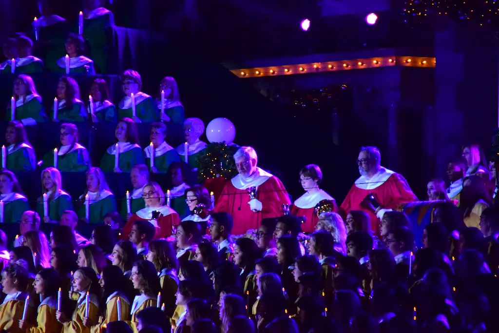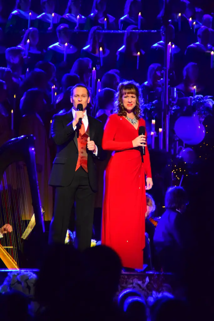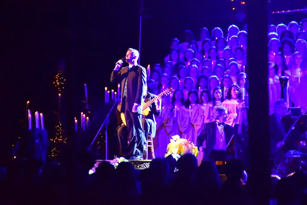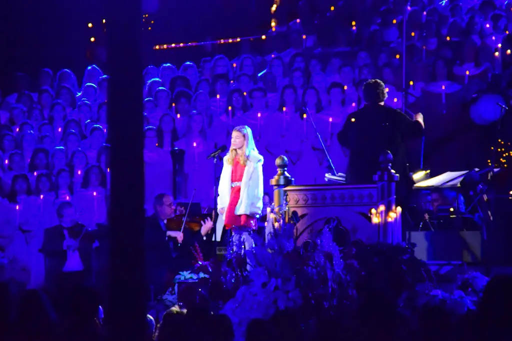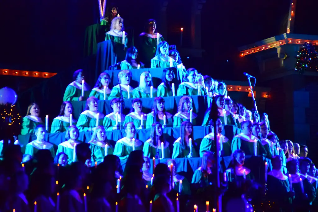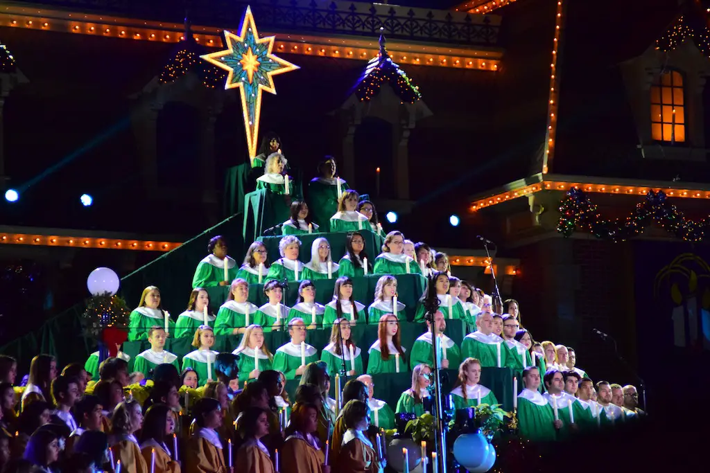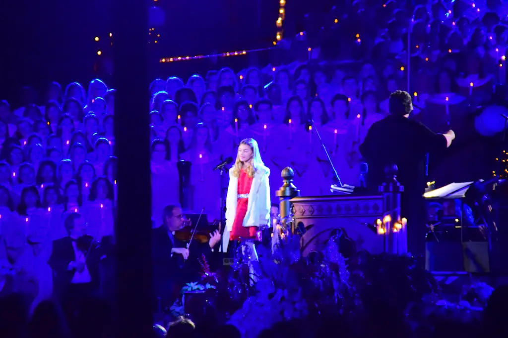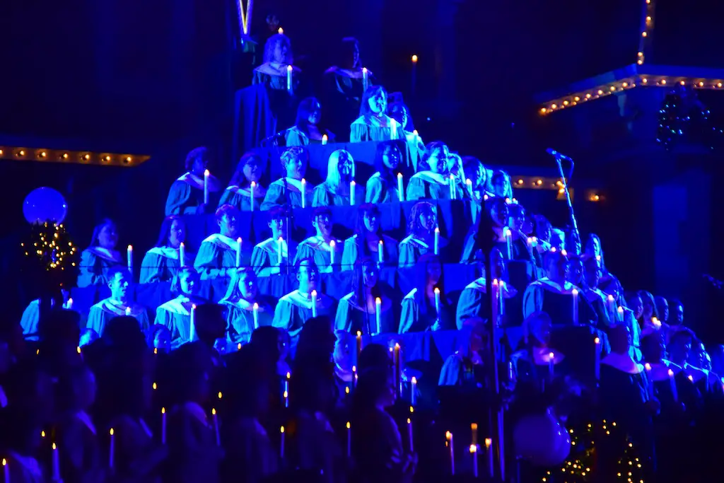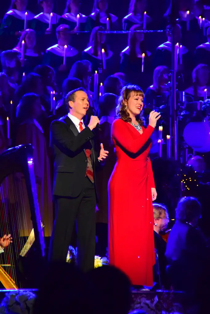 Candlelight Processional at Disneyland has always marked the holiday season. This weekend event has had many celebrity narrators that have read the Christmas story with great reverence. This year was another joyous and momentous occasion. Geena Davis narrated the first night, Saturday, December 5th. Her reaction after Silent Night summed up her delight in being able to take part of this great event. Lana Parrilla of Once Upon A Time fame narrated the second night, Sunday, December 6th (funny note: Once Upon A Time was airing the same time she was narrating). Though she plays an Evil Queen on the show, her presence was just the opposite, filling Main Street with her wonderful voice to retell the story. Both did a remarkable job, and the audience had a great time with the show. Things were just a little different with some musical numbers, like a little difference in soloists. Not that it detracted from a magical time in front of the train station. It is always a refreshing and joyful time at Disneyland, filled with music and a story of peace and love.