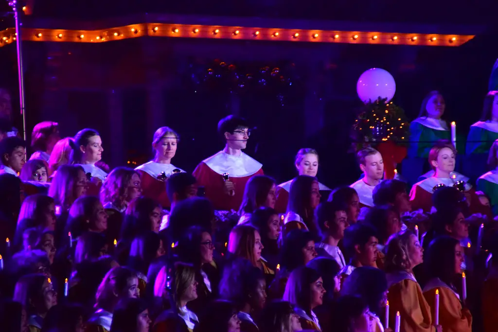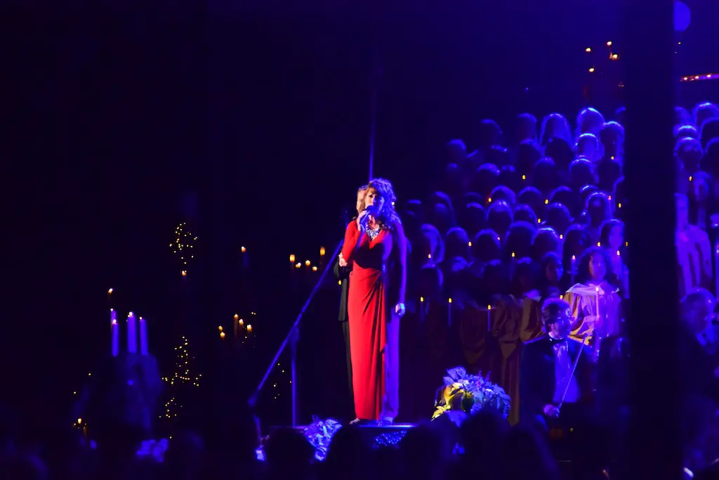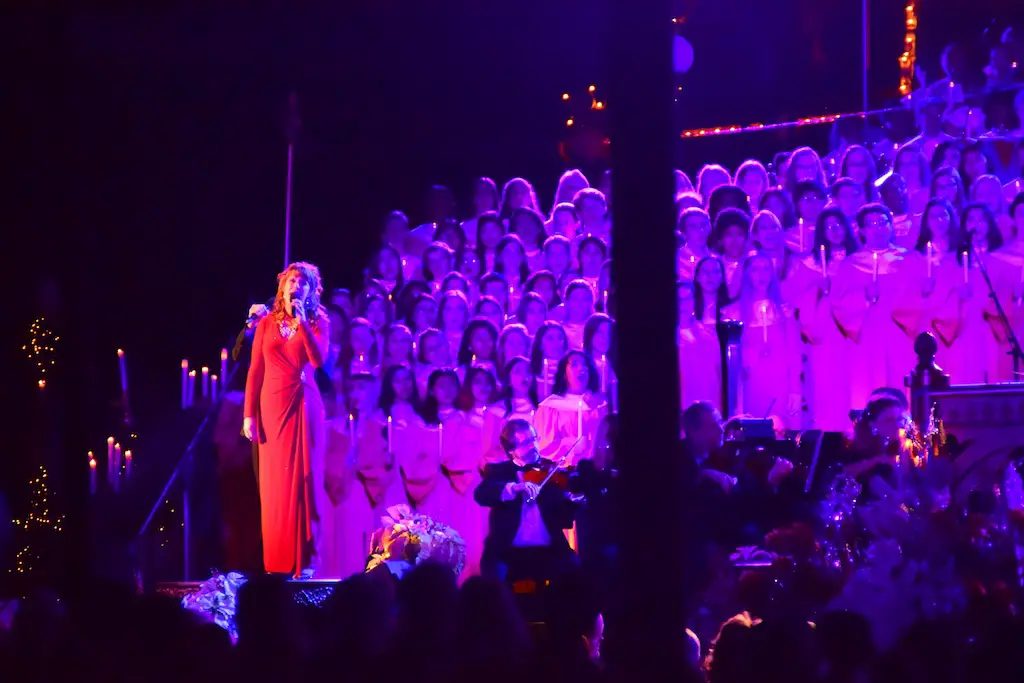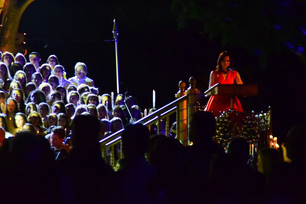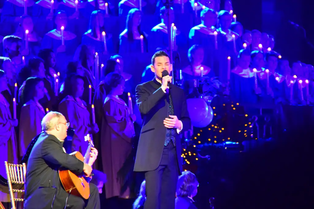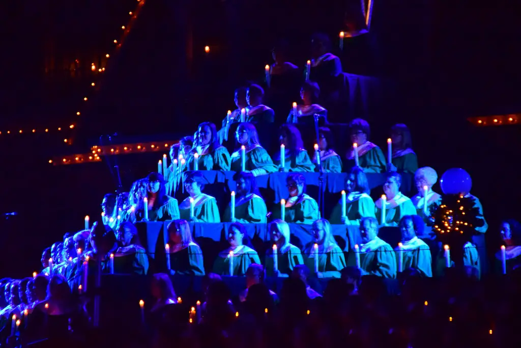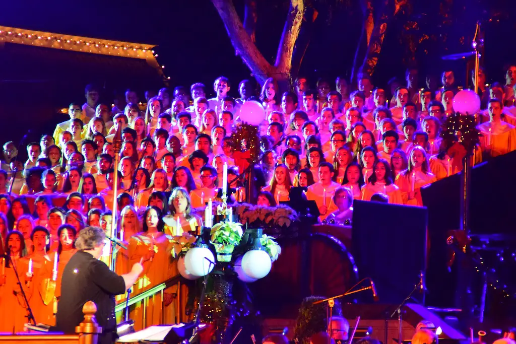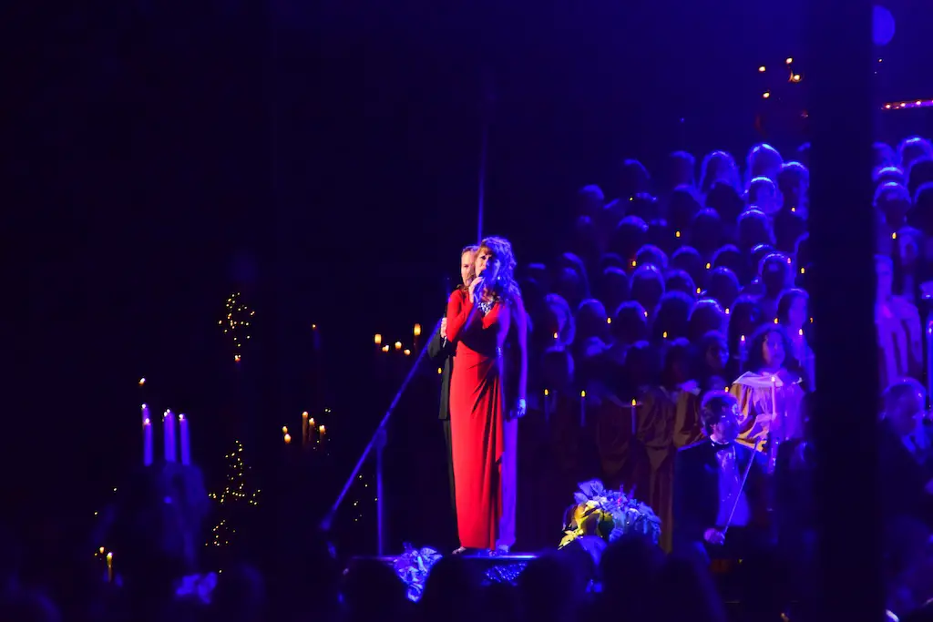 Candlelight Processional at Disneyland has always marked the holiday season. This weekend event has had many celebrity narrators that have read the Christmas story with great reverence. This year was another joyous and momentous occasion. Geena Davis narrated the first night, Saturday, December 5th. Her reaction after Silent Night summed up her delight in being able to take part of this great event. Lana Parrilla of Once Upon A Time fame narrated the second night, Sunday, December 6th (funny note: Once Upon A Time was airing the same time she was narrating). Though she plays an Evil Queen on the show, her presence was just the opposite, filling Main Street with her wonderful voice to retell the story. Both did a remarkable job, and the audience had a great time with the show. Things were just a little different with some musical numbers, like a little difference in soloists. Not that it detracted from a magical time in front of the train station. It is always a refreshing and joyful time at Disneyland, filled with music and a story of peace and love.