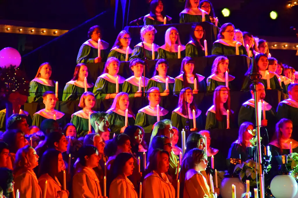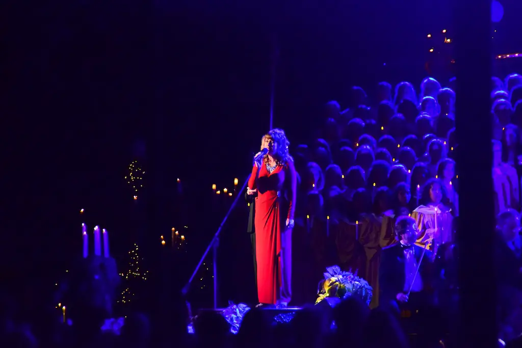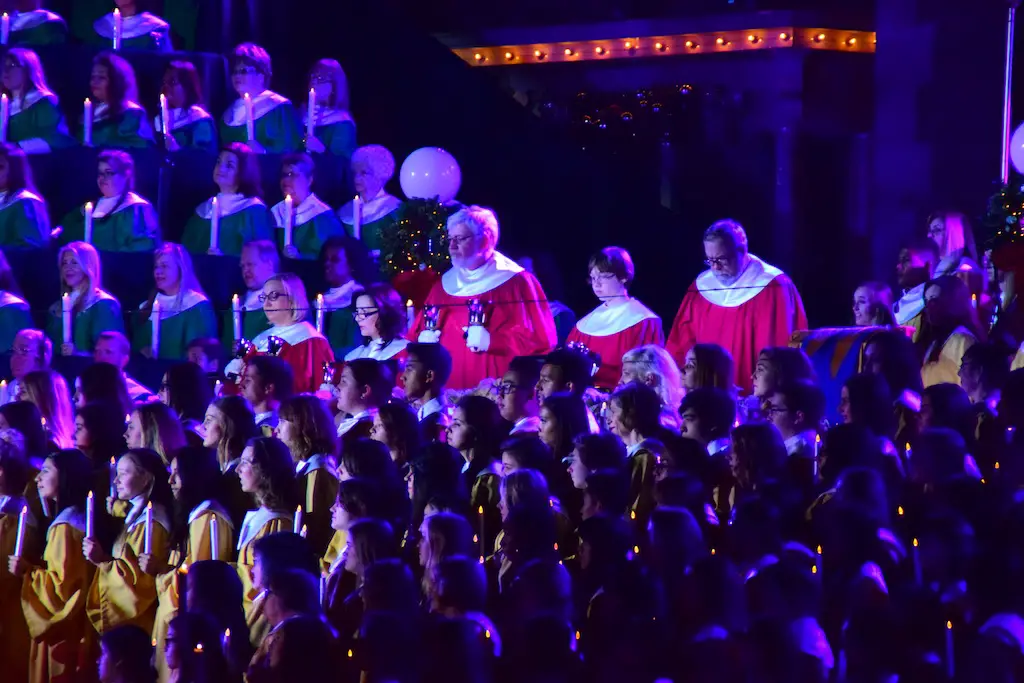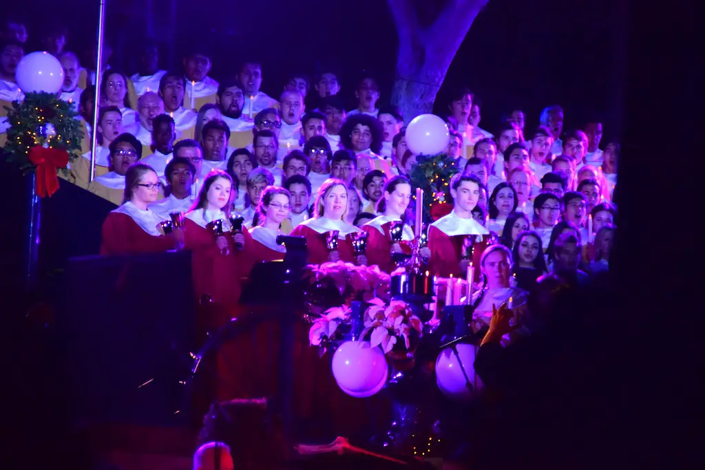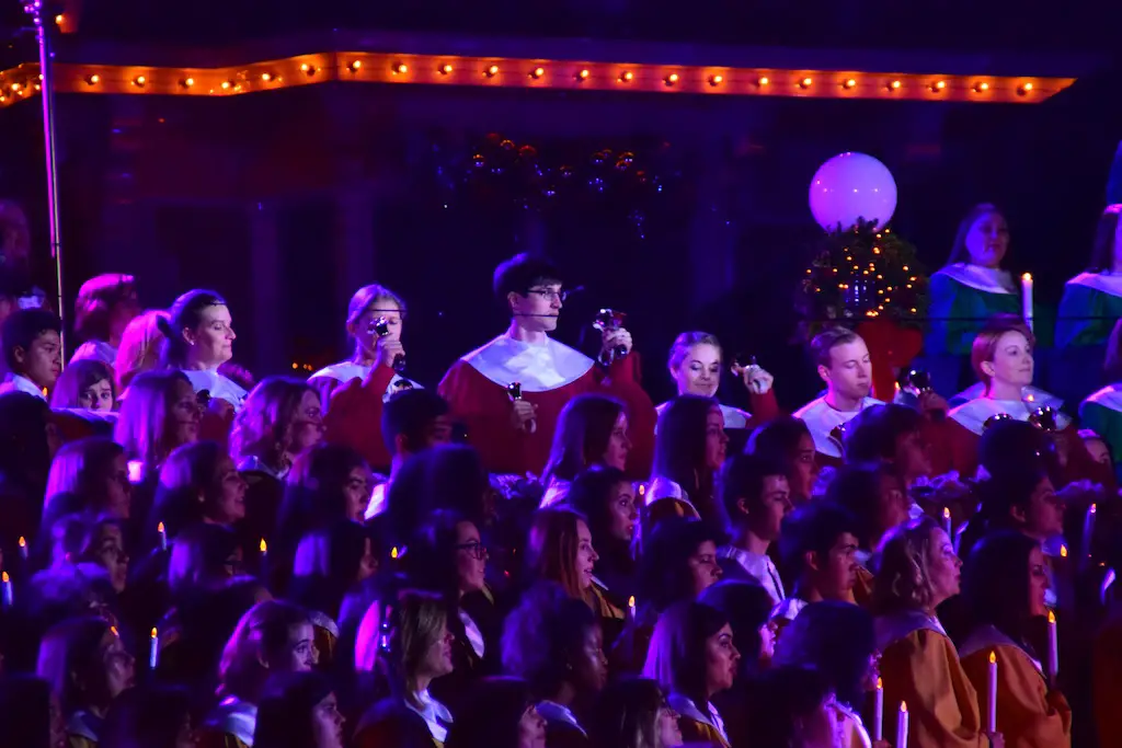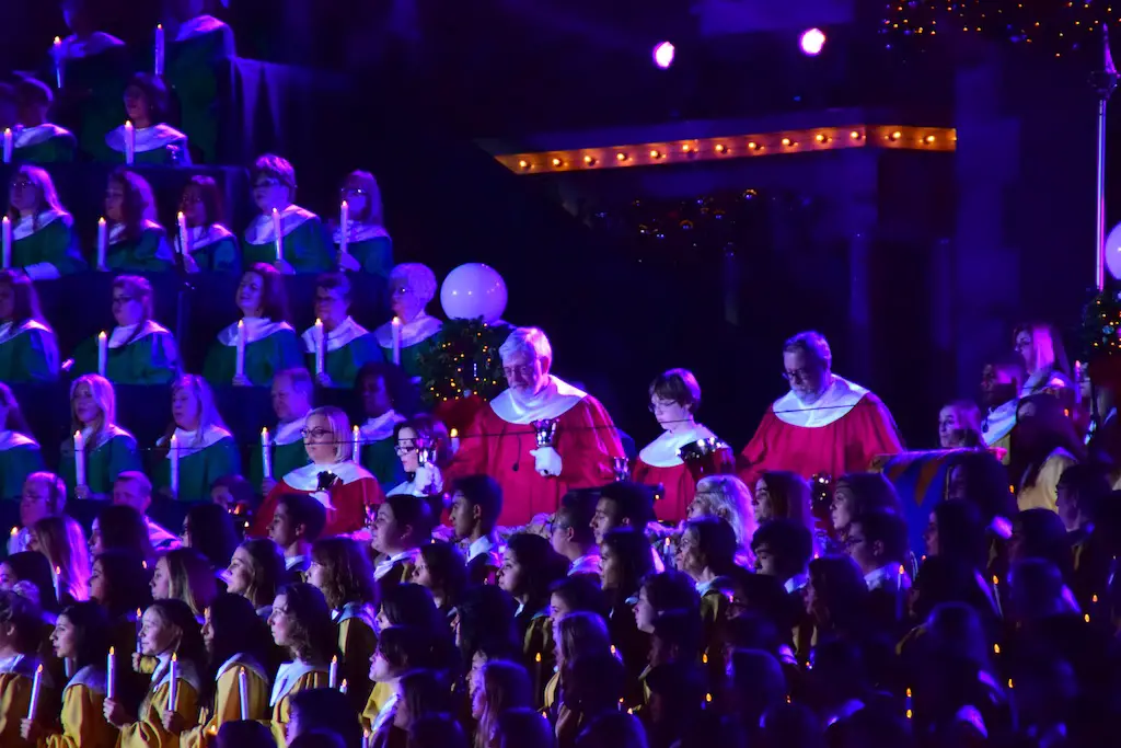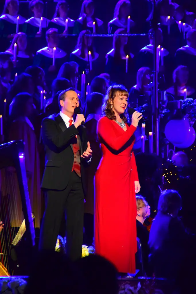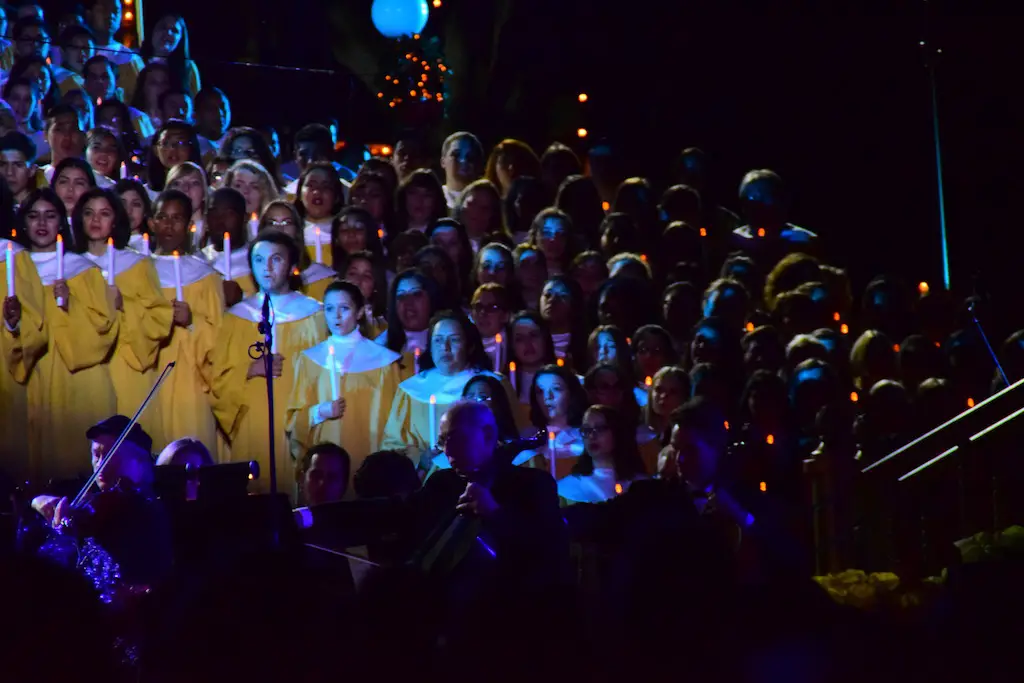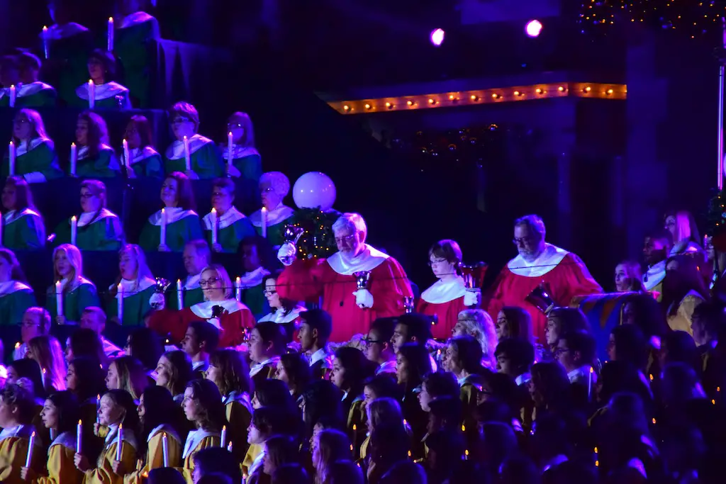 Candlelight Processional at Disneyland has always marked the holiday season. This weekend event has had many celebrity narrators that have read the Christmas story with great reverence. This year was another joyous and momentous occasion. Geena Davis narrated the first night, Saturday, December 5th. Her reaction after Silent Night summed up her delight in being able to take part of this great event. Lana Parrilla of Once Upon A Time fame narrated the second night, Sunday, December 6th (funny note: Once Upon A Time was airing the same time she was narrating). Though she plays an Evil Queen on the show, her presence was just the opposite, filling Main Street with her wonderful voice to retell the story. Both did a remarkable job, and the audience had a great time with the show. Things were just a little different with some musical numbers, like a little difference in soloists. Not that it detracted from a magical time in front of the train station. It is always a refreshing and joyful time at Disneyland, filled with music and a story of peace and love.