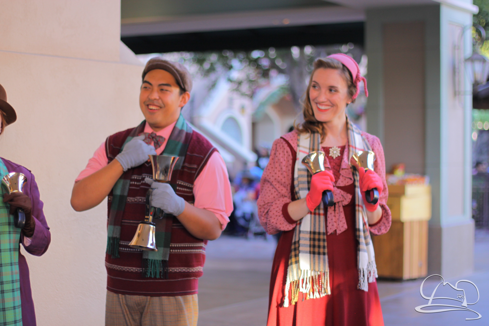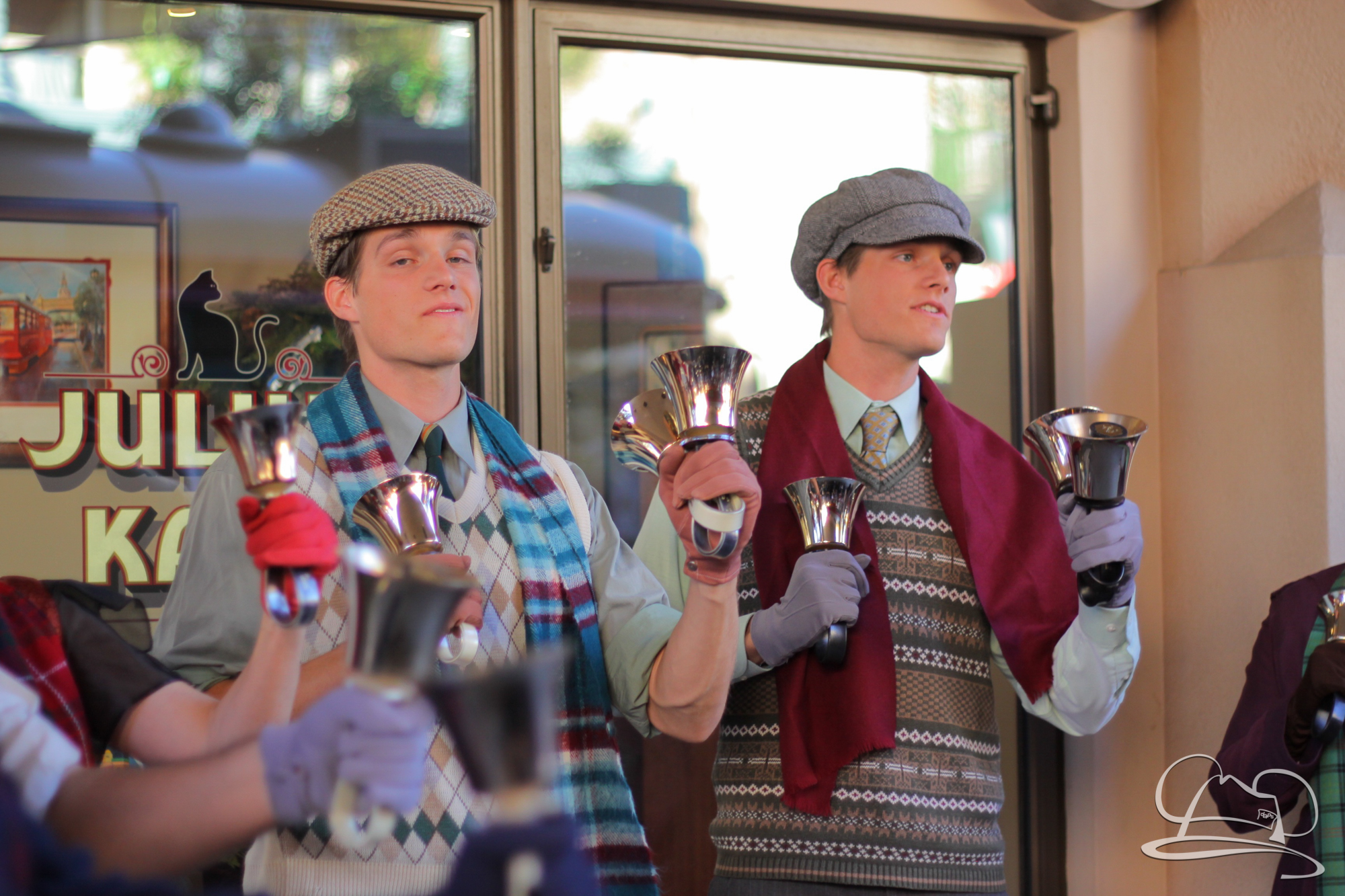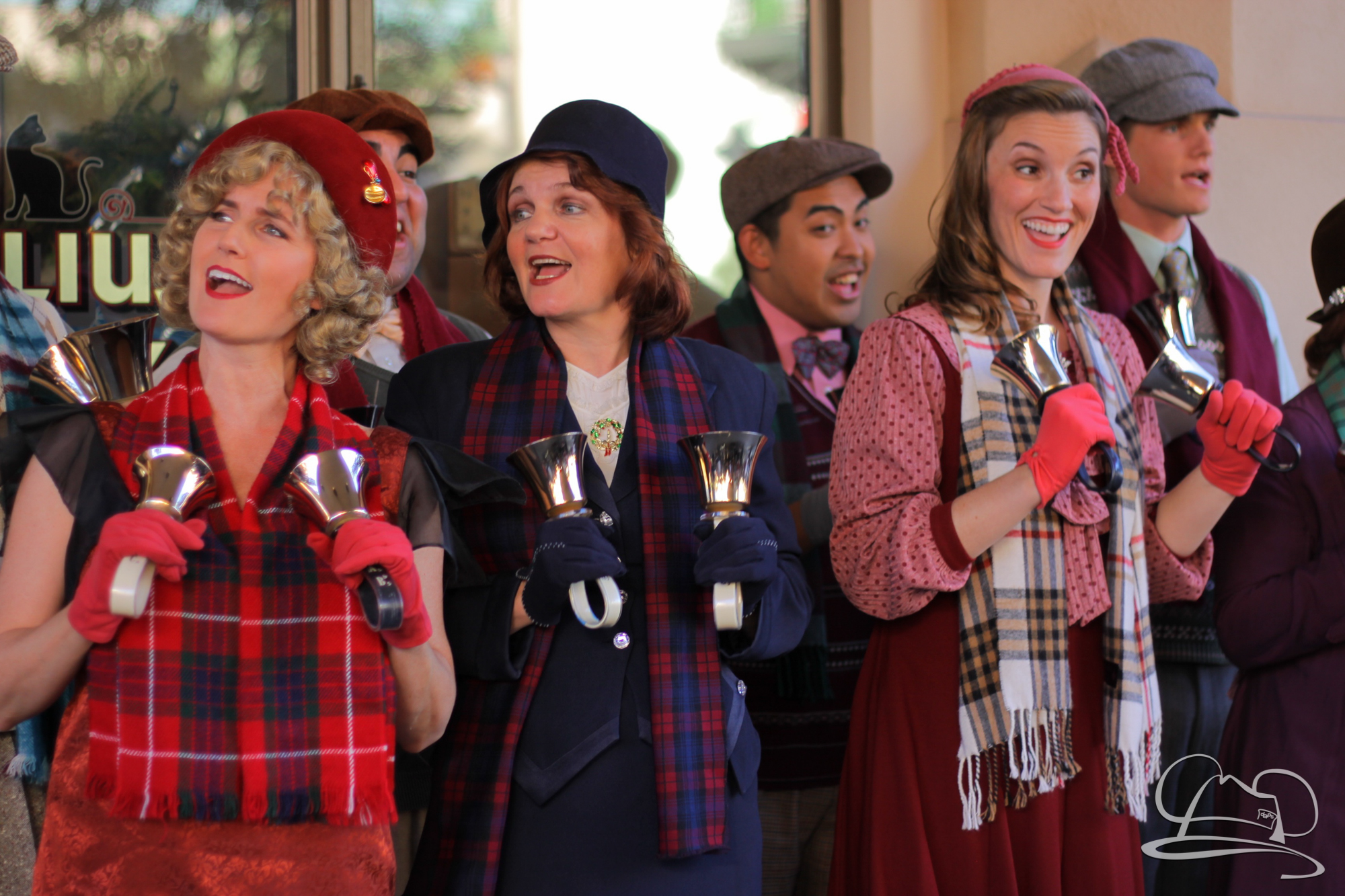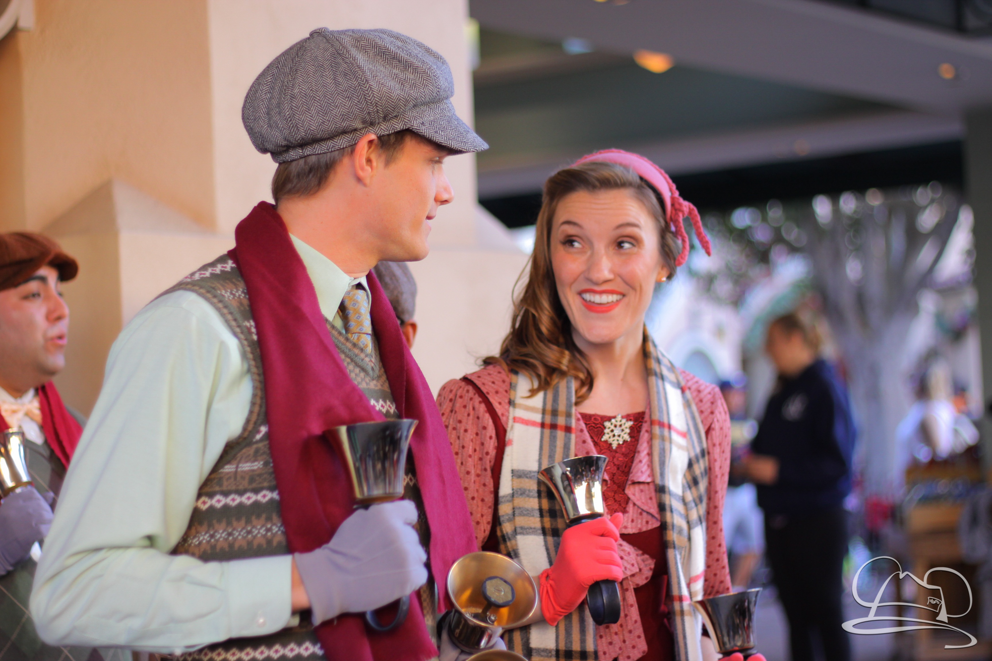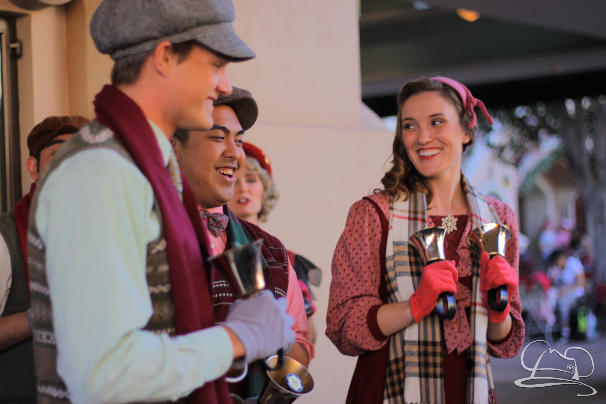 One fun part of Holiday Time at the Disneyland Resort is the Buena Vista Street Community Bell Ringers. This ensemble sings and rings handbells on Buena Vista Street throughout the Christmas season and really is a lot of fun to watch. They are residents of Buena Vista Street who come together to share the musical magic of the season. Here are some photos from the Buena Vista Street Community Bell Ringers along with some other photos from a day at the Disneyland Resort. This also includes some festive photos and also Season of the Force in Tomorrowland. What is your favorite part of Holidays at the Disneyland Resort?