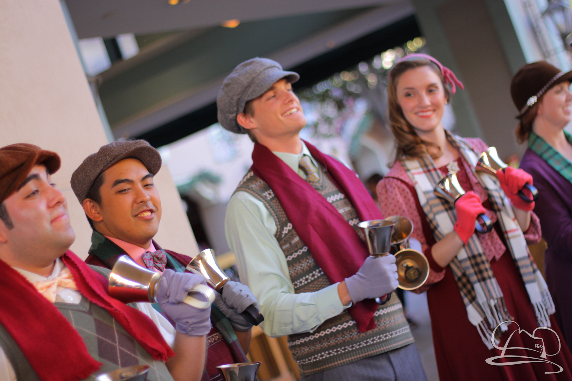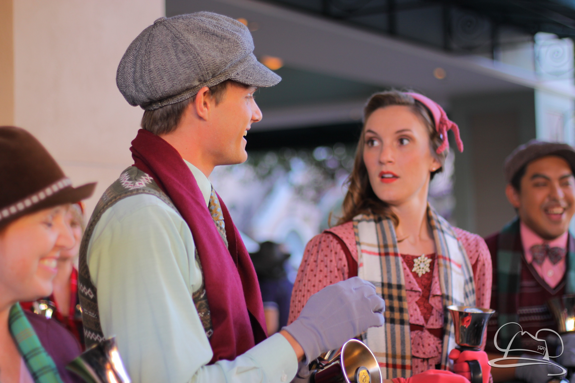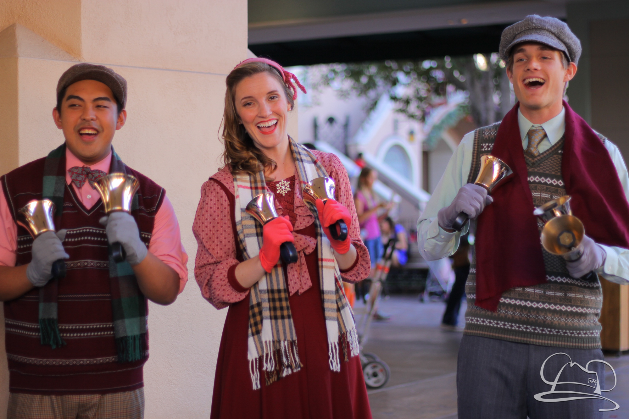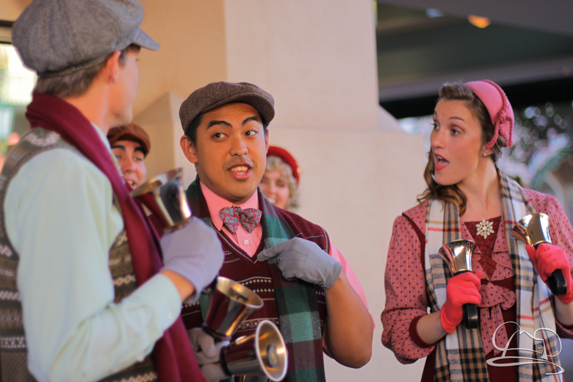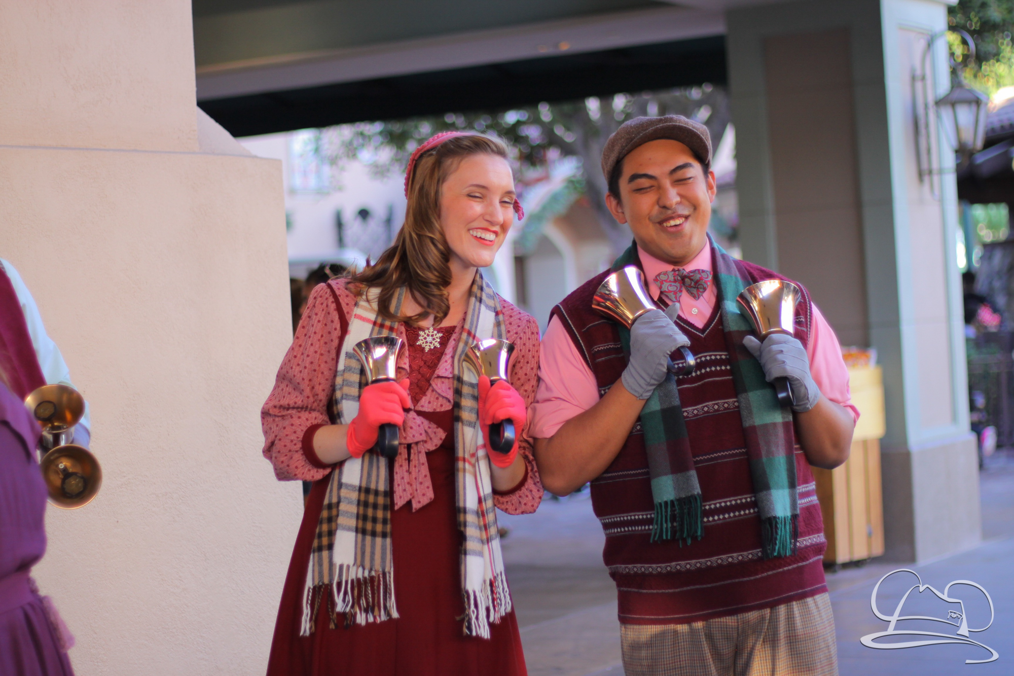 One fun part of Holiday Time at the Disneyland Resort is the Buena Vista Street Community Bell Ringers. This ensemble sings and rings handbells on Buena Vista Street throughout the Christmas season and really is a lot of fun to watch. They are residents of Buena Vista Street who come together to share the musical magic of the season. Here are some photos from the Buena Vista Street Community Bell Ringers along with some other photos from a day at the Disneyland Resort. This also includes some festive photos and also Season of the Force in Tomorrowland. What is your favorite part of Holidays at the Disneyland Resort?
