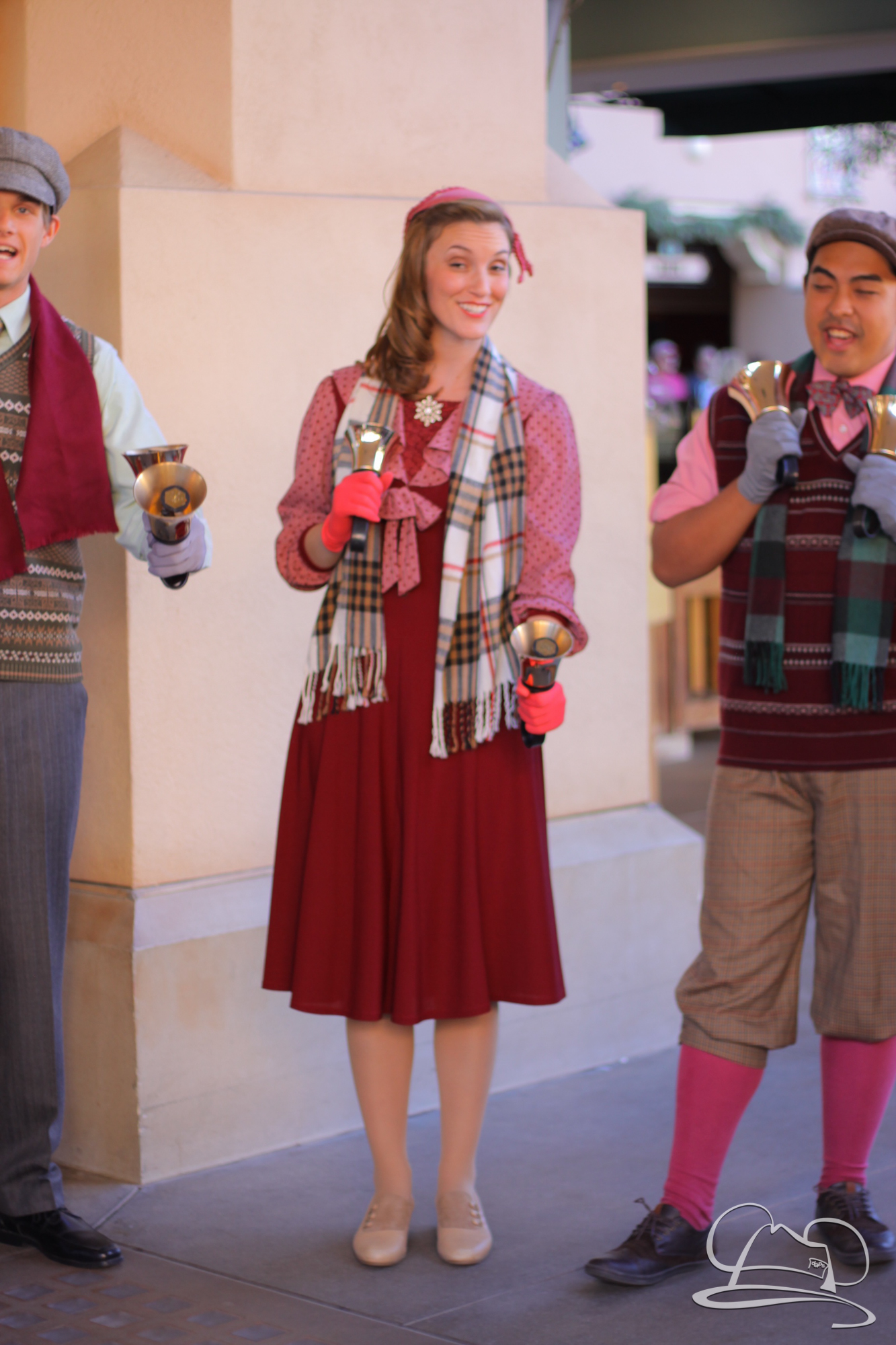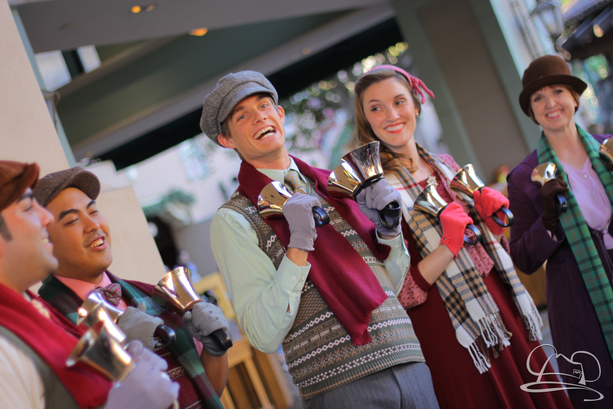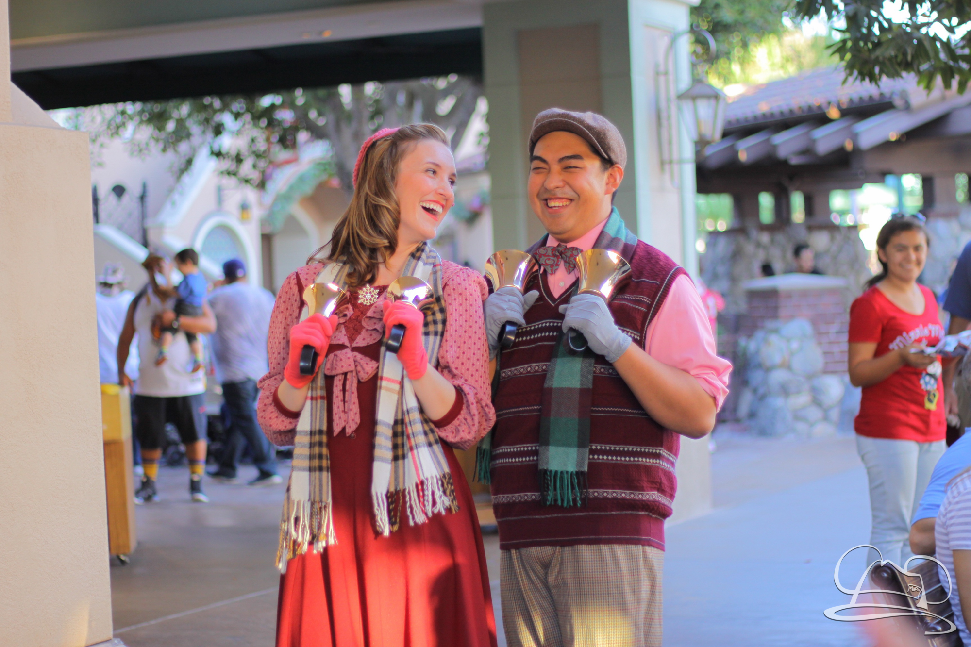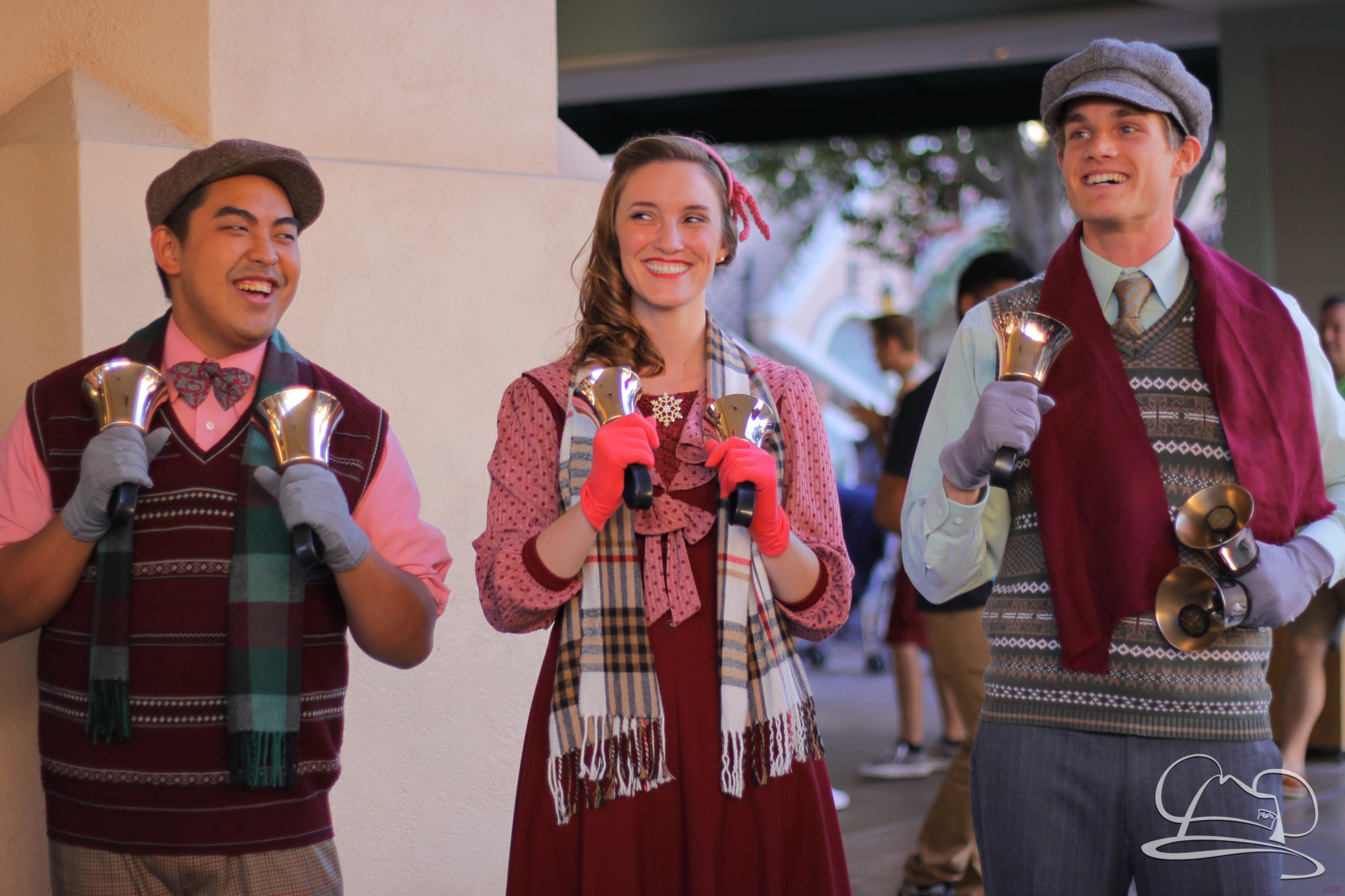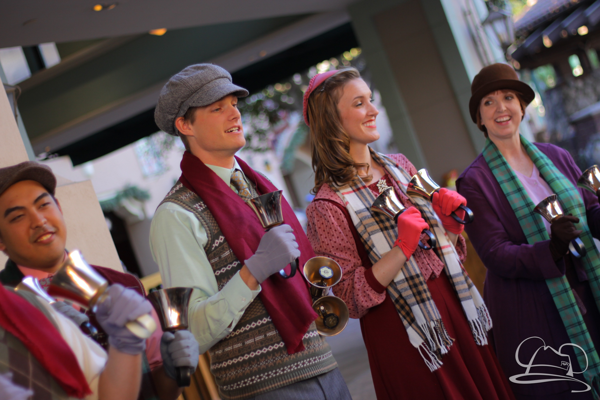 One fun part of Holiday Time at the Disneyland Resort is the Buena Vista Street Community Bell Ringers. This ensemble sings and rings handbells on Buena Vista Street throughout the Christmas season and really is a lot of fun to watch. They are residents of Buena Vista Street who come together to share the musical magic of the season. Here are some photos from the Buena Vista Street Community Bell Ringers along with some other photos from a day at the Disneyland Resort. This also includes some festive photos and also Season of the Force in Tomorrowland. What is your favorite part of Holidays at the Disneyland Resort?