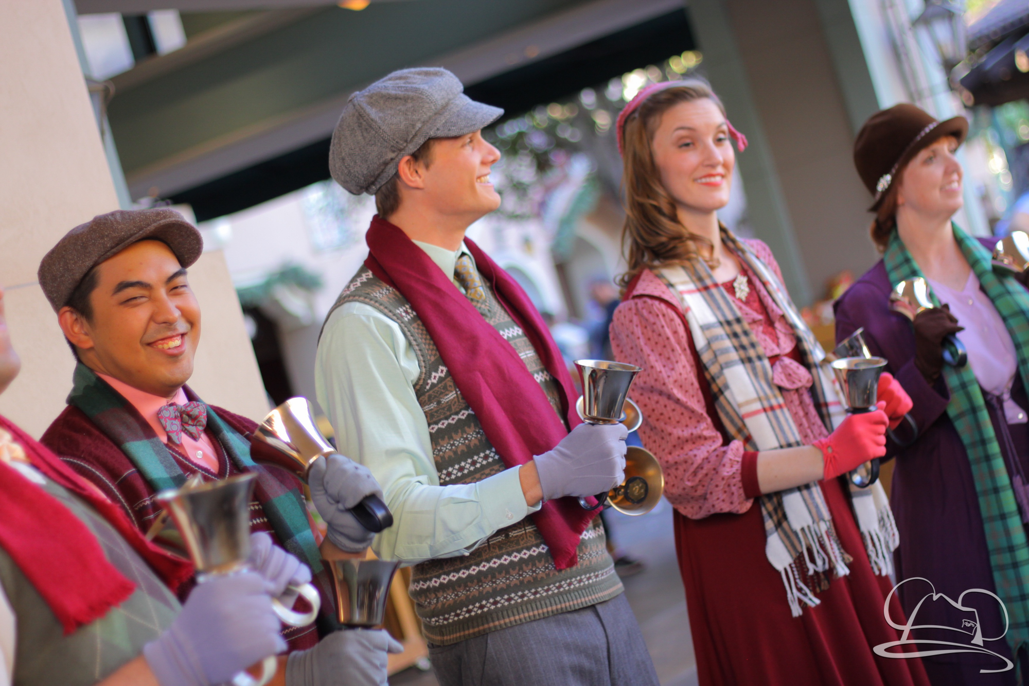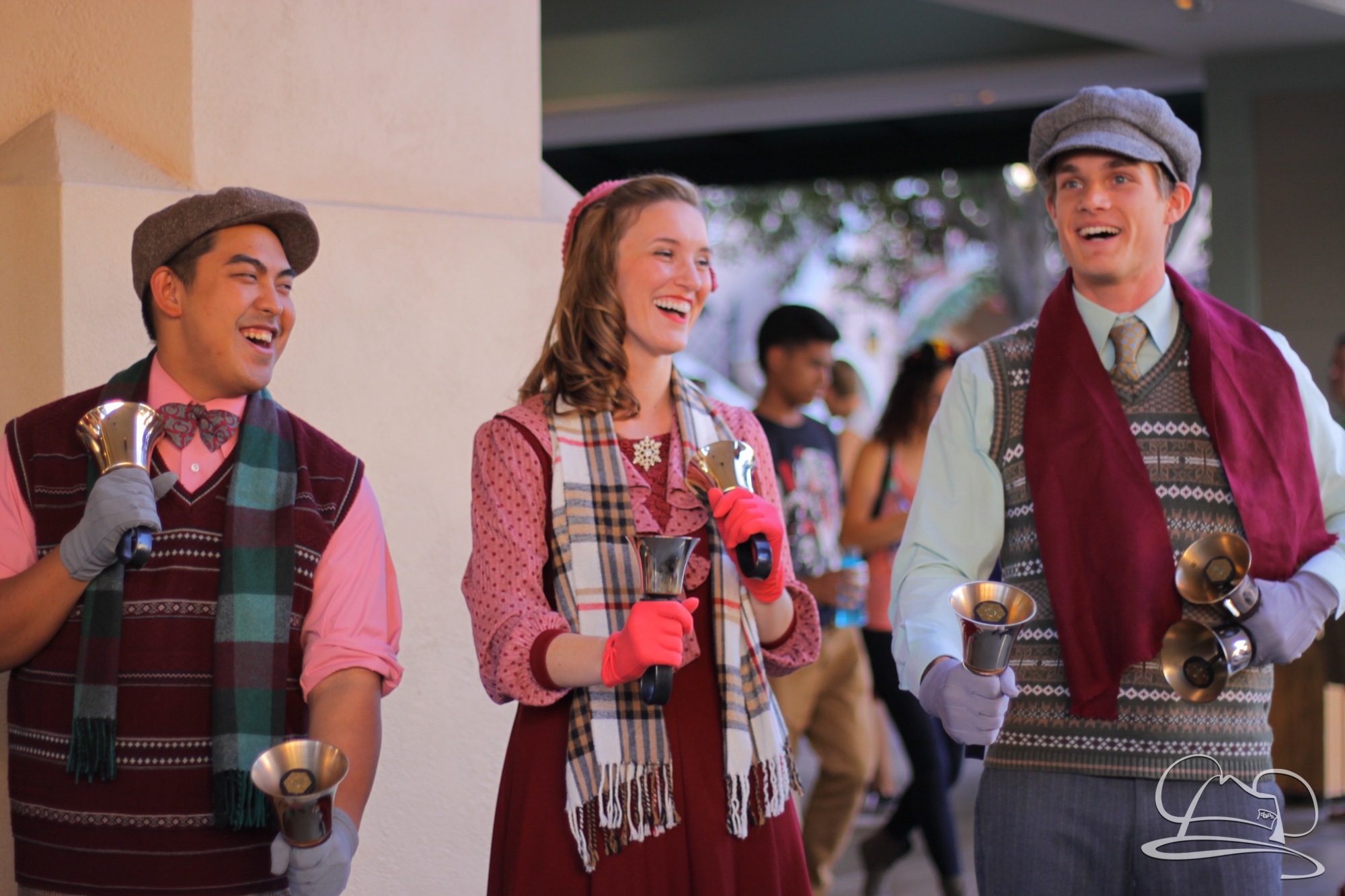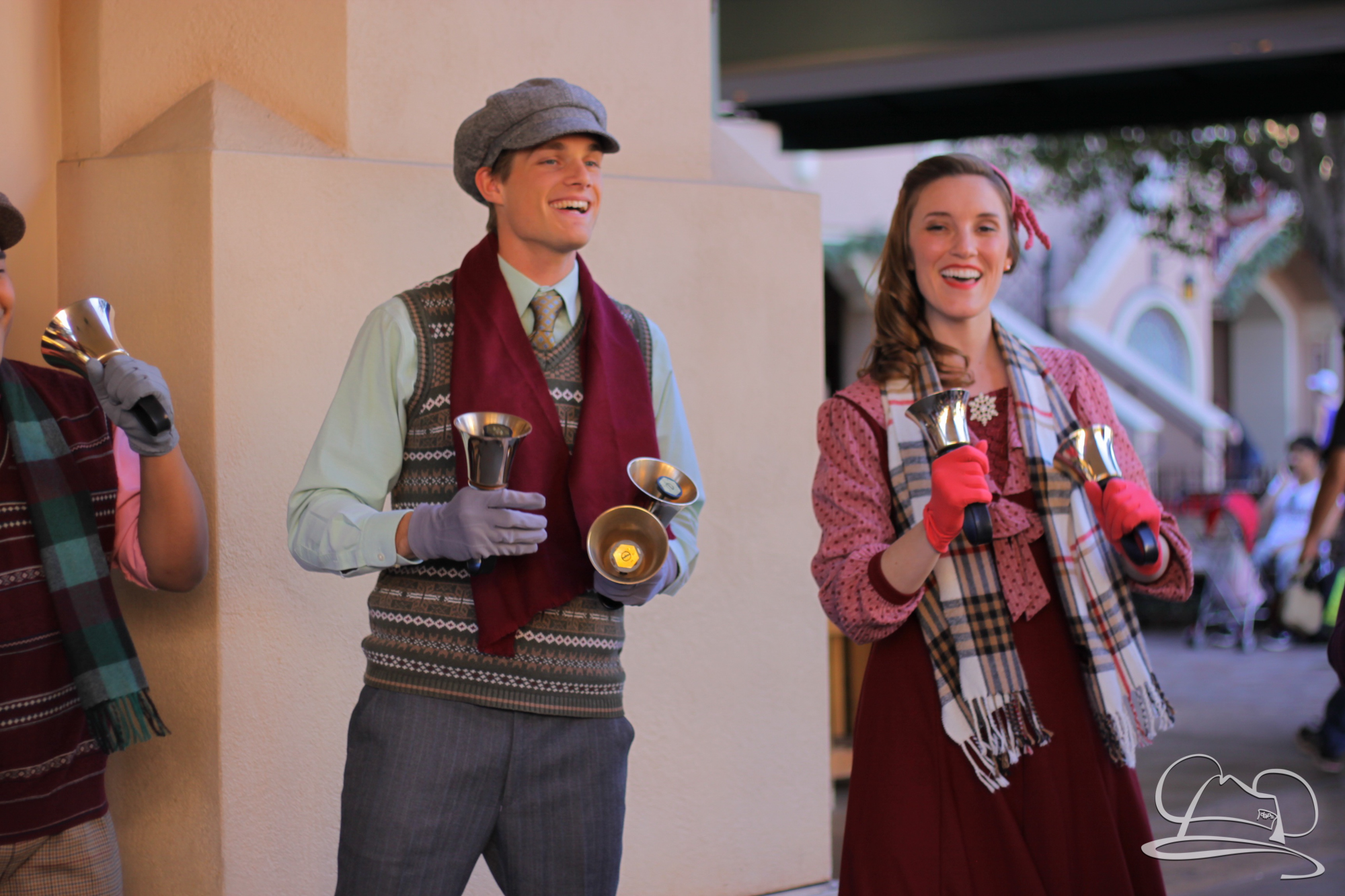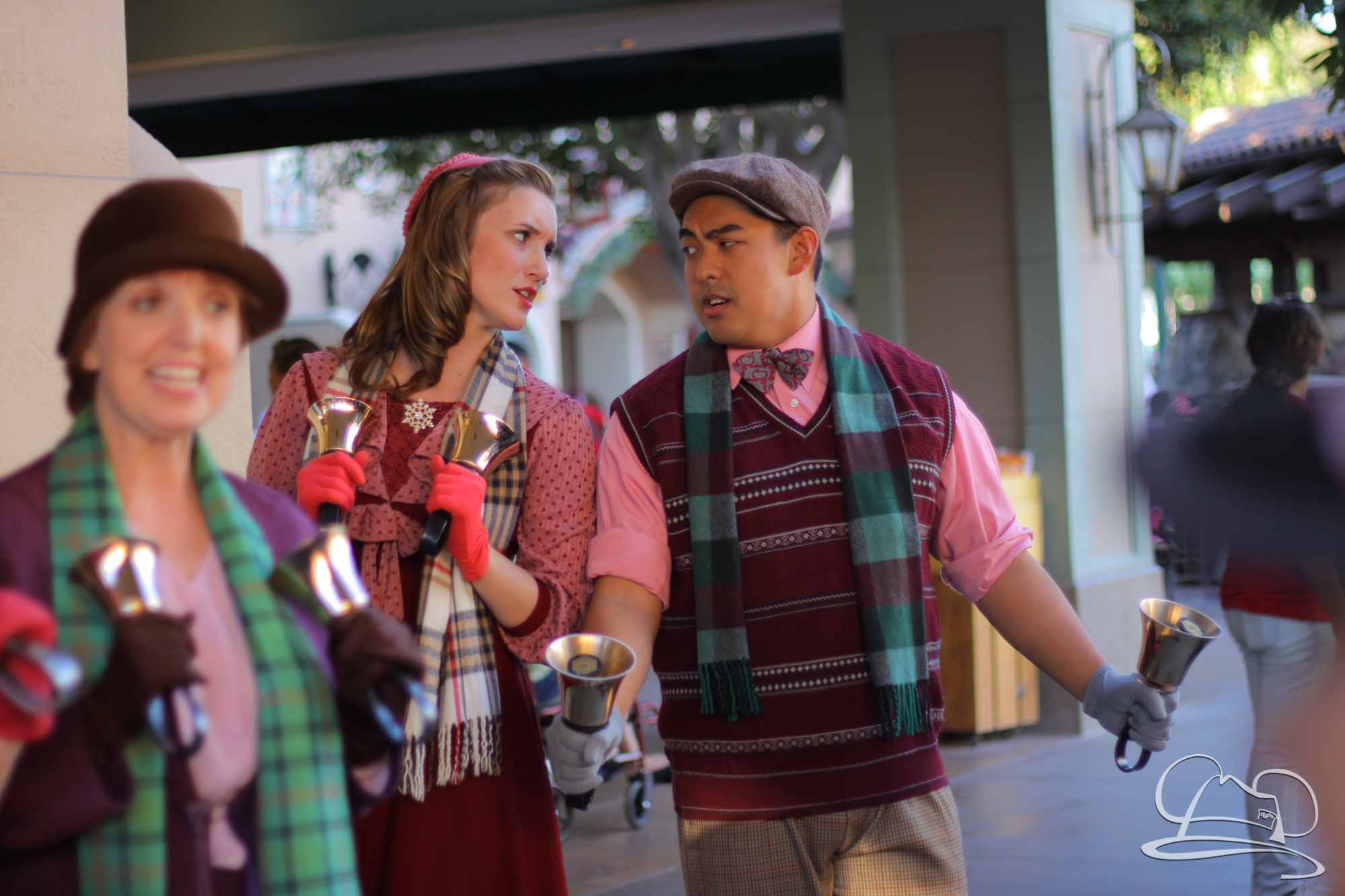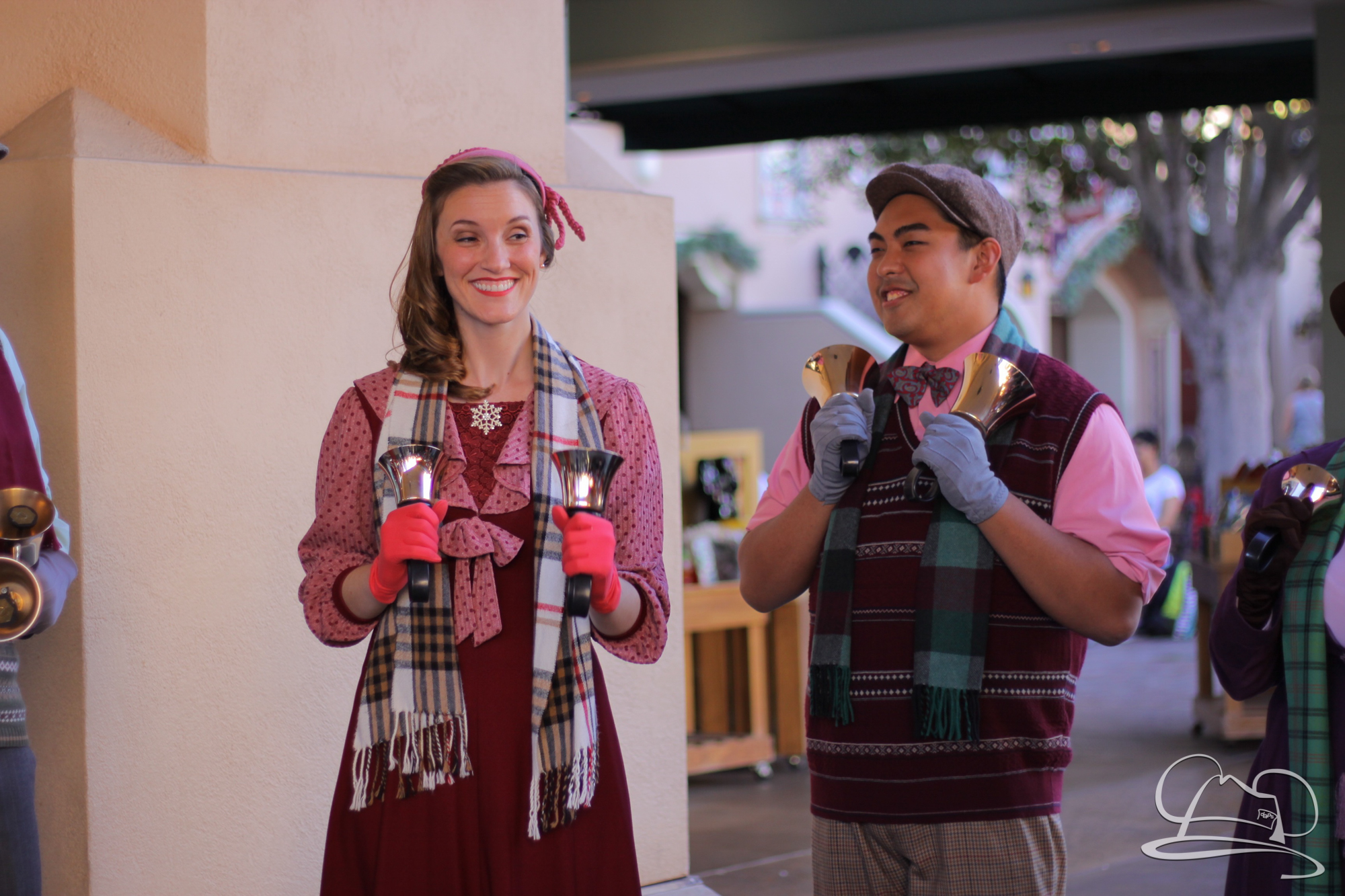 One fun part of Holiday Time at the Disneyland Resort is the Buena Vista Street Community Bell Ringers. This ensemble sings and rings handbells on Buena Vista Street throughout the Christmas season and really is a lot of fun to watch. They are residents of Buena Vista Street who come together to share the musical magic of the season. Here are some photos from the Buena Vista Street Community Bell Ringers along with some other photos from a day at the Disneyland Resort. This also includes some festive photos and also Season of the Force in Tomorrowland. What is your favorite part of Holidays at the Disneyland Resort?