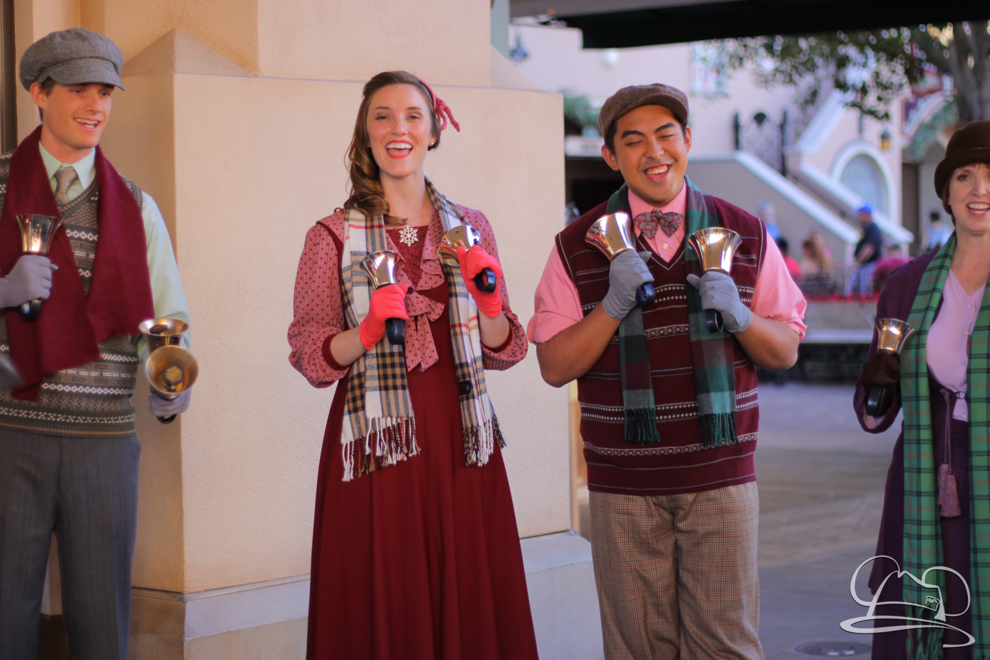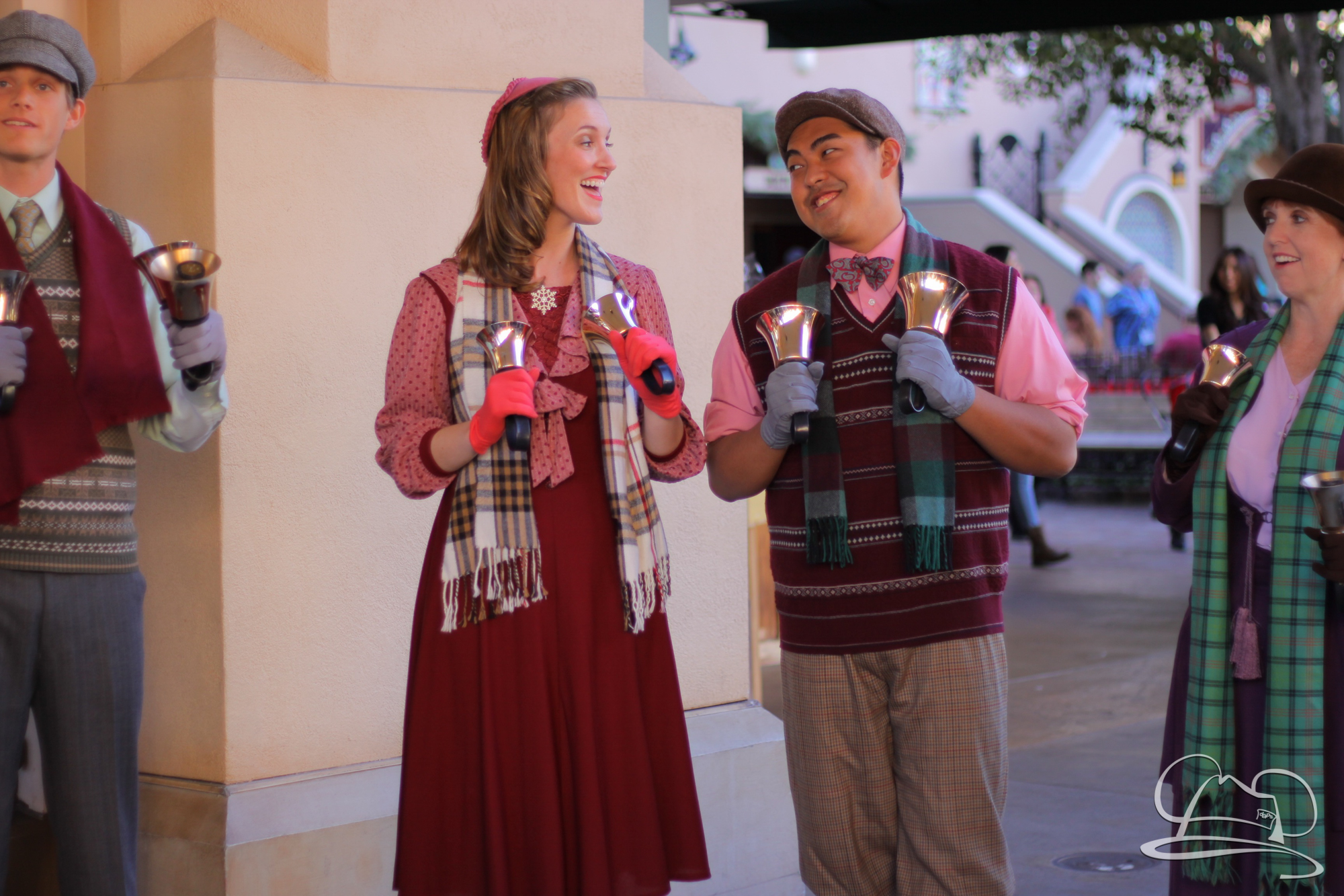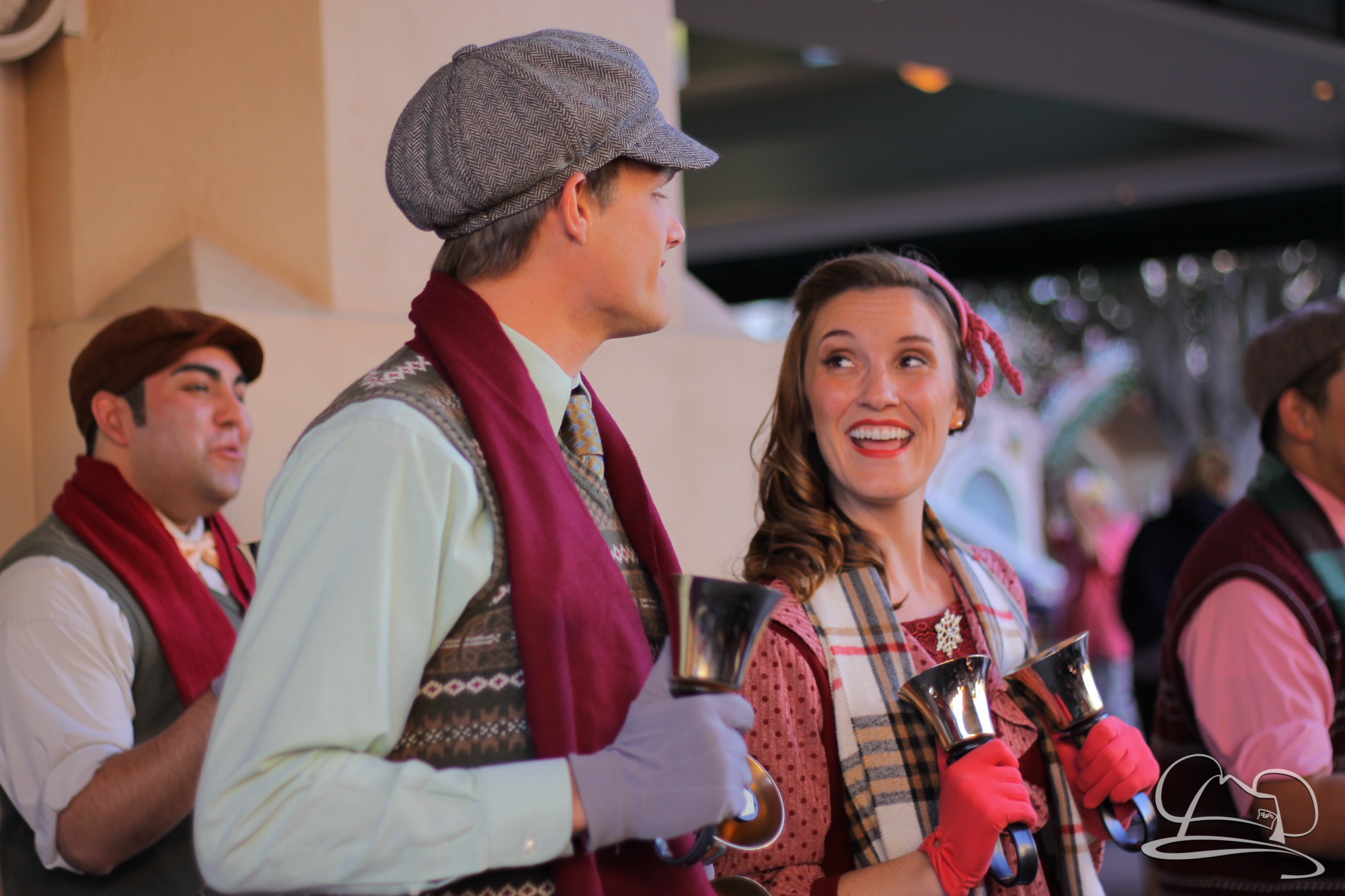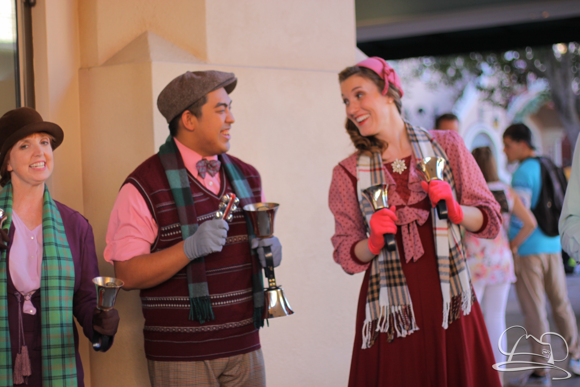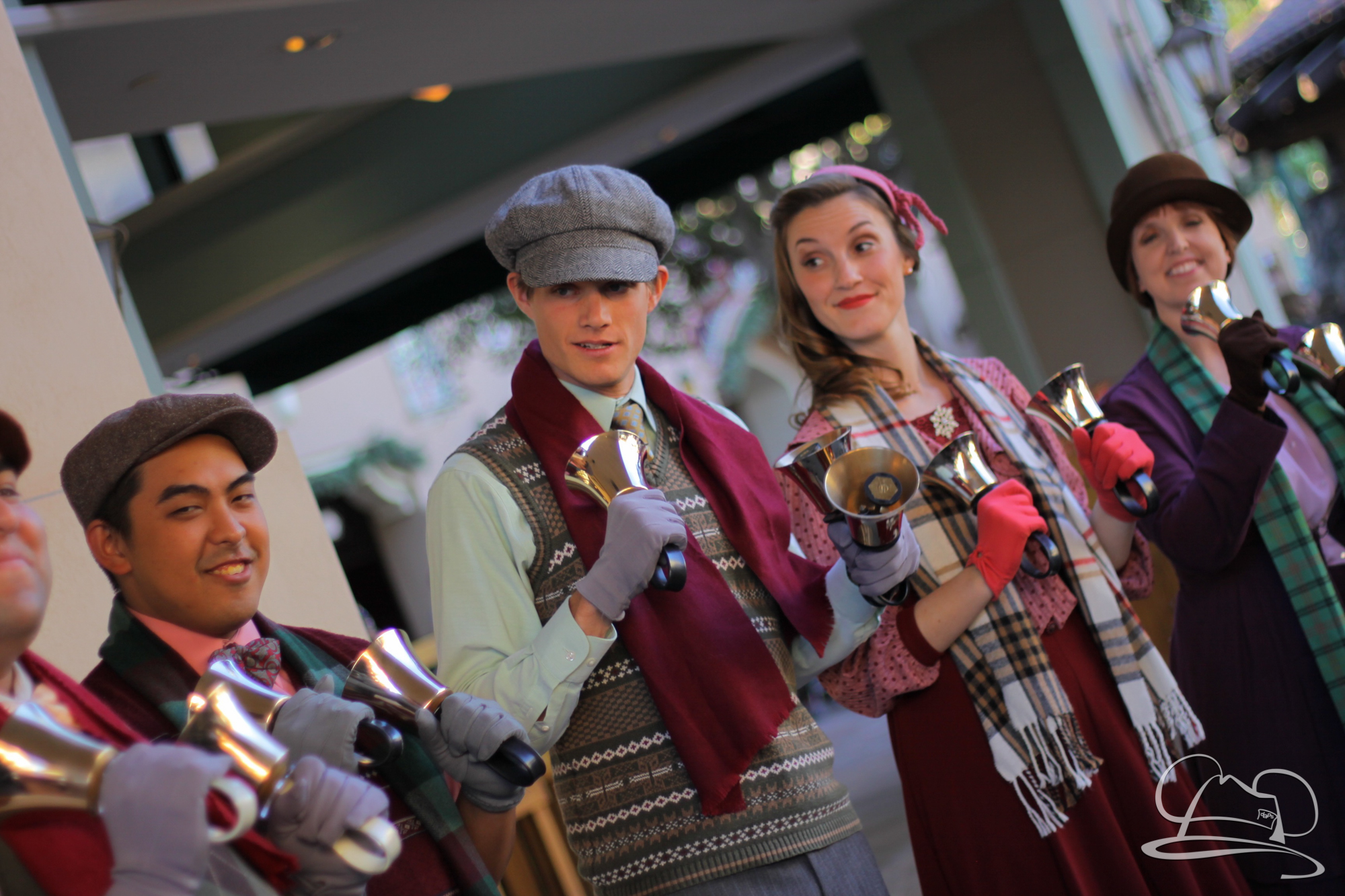 One fun part of Holiday Time at the Disneyland Resort is the Buena Vista Street Community Bell Ringers. This ensemble sings and rings handbells on Buena Vista Street throughout the Christmas season and really is a lot of fun to watch. They are residents of Buena Vista Street who come together to share the musical magic of the season. Here are some photos from the Buena Vista Street Community Bell Ringers along with some other photos from a day at the Disneyland Resort. This also includes some festive photos and also Season of the Force in Tomorrowland. What is your favorite part of Holidays at the Disneyland Resort?