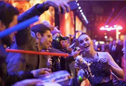 As mentioned the other day, cast and crew left the states in an ANA jet themed as R2-D2. On Wednesday, fans eagerly awaited their arrival at the red carpet event.
