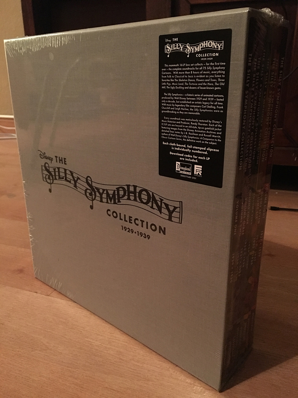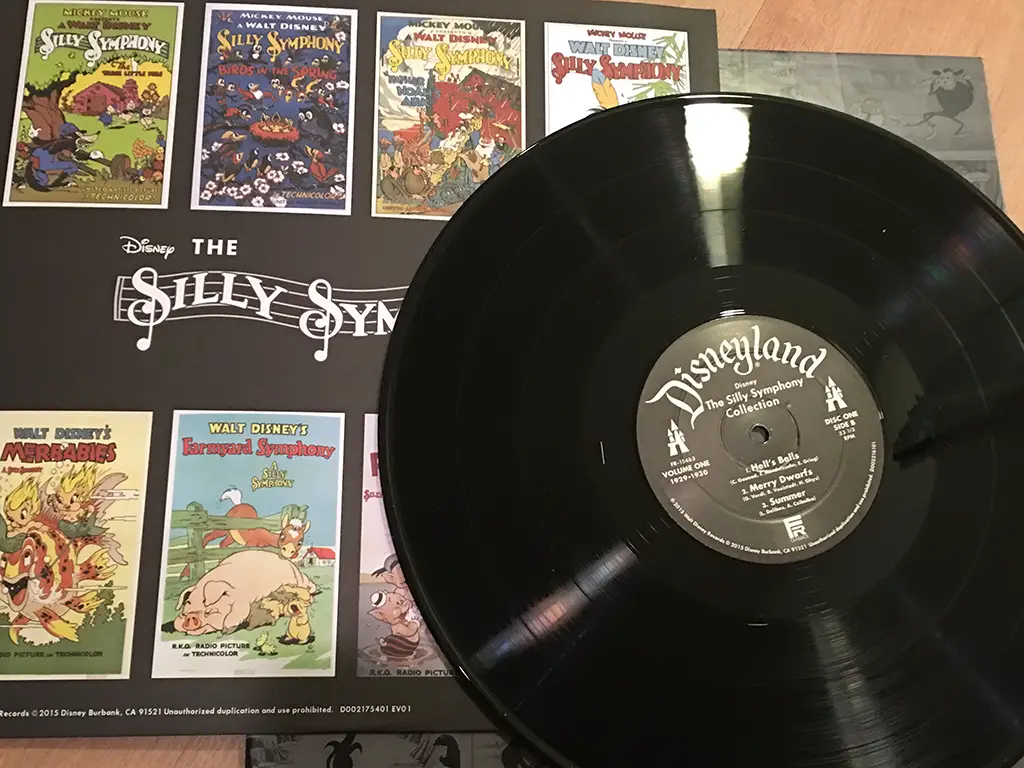 At the D23 Expo, I had a chance to be one of the first to purchase an historic collection of musical tracks: The Silly Symphony Collection. This eight LP showcase features every single soundtrack of the great series Walt produced. Enclosed in a grey, canvas slipcase with individual album sleeves, this is an exquisite album. Also enclosed are specific download codes for the digital album of each.