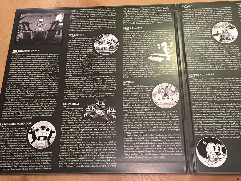 The sleeves and album covers that each record has is a symphony of art. Pictures from the shorts as well as descriptions of them are in the covers. On the sleeves are posters of the more notable cartoon shorts, like Flowers and Trees.