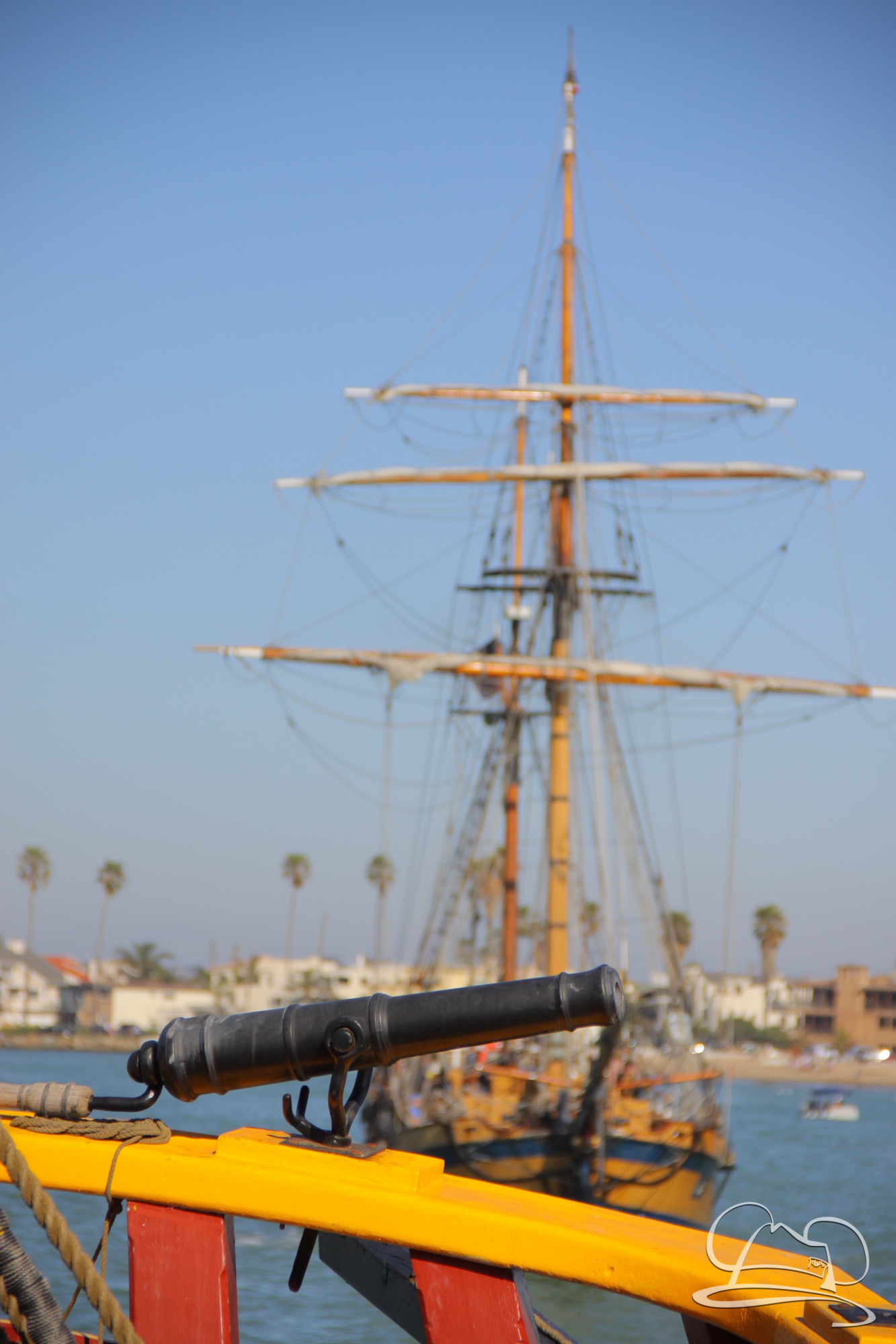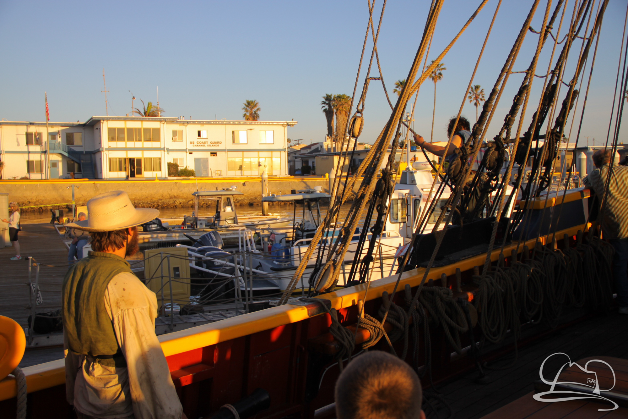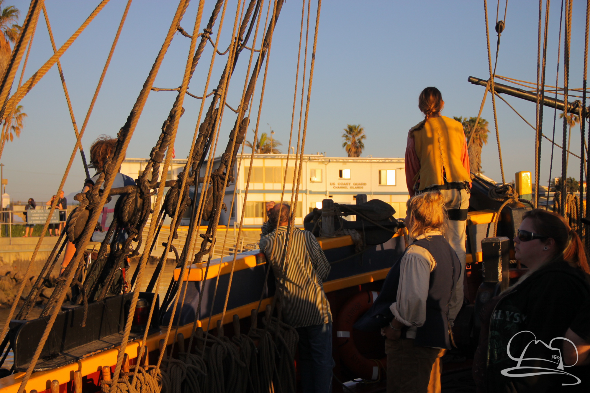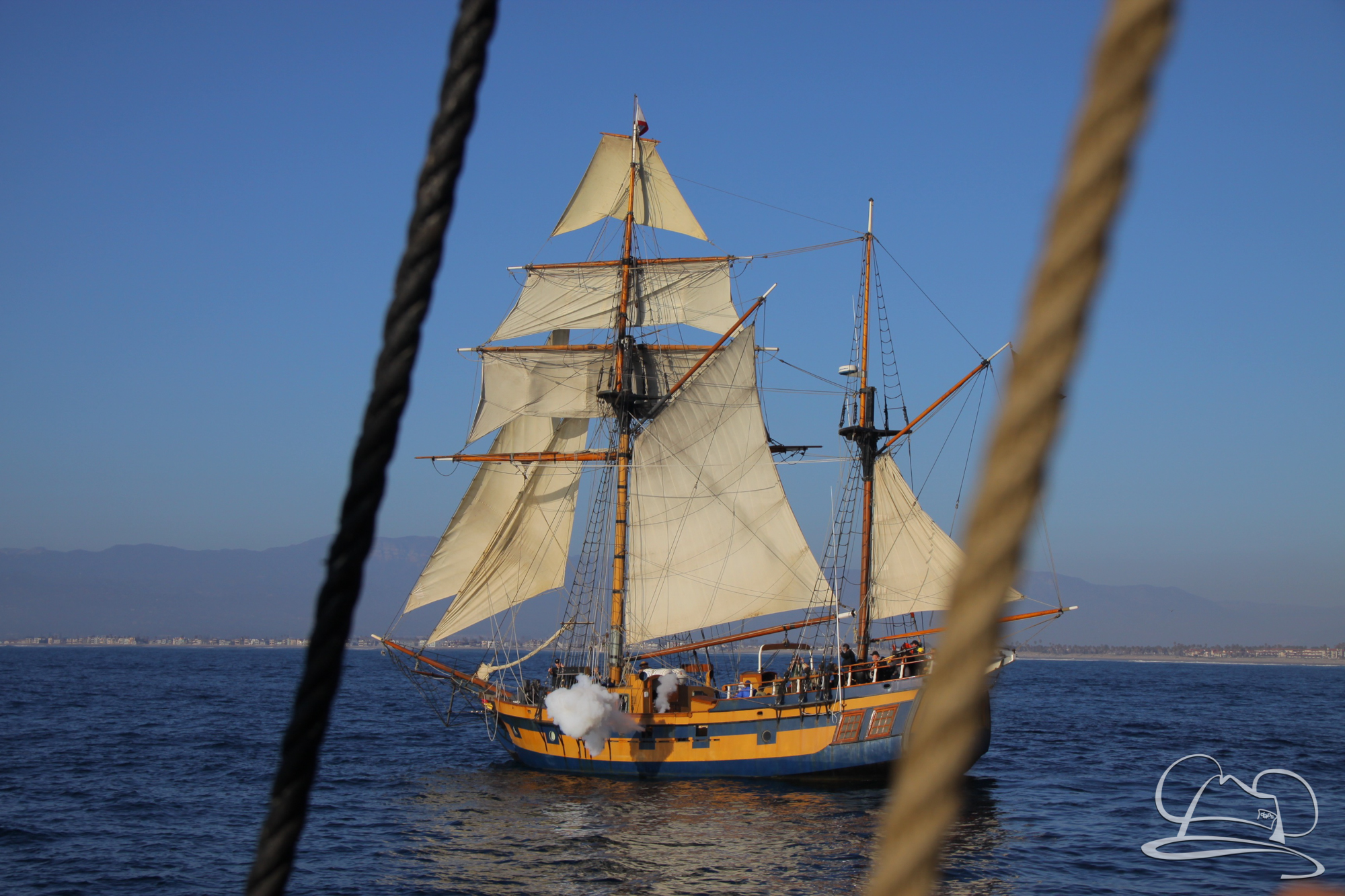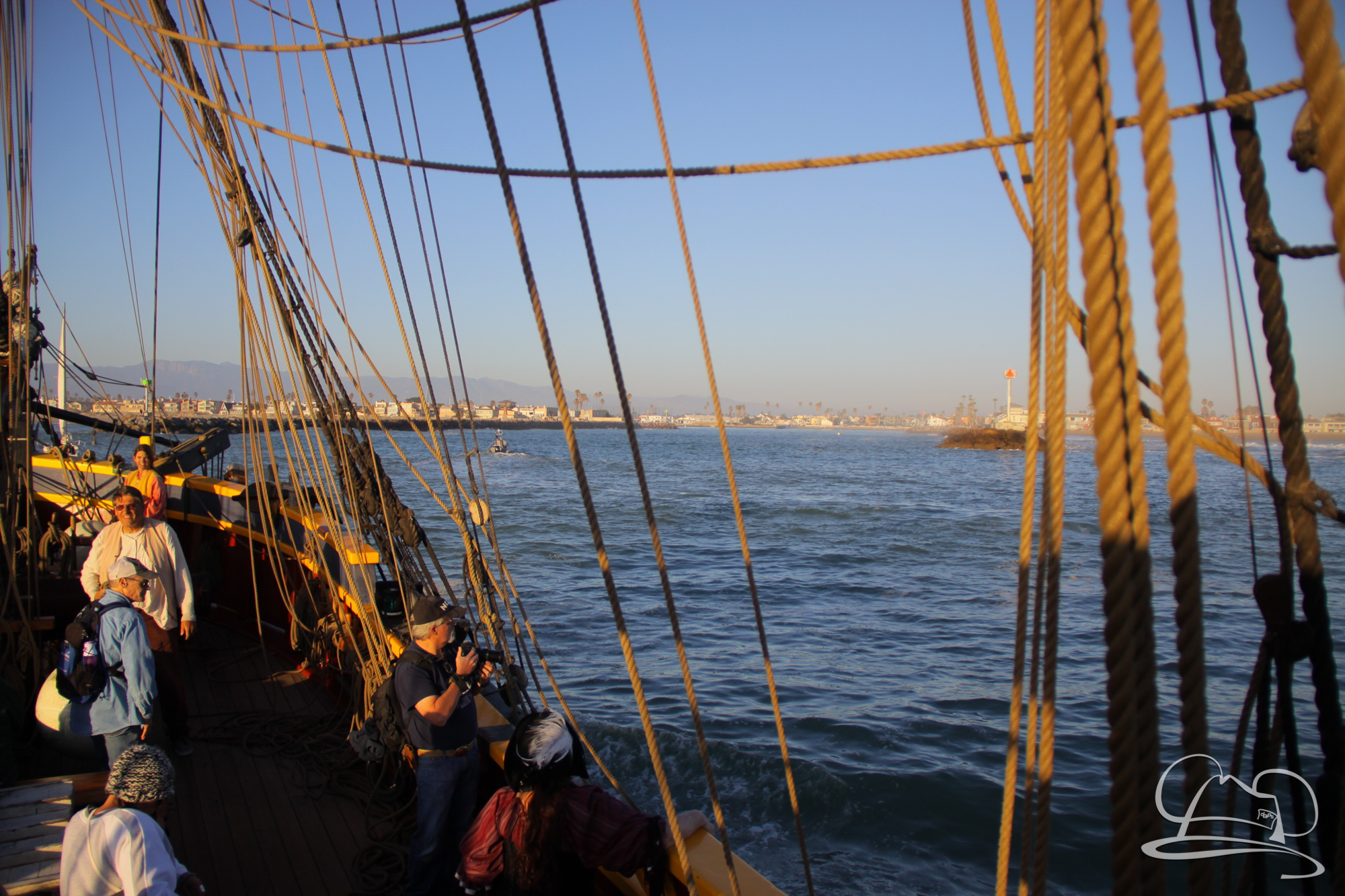 Last Saturday I had the opportunity to experience one of its three hour tours sailing aboard the Lady Washington and experience a simulated battle with the Hawaiian Chieftain. The cruise began in the Channel Islands Harbor in Oxnard, California. We set sail with the Hawaiian Chieftain at 2:00 pm and made our way out into the beautiful Pacific Ocean over some pretty awesome swells. Leaving the harbor the Lady Washington utilized her engines as she made her way out into the sea.