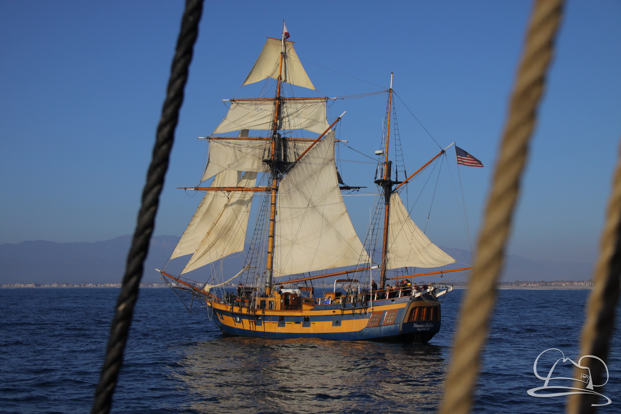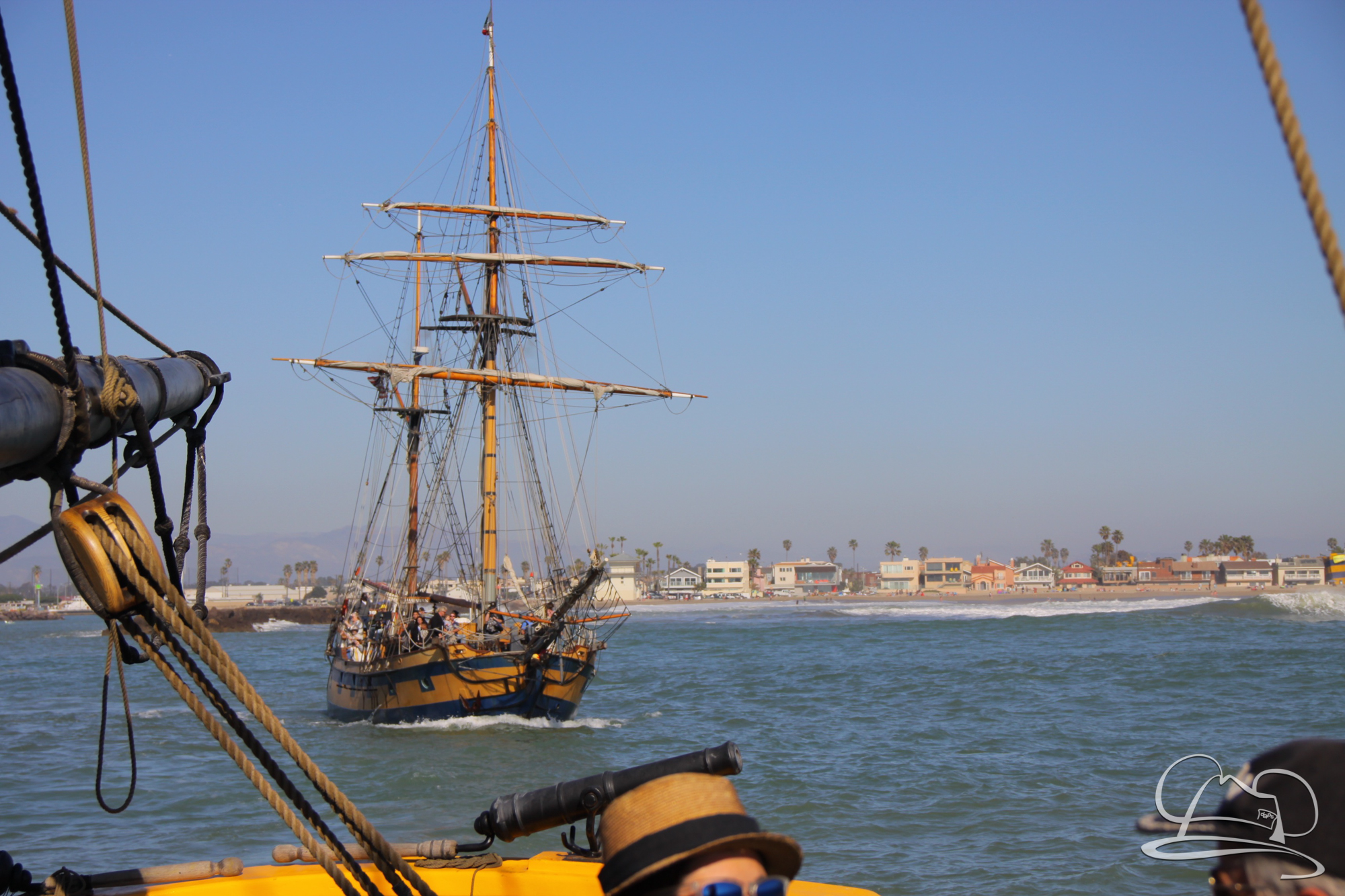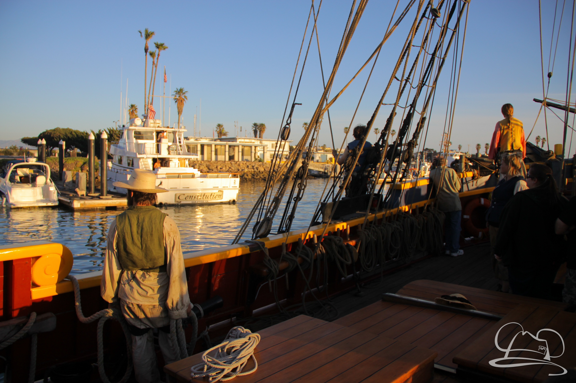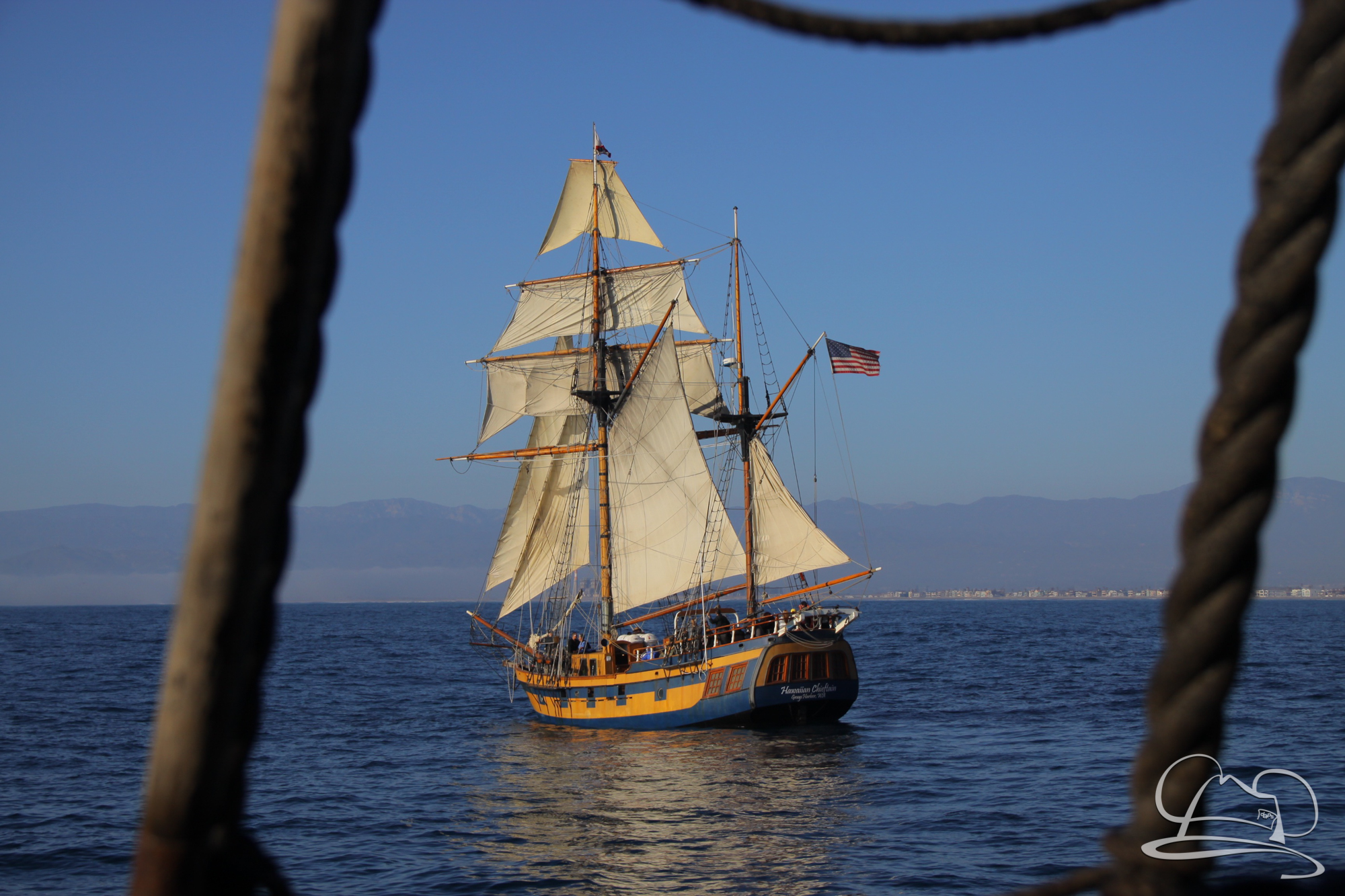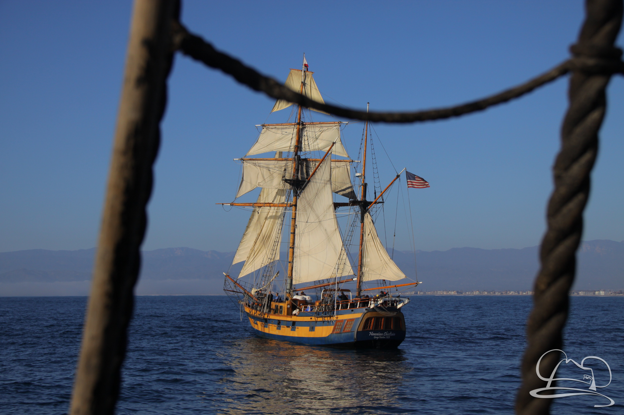 Last Saturday I had the opportunity to experience one of its three hour tours sailing aboard the Lady Washington and experience a simulated battle with the Hawaiian Chieftain. The cruise began in the Channel Islands Harbor in Oxnard, California. We set sail with the Hawaiian Chieftain at 2:00 pm and made our way out into the beautiful Pacific Ocean over some pretty awesome swells. Leaving the harbor the Lady Washington utilized her engines as she made her way out into the sea.