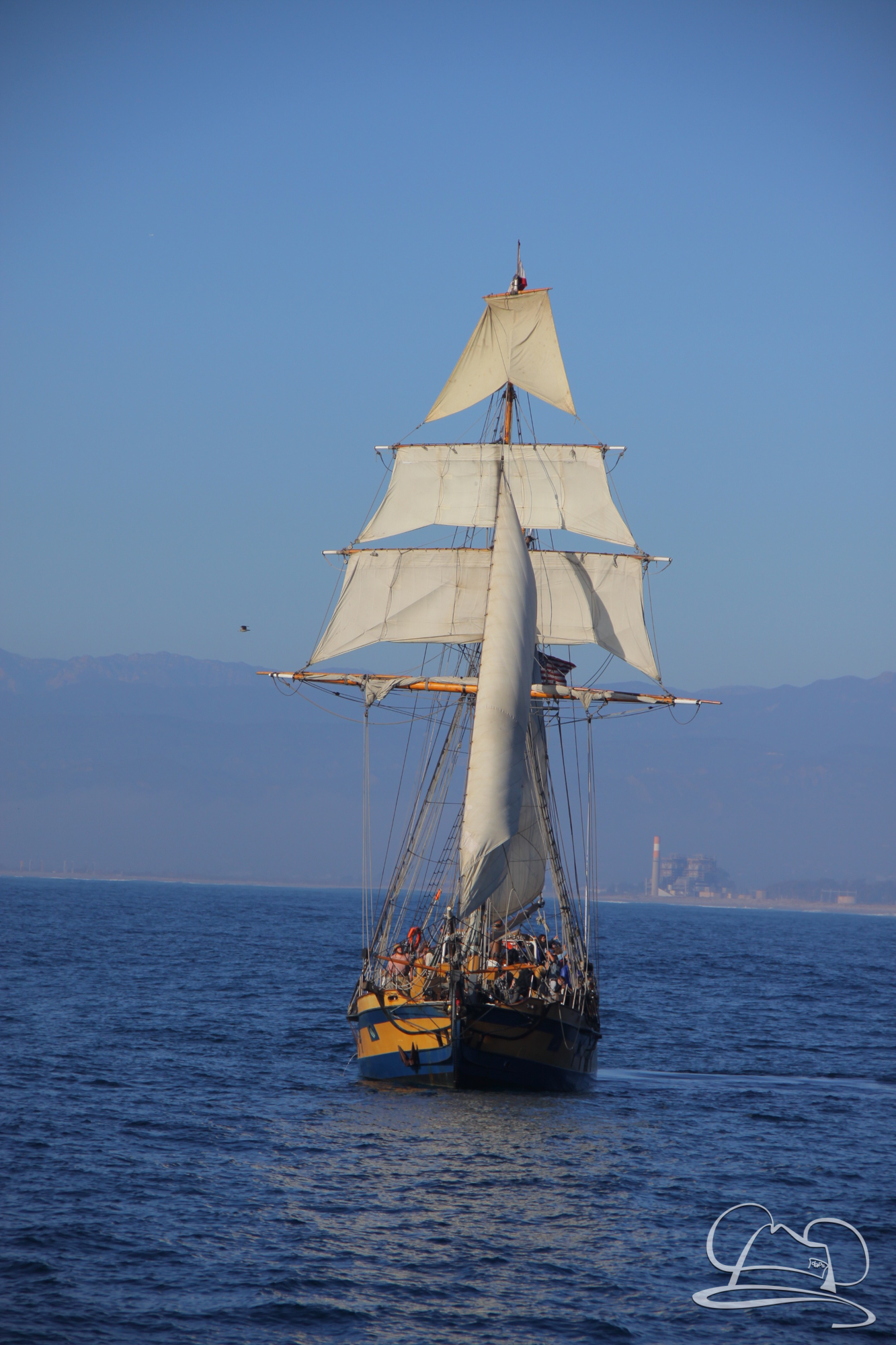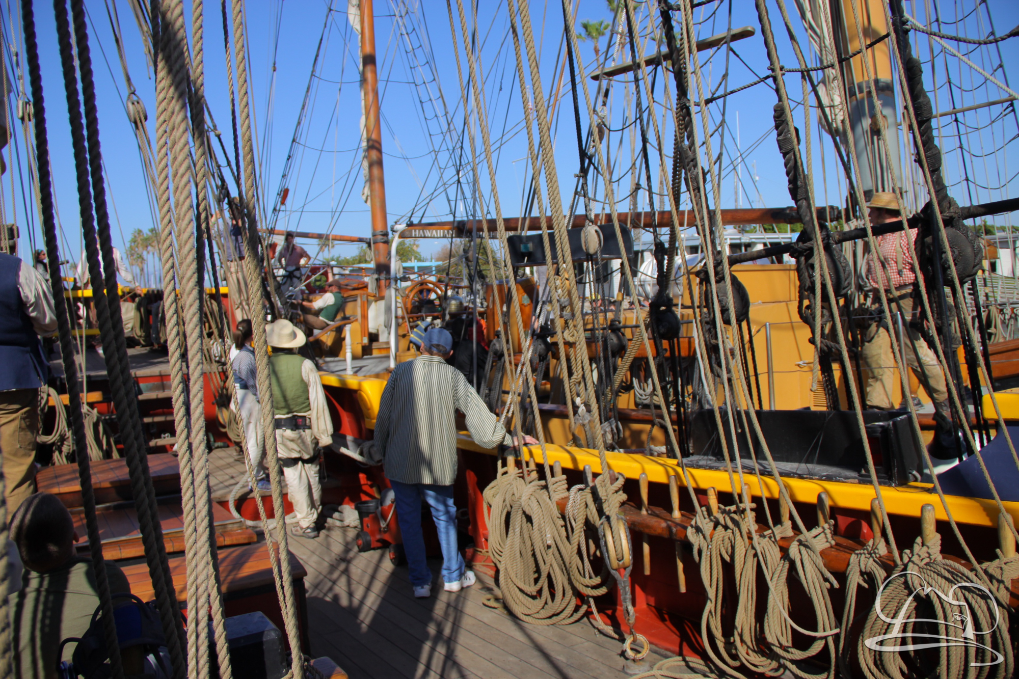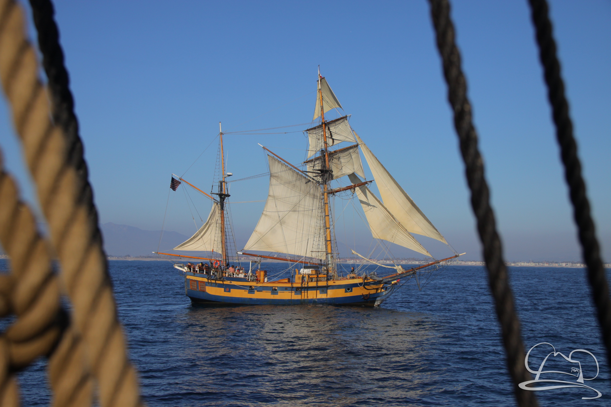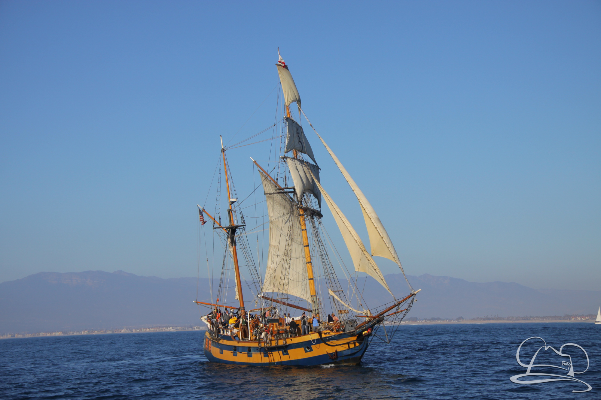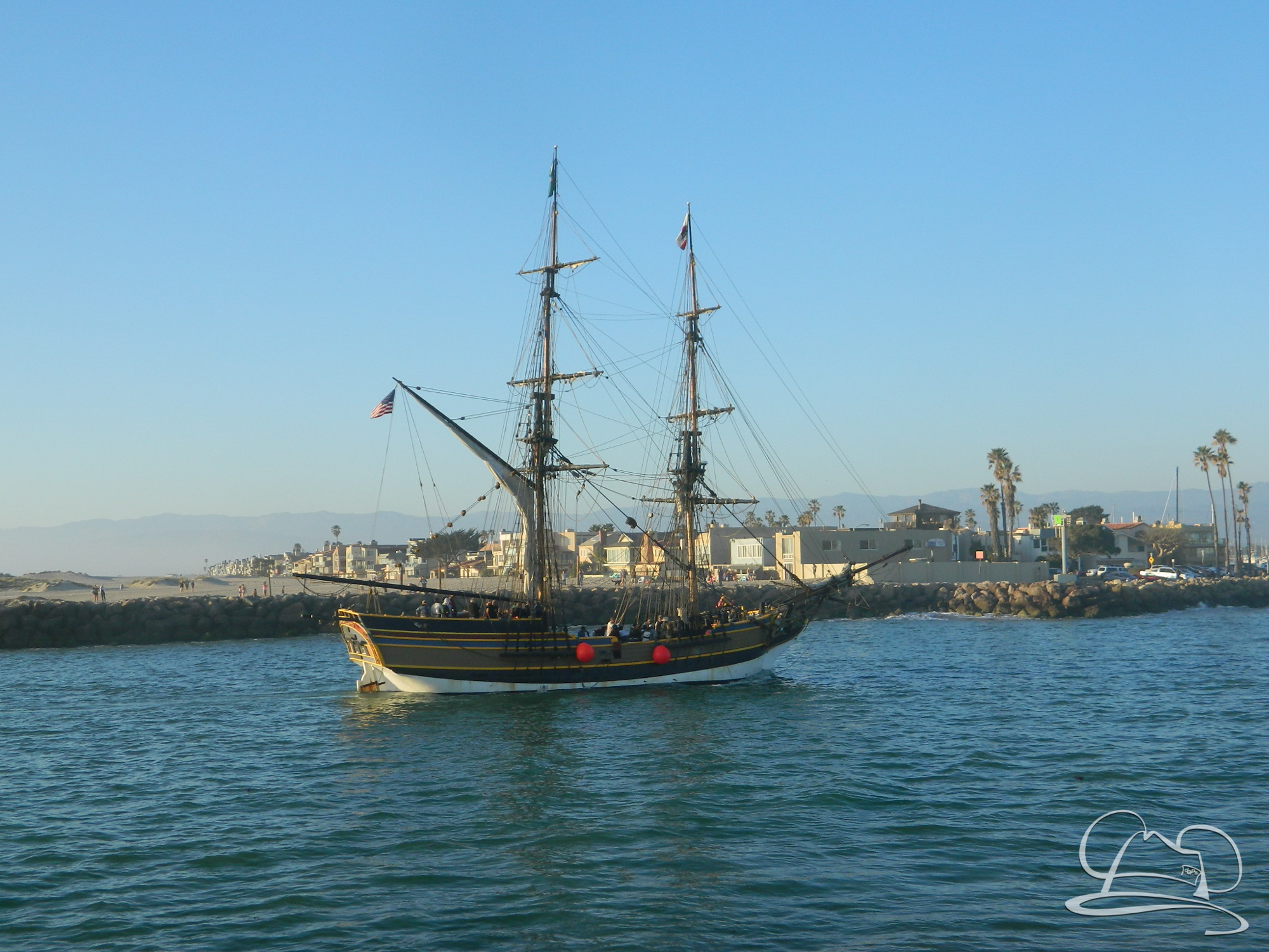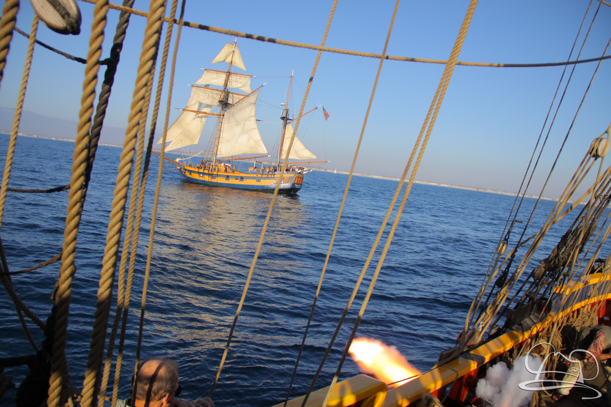 Last Saturday I had the opportunity to experience one of its three hour tours sailing aboard the Lady Washington and experience a simulated battle with the Hawaiian Chieftain. The cruise began in the Channel Islands Harbor in Oxnard, California. We set sail with the Hawaiian Chieftain at 2:00 pm and made our way out into the beautiful Pacific Ocean over some pretty awesome swells. Leaving the harbor the Lady Washington utilized her engines as she made her way out into the sea.
