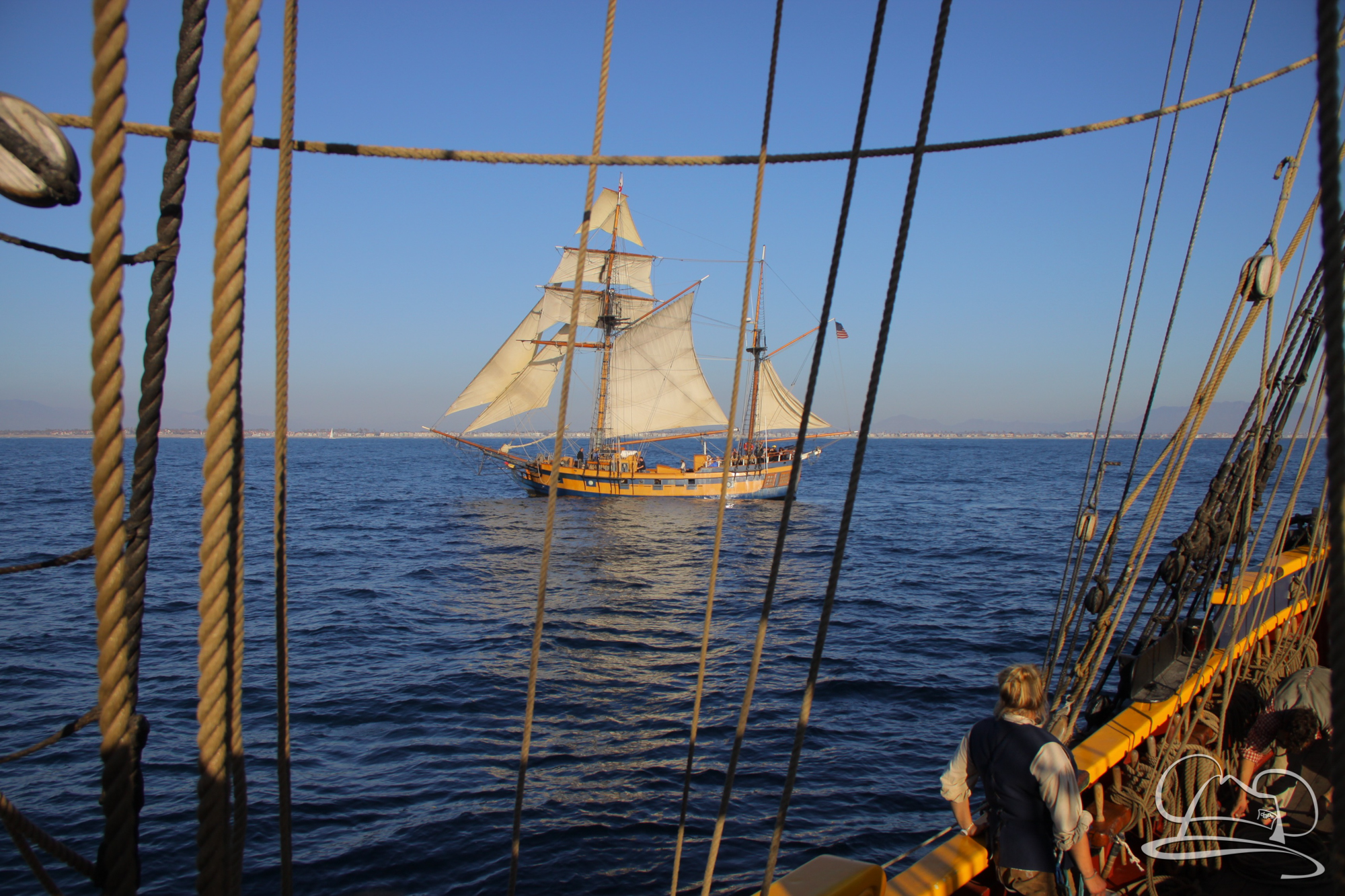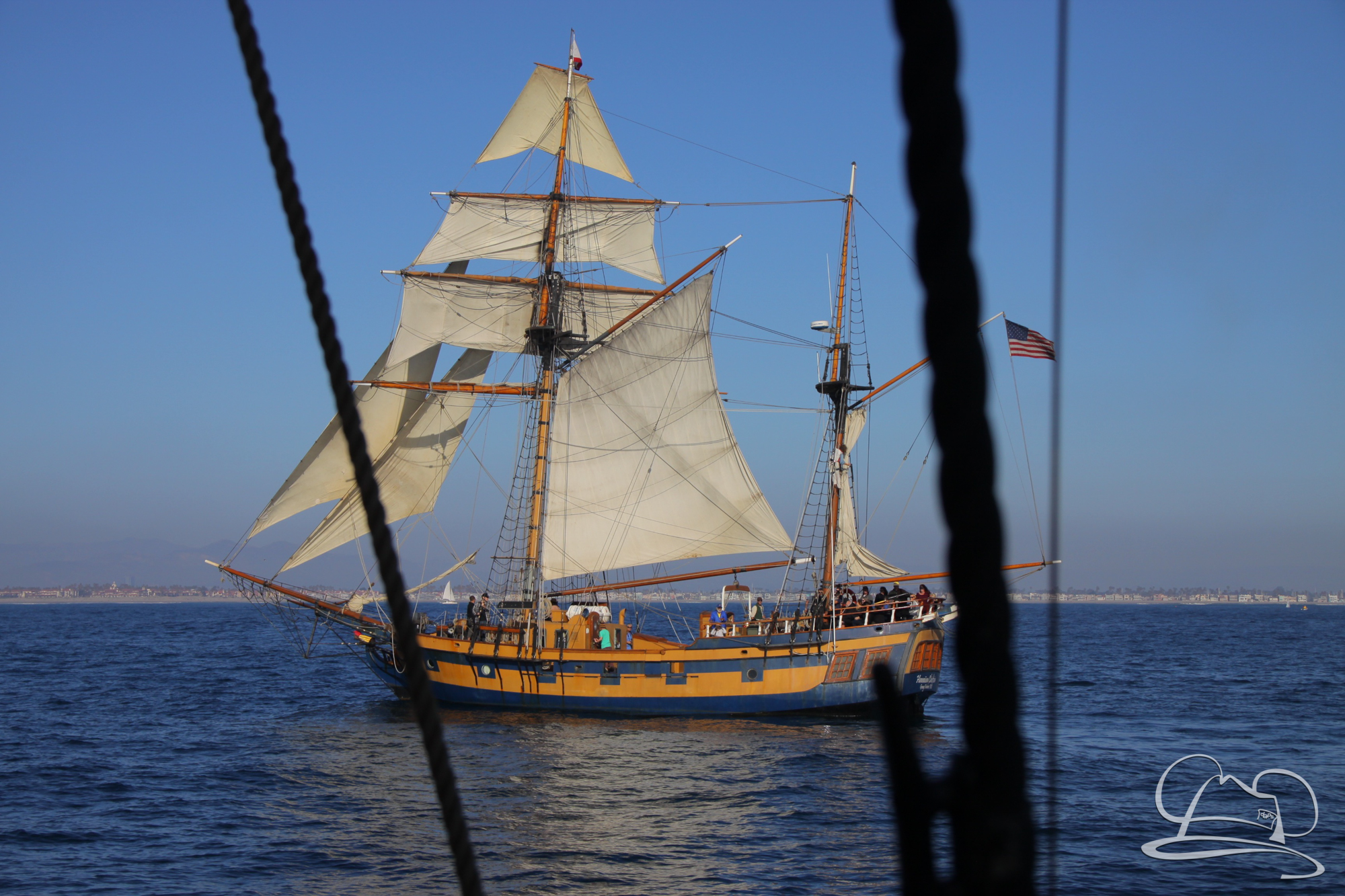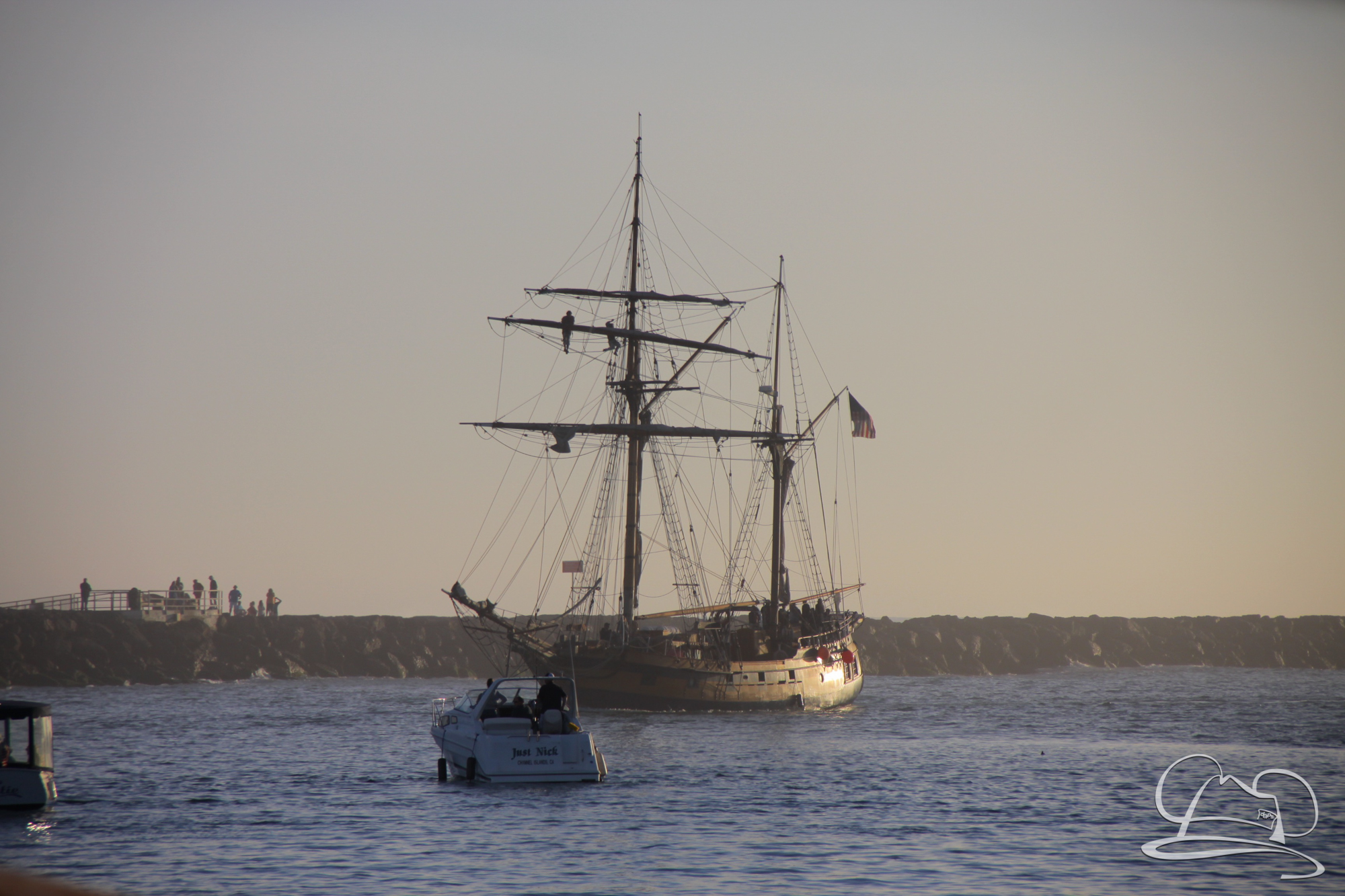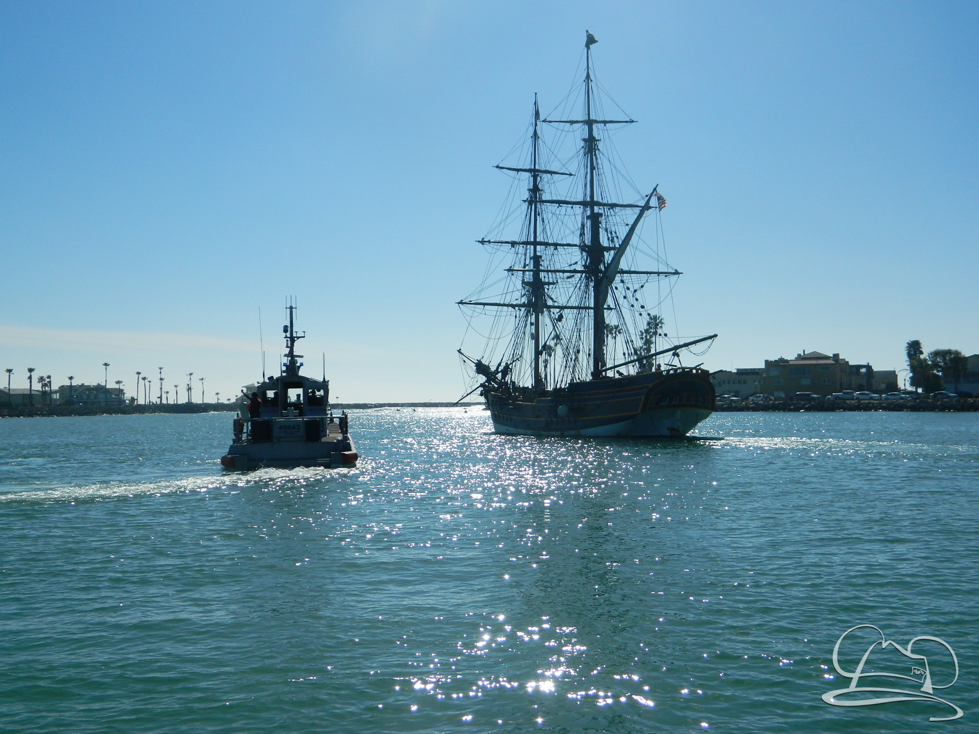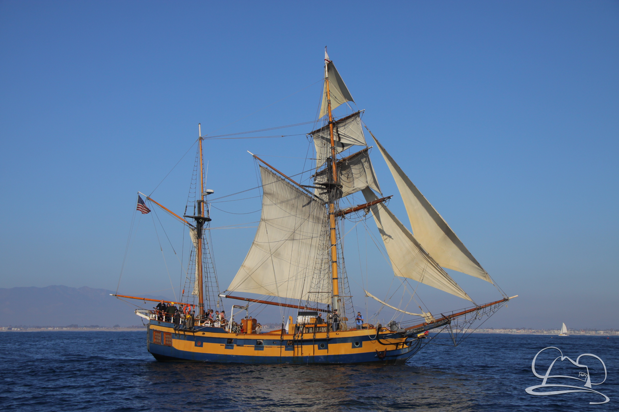 Last Saturday I had the opportunity to experience one of its three hour tours sailing aboard the Lady Washington and experience a simulated battle with the Hawaiian Chieftain. The cruise began in the Channel Islands Harbor in Oxnard, California. We set sail with the Hawaiian Chieftain at 2:00 pm and made our way out into the beautiful Pacific Ocean over some pretty awesome swells. Leaving the harbor the Lady Washington utilized her engines as she made her way out into the sea.