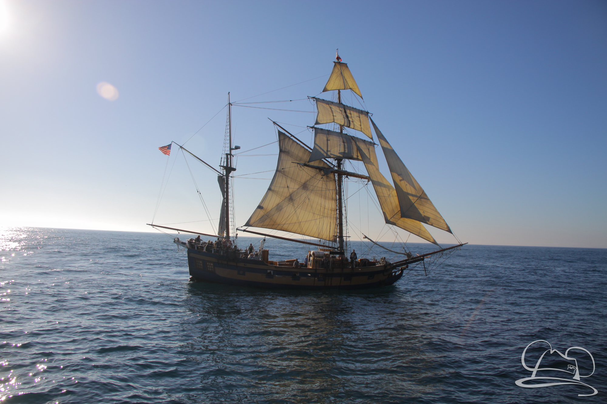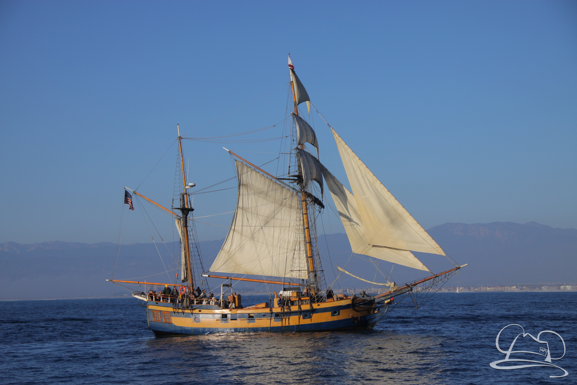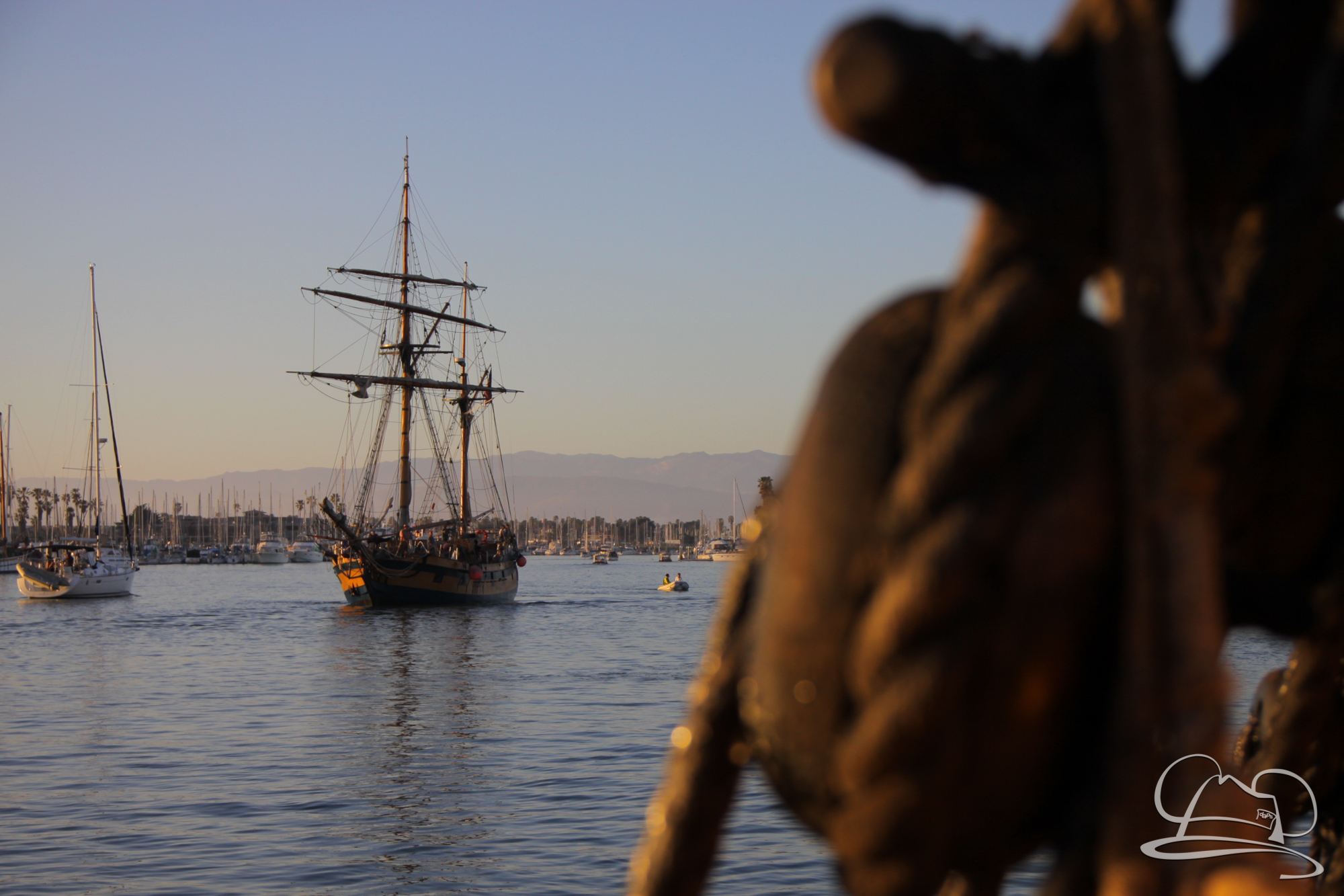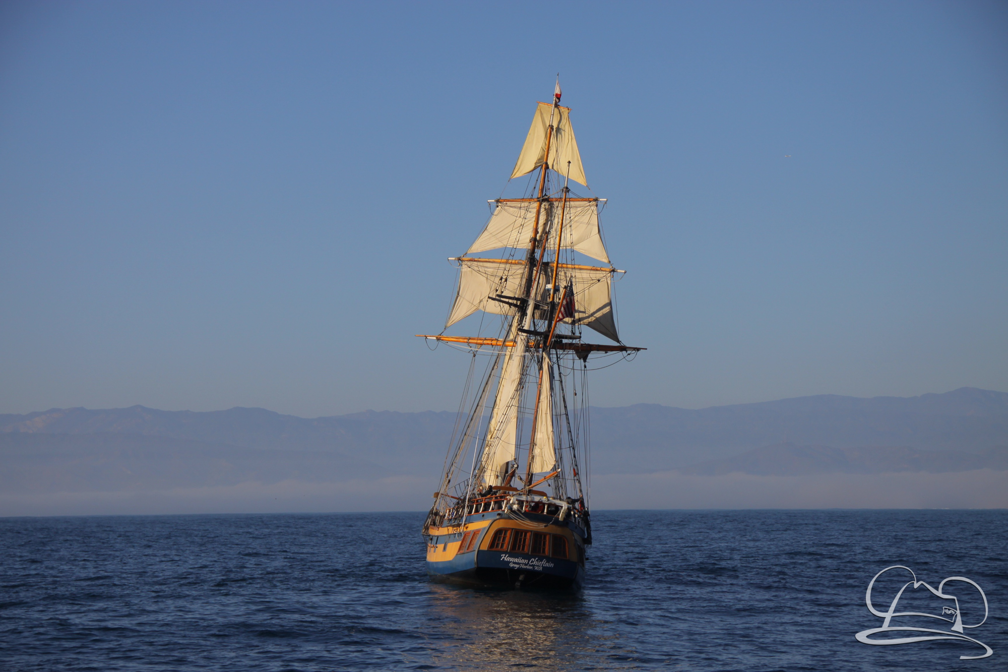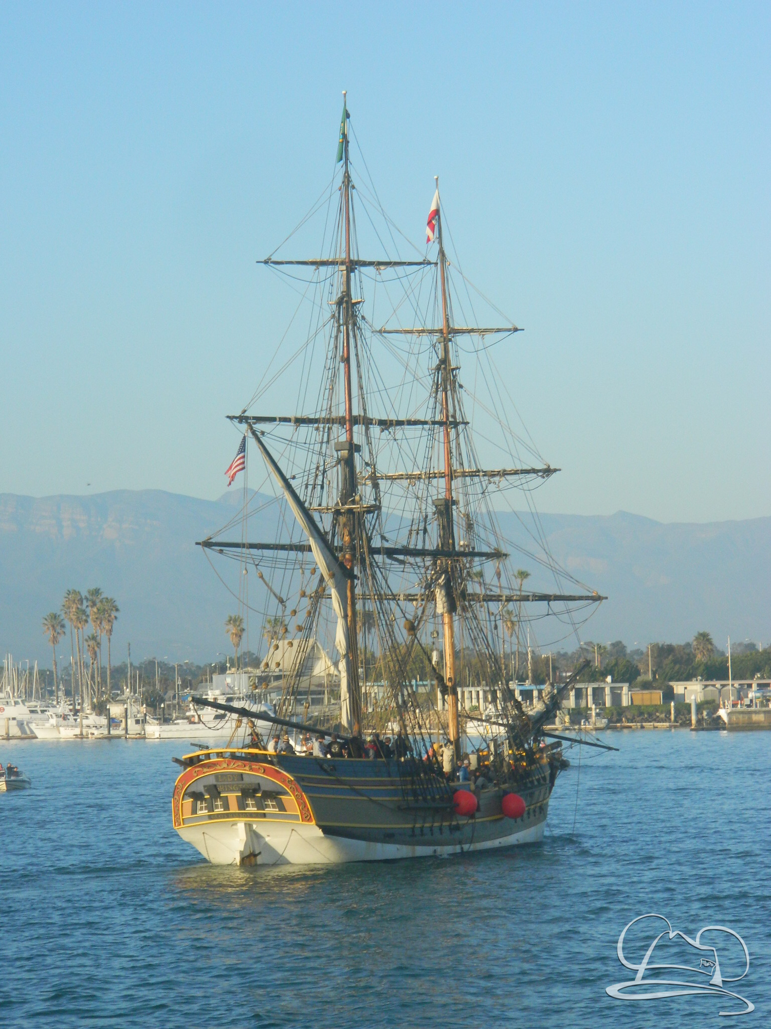 Last Saturday I had the opportunity to experience one of its three hour tours sailing aboard the Lady Washington and experience a simulated battle with the Hawaiian Chieftain. The cruise began in the Channel Islands Harbor in Oxnard, California. We set sail with the Hawaiian Chieftain at 2:00 pm and made our way out into the beautiful Pacific Ocean over some pretty awesome swells. Leaving the harbor the Lady Washington utilized her engines as she made her way out into the sea.