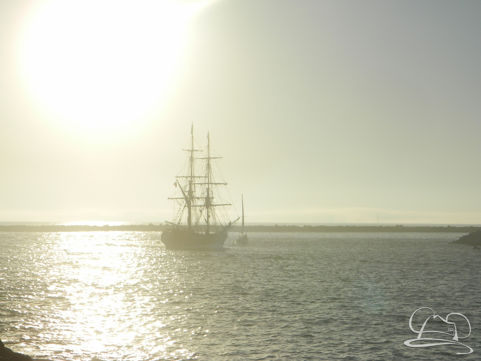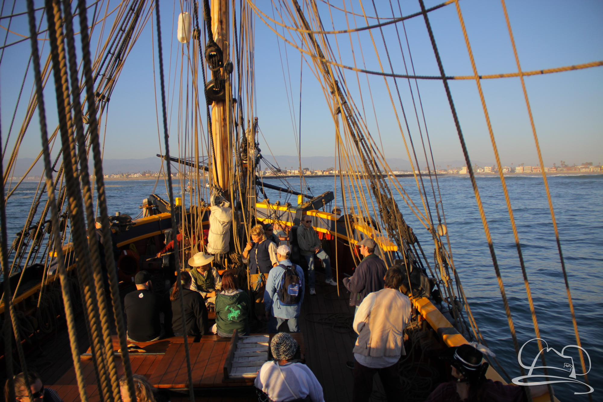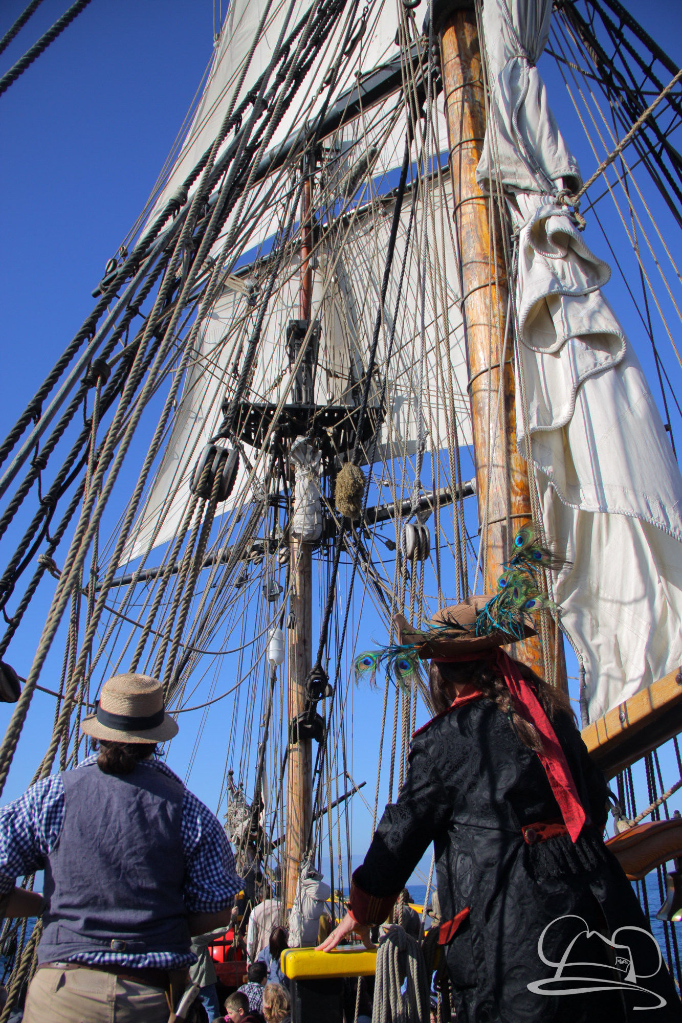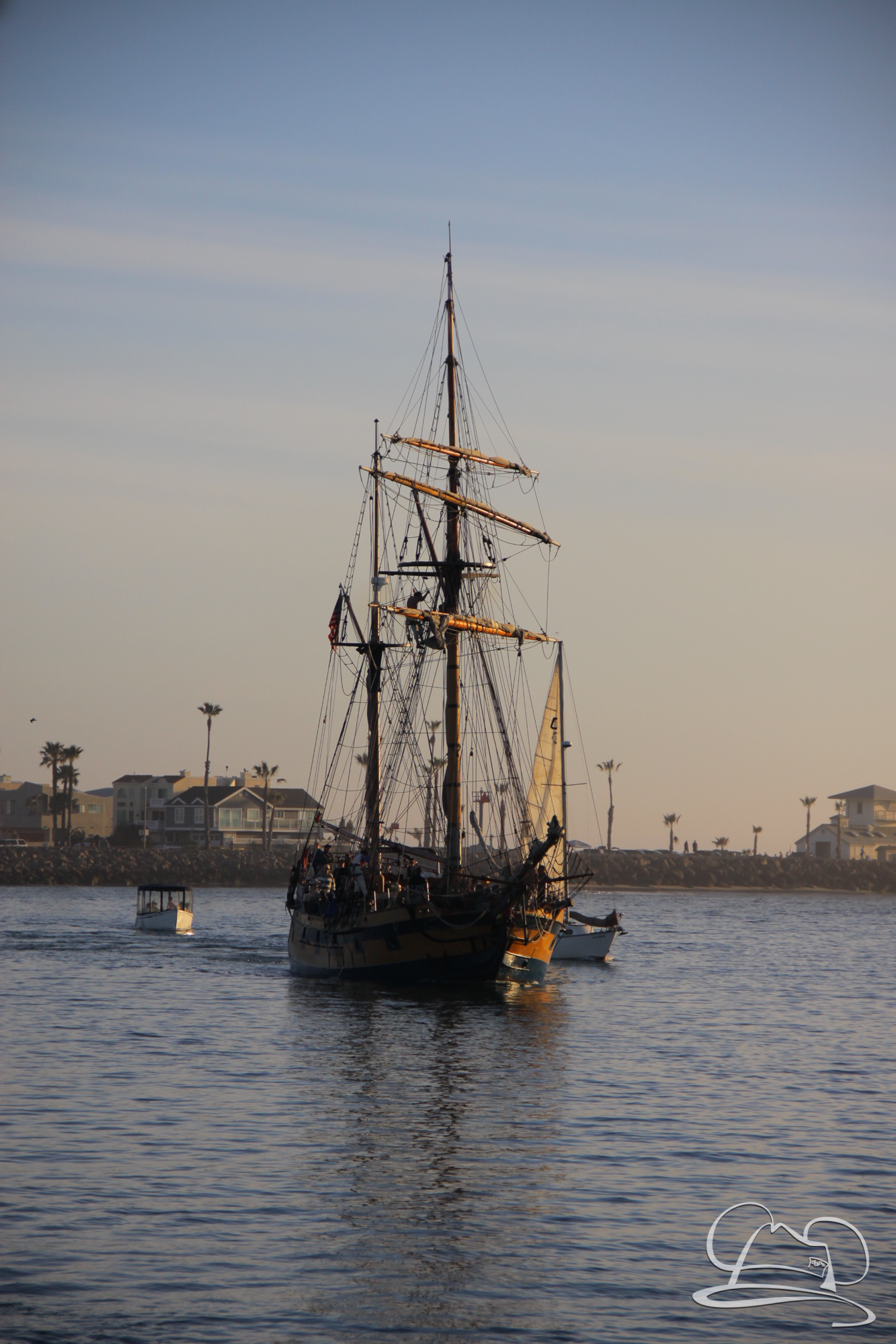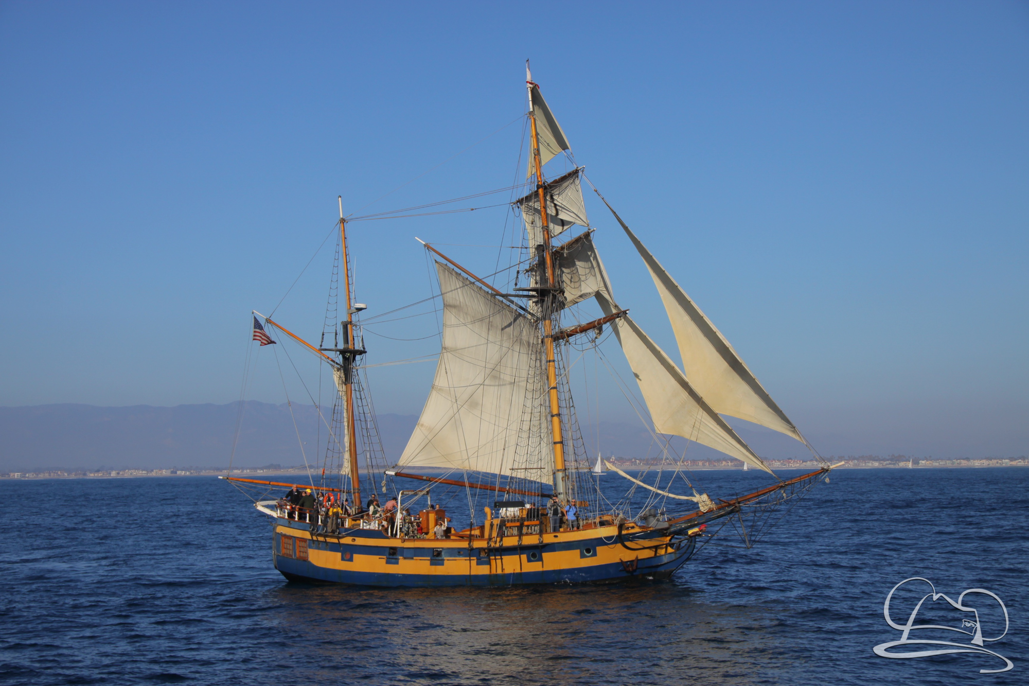 Last Saturday I had the opportunity to experience one of its three hour tours sailing aboard the Lady Washington and experience a simulated battle with the Hawaiian Chieftain. The cruise began in the Channel Islands Harbor in Oxnard, California. We set sail with the Hawaiian Chieftain at 2:00 pm and made our way out into the beautiful Pacific Ocean over some pretty awesome swells. Leaving the harbor the Lady Washington utilized her engines as she made her way out into the sea.