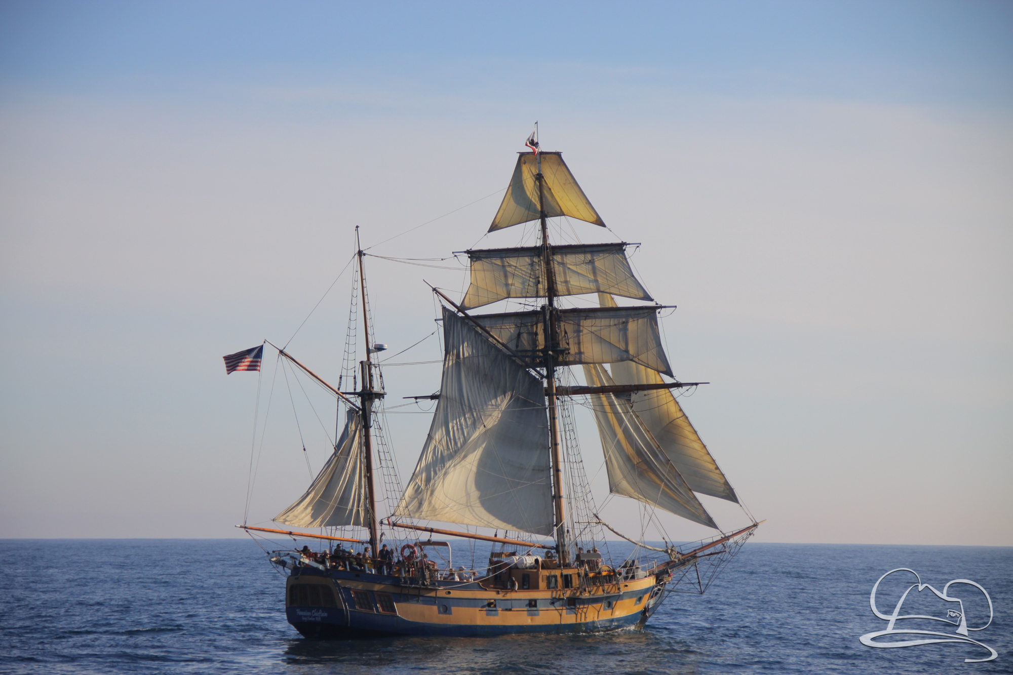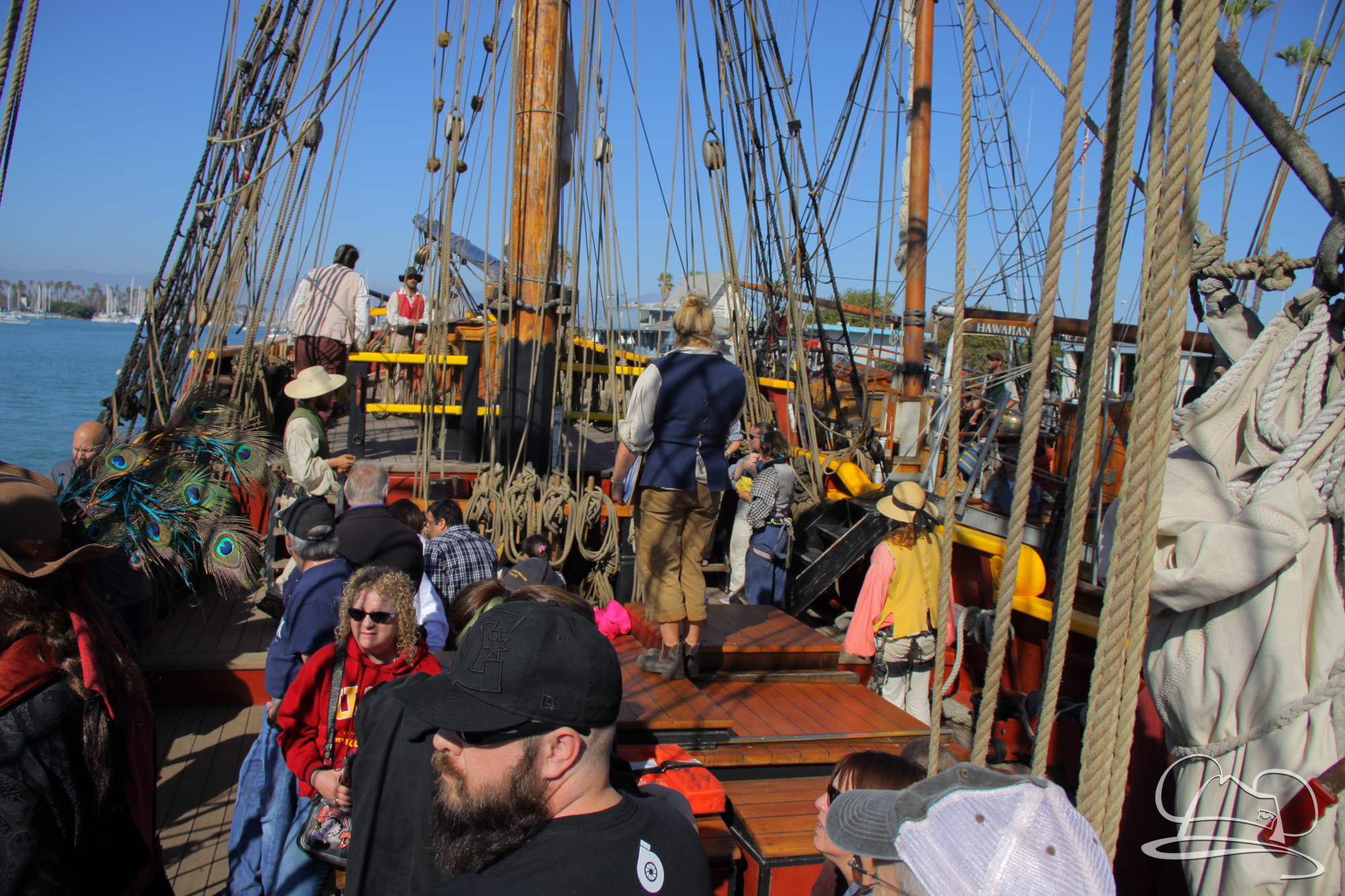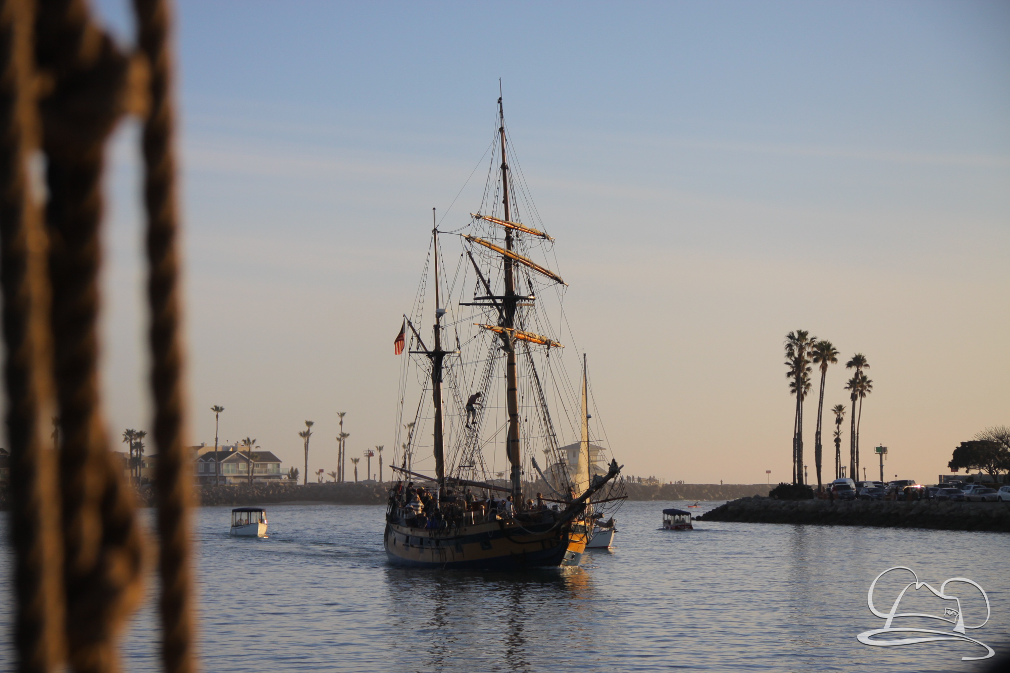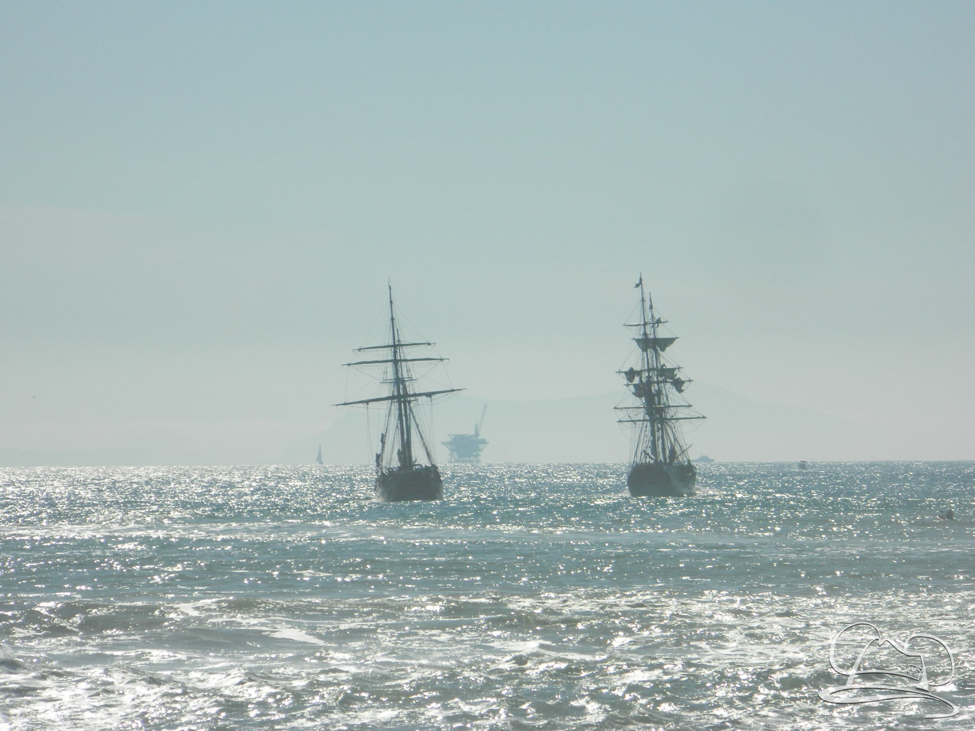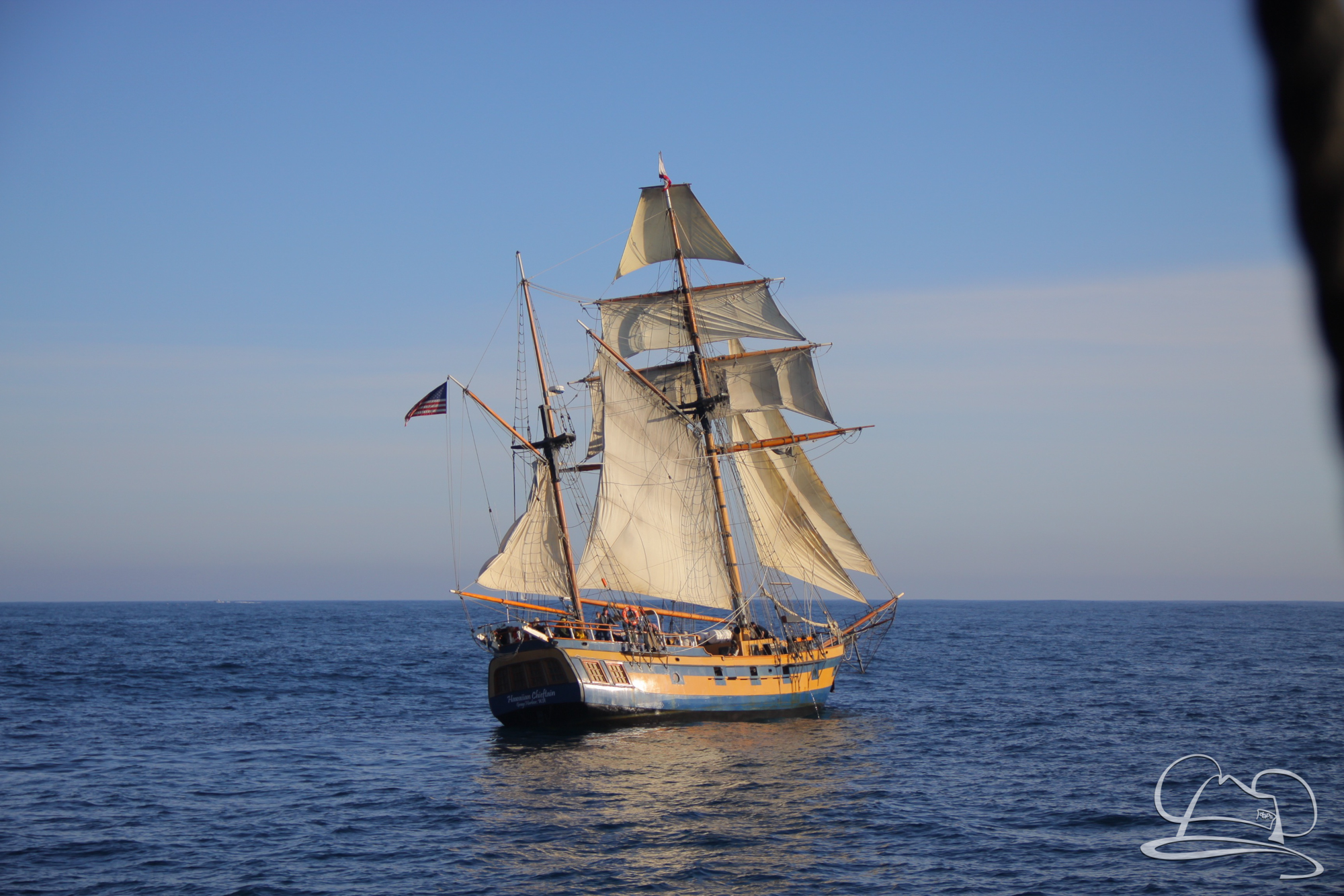 Last Saturday I had the opportunity to experience one of its three hour tours sailing aboard the Lady Washington and experience a simulated battle with the Hawaiian Chieftain. The cruise began in the Channel Islands Harbor in Oxnard, California. We set sail with the Hawaiian Chieftain at 2:00 pm and made our way out into the beautiful Pacific Ocean over some pretty awesome swells. Leaving the harbor the Lady Washington utilized her engines as she made her way out into the sea.
