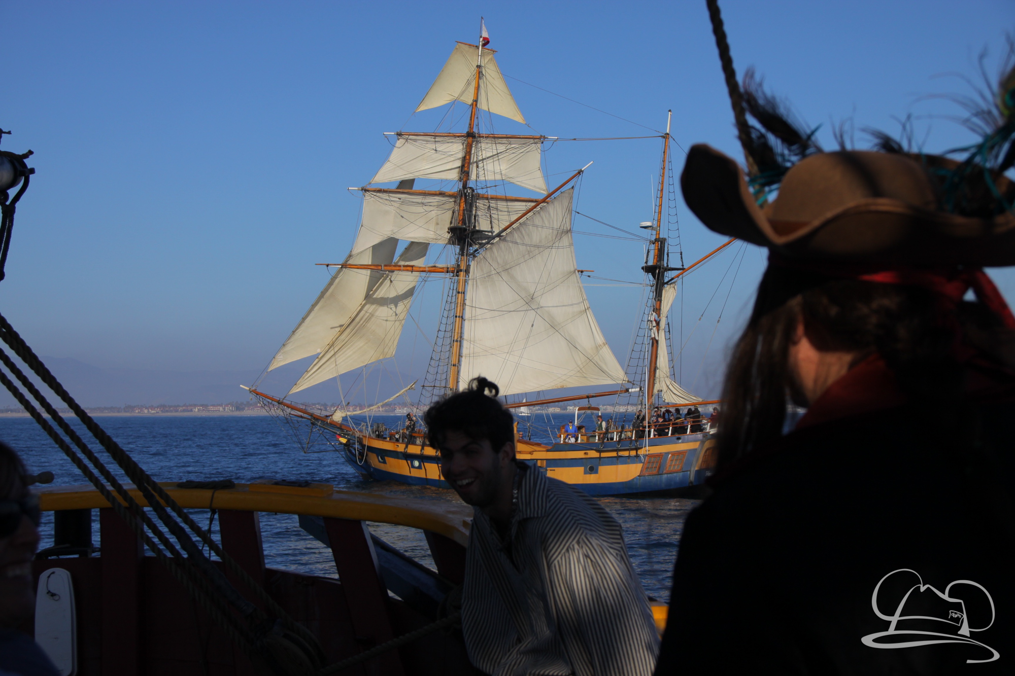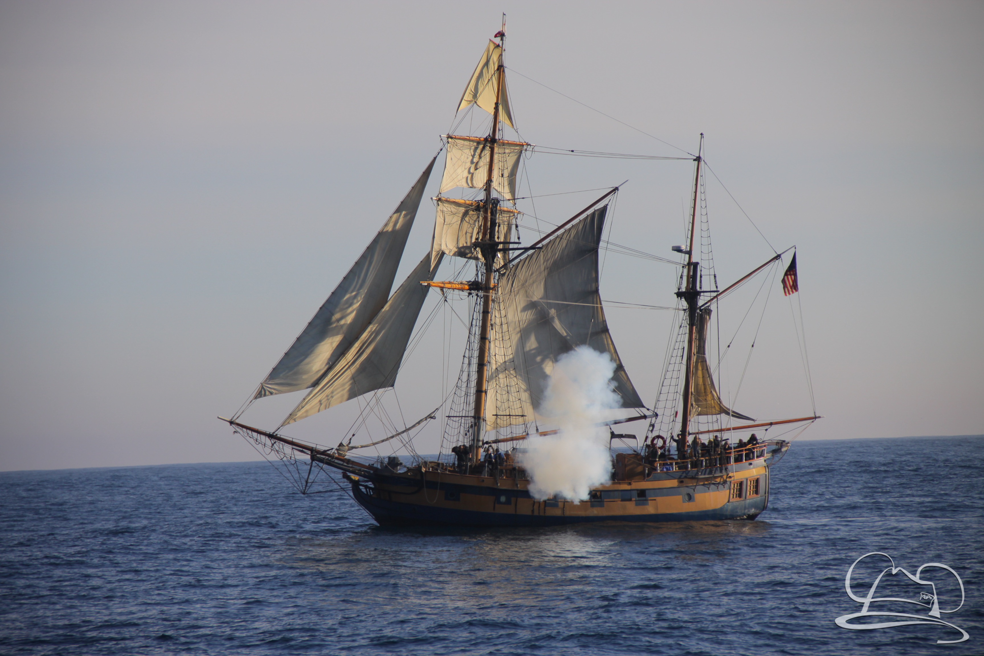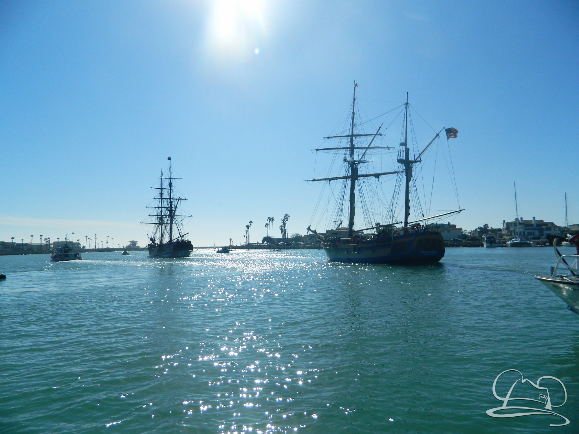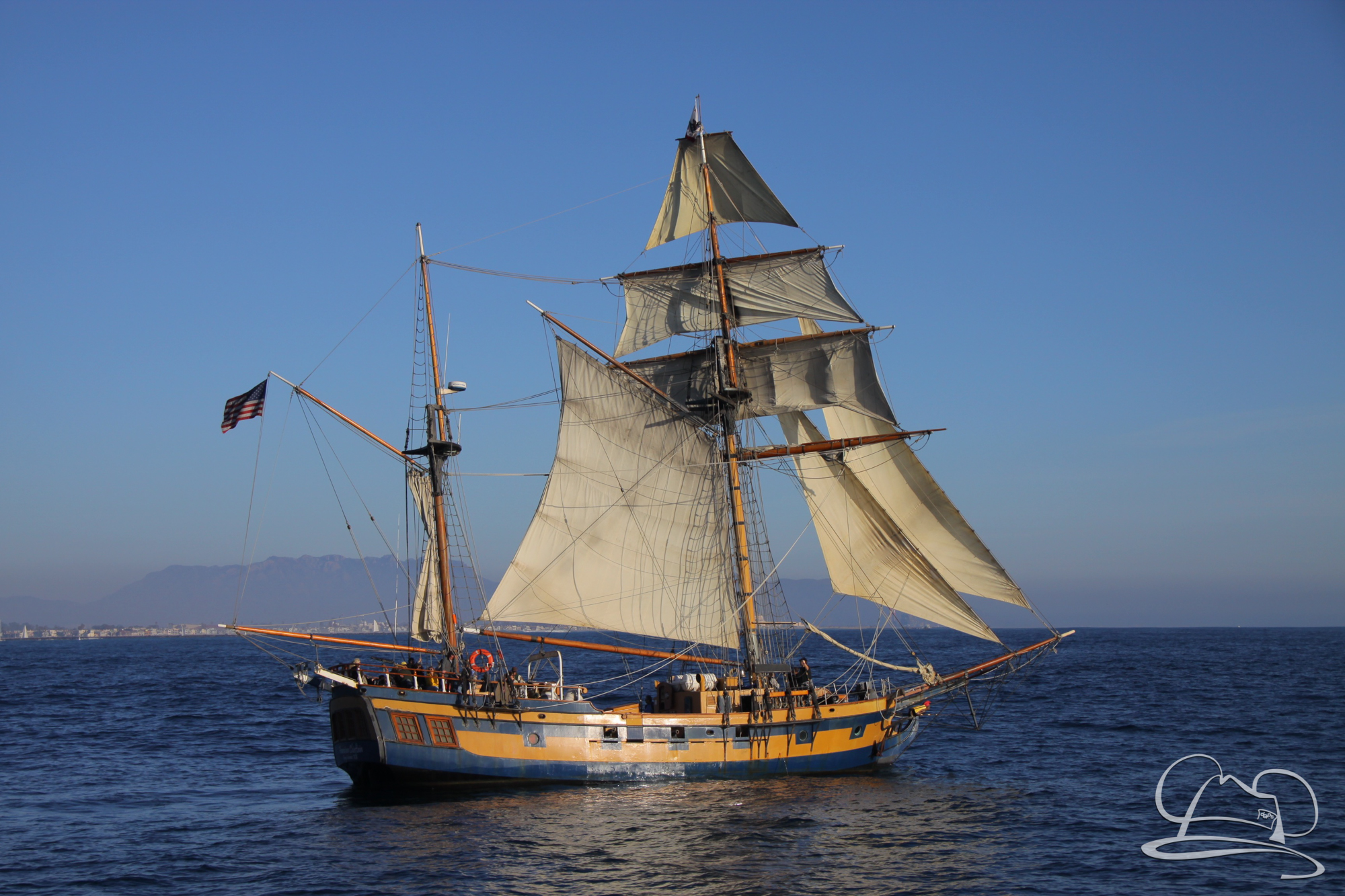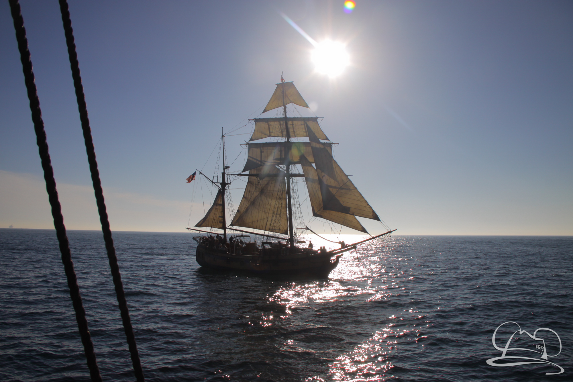 Last Saturday I had the opportunity to experience one of its three hour tours sailing aboard the Lady Washington and experience a simulated battle with the Hawaiian Chieftain. The cruise began in the Channel Islands Harbor in Oxnard, California. We set sail with the Hawaiian Chieftain at 2:00 pm and made our way out into the beautiful Pacific Ocean over some pretty awesome swells. Leaving the harbor the Lady Washington utilized her engines as she made her way out into the sea.