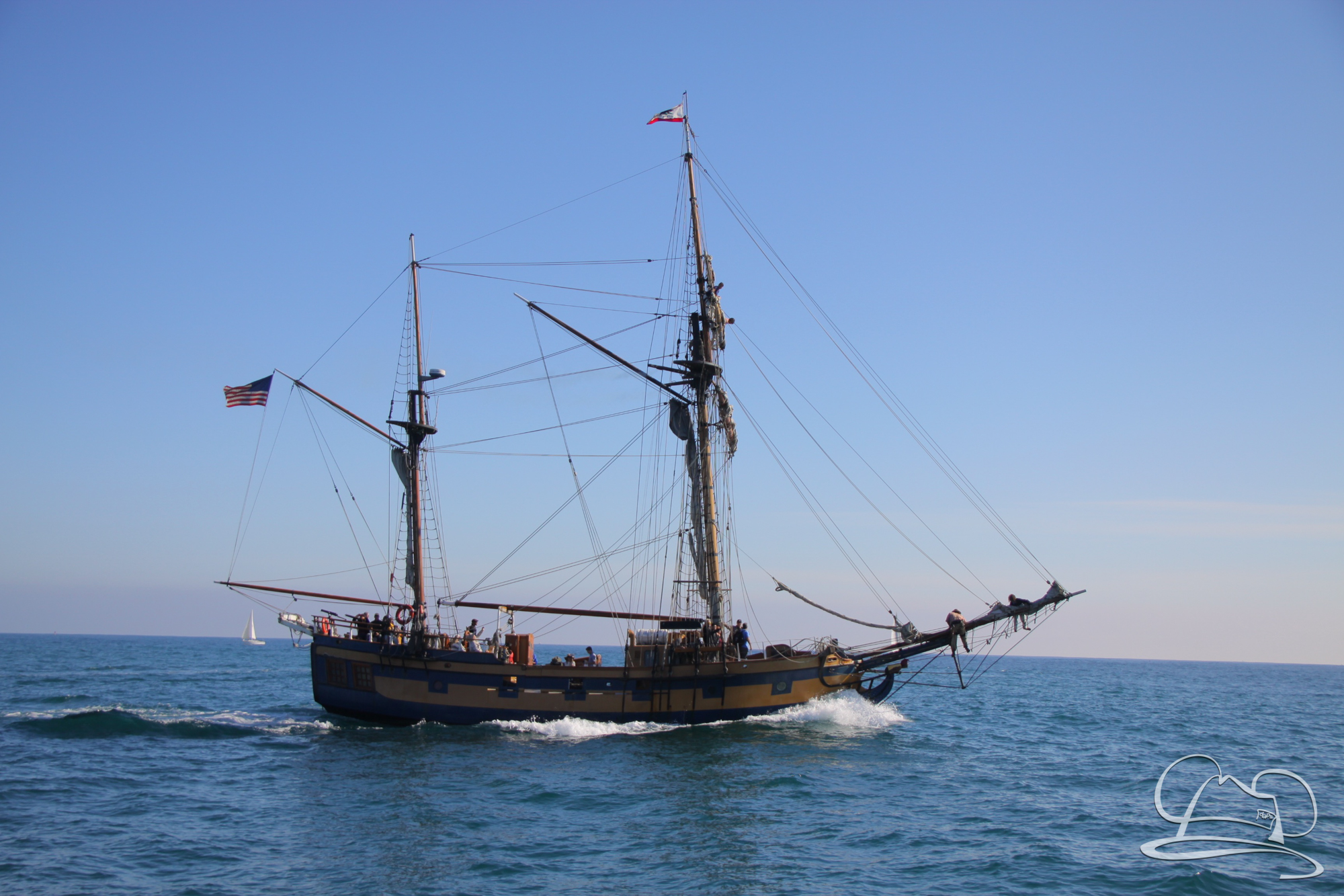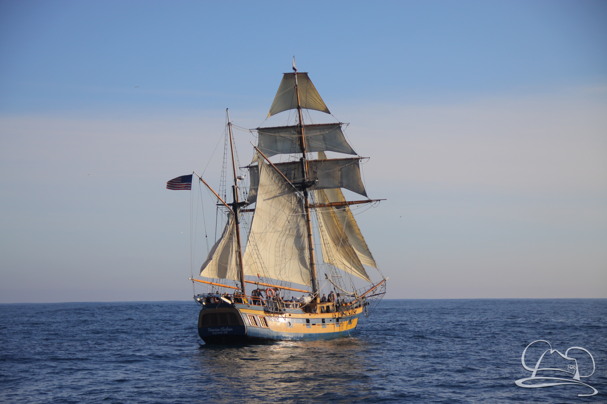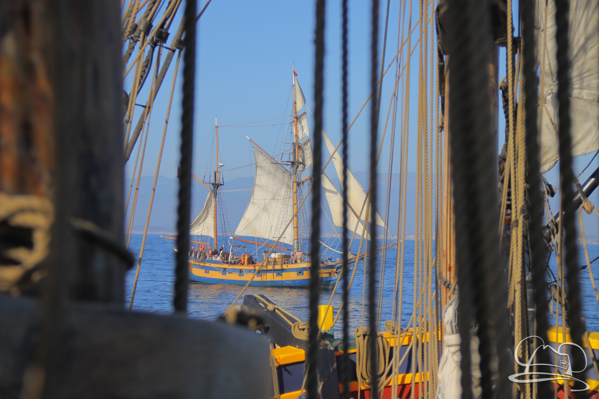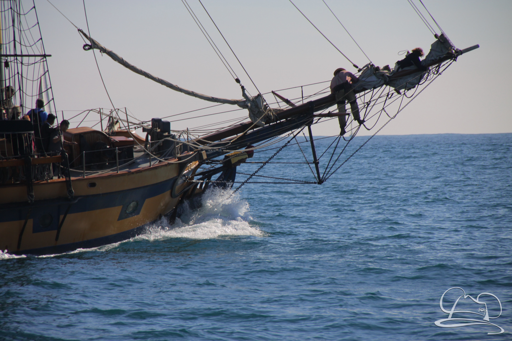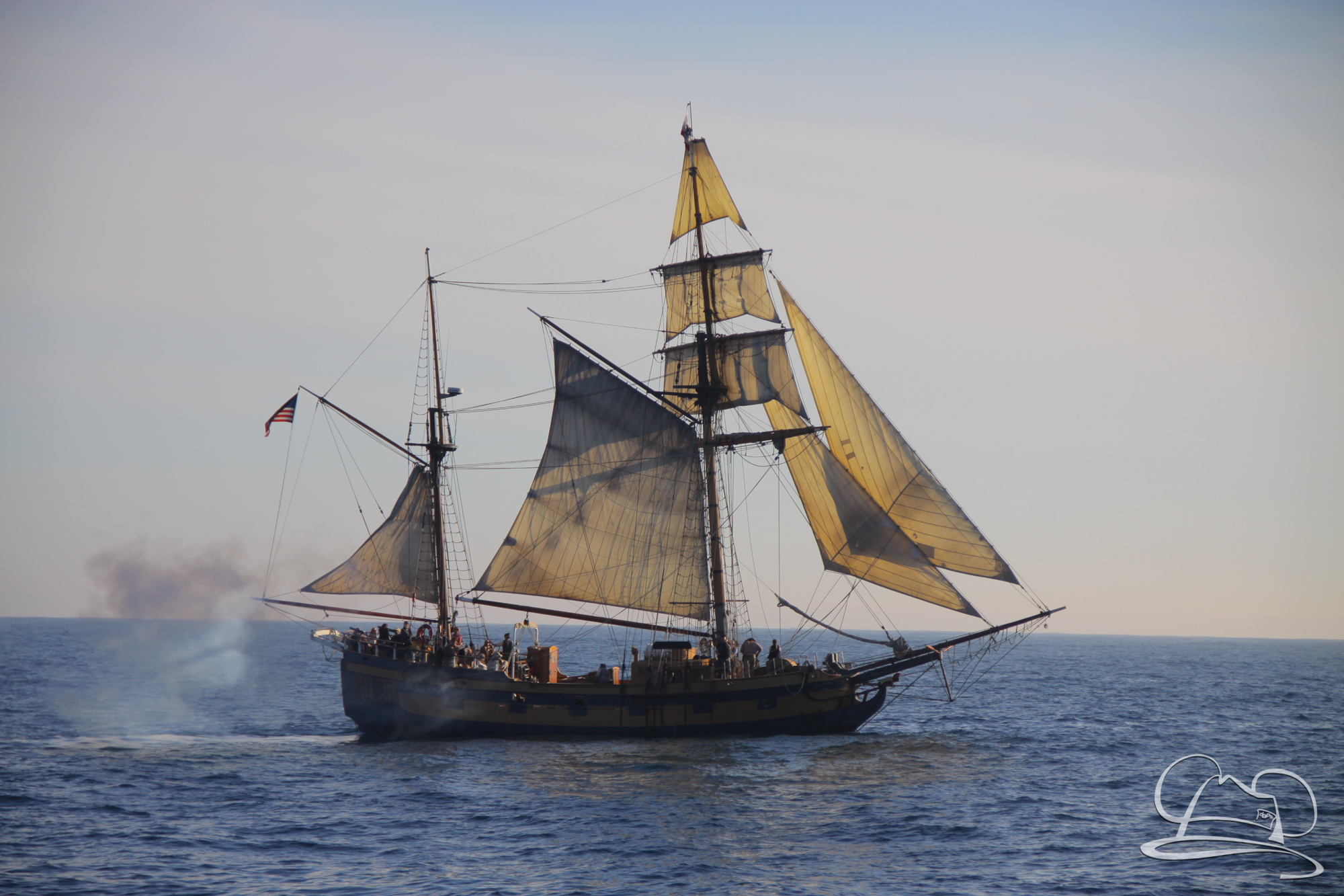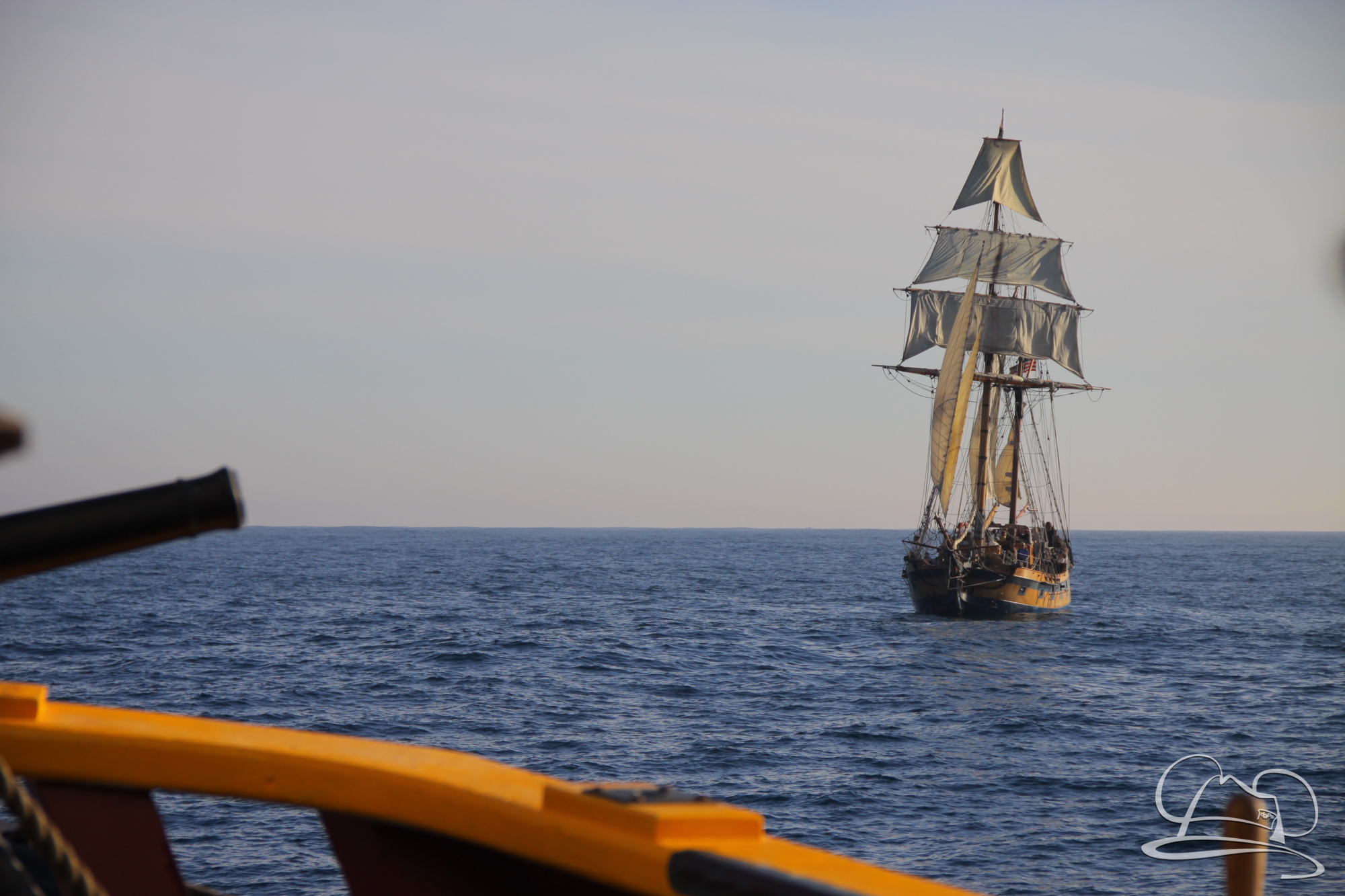 Last Saturday I had the opportunity to experience one of its three hour tours sailing aboard the Lady Washington and experience a simulated battle with the Hawaiian Chieftain. The cruise began in the Channel Islands Harbor in Oxnard, California. We set sail with the Hawaiian Chieftain at 2:00 pm and made our way out into the beautiful Pacific Ocean over some pretty awesome swells. Leaving the harbor the Lady Washington utilized her engines as she made her way out into the sea.