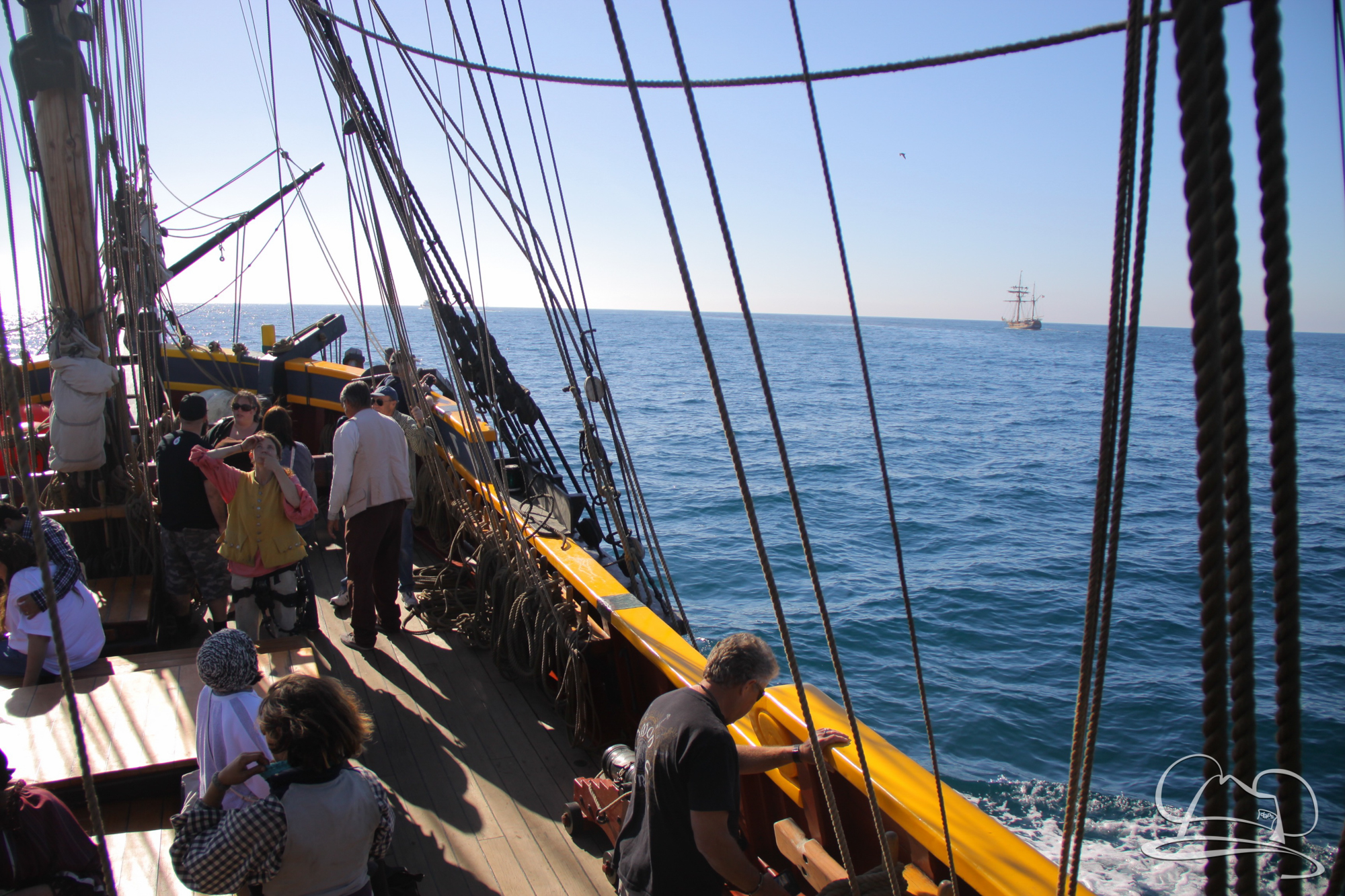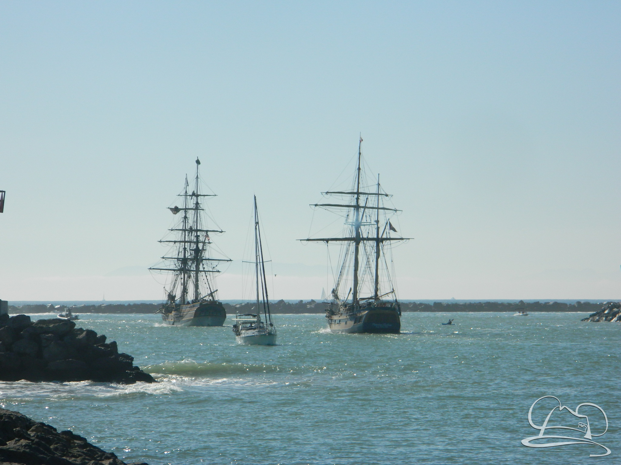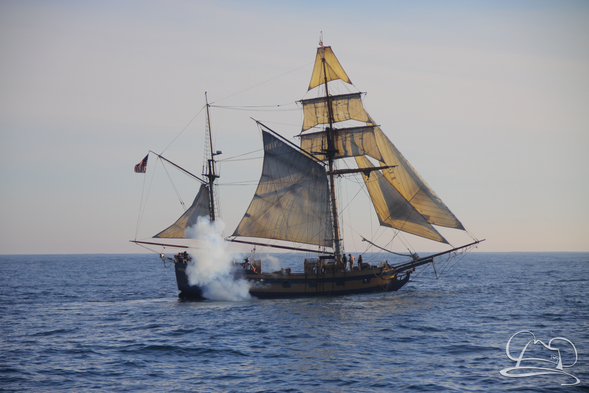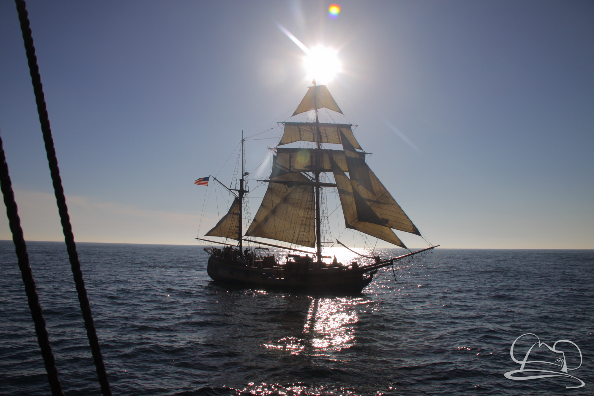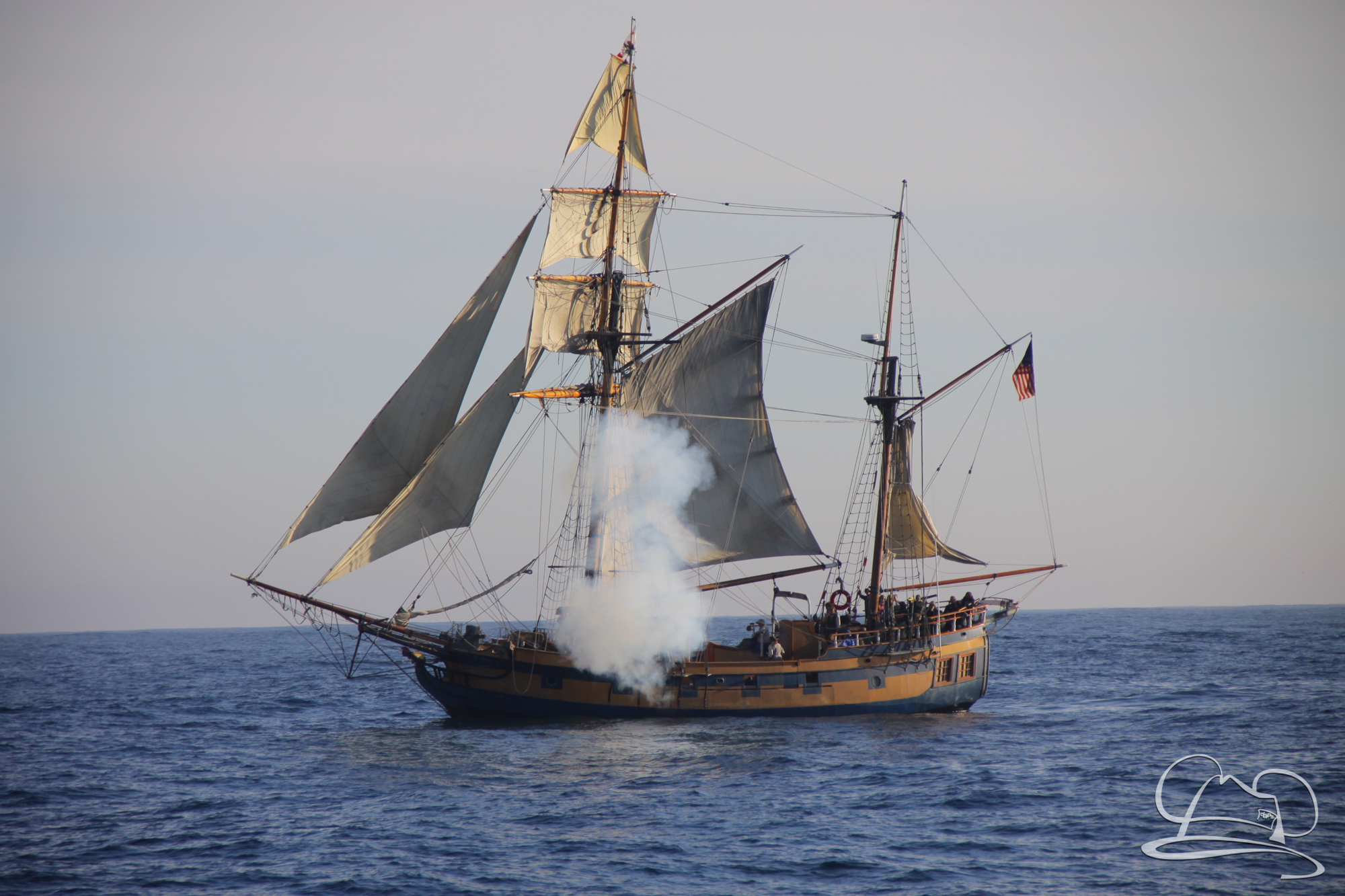 Last Saturday I had the opportunity to experience one of its three hour tours sailing aboard the Lady Washington and experience a simulated battle with the Hawaiian Chieftain. The cruise began in the Channel Islands Harbor in Oxnard, California. We set sail with the Hawaiian Chieftain at 2:00 pm and made our way out into the beautiful Pacific Ocean over some pretty awesome swells. Leaving the harbor the Lady Washington utilized her engines as she made her way out into the sea.