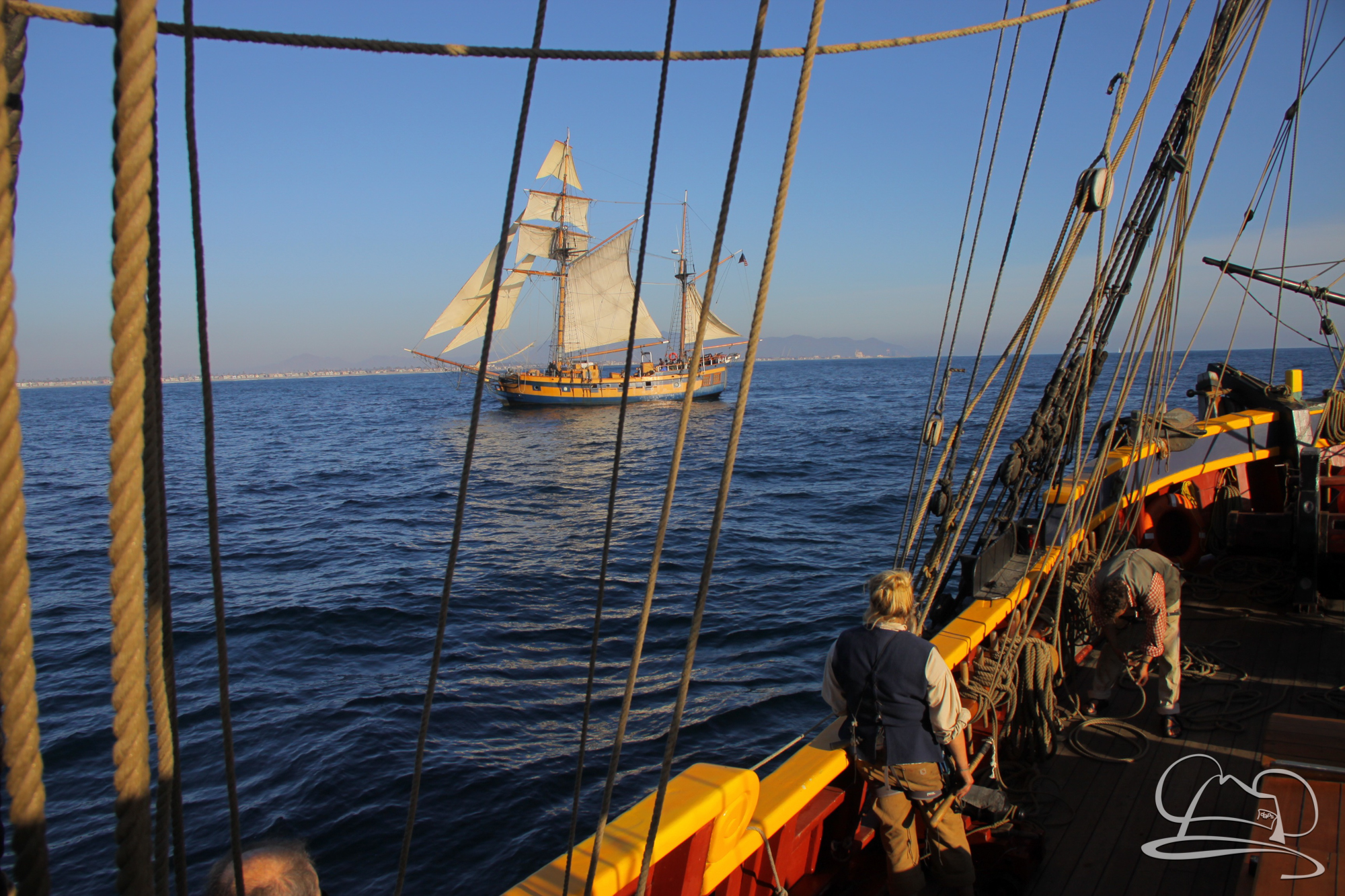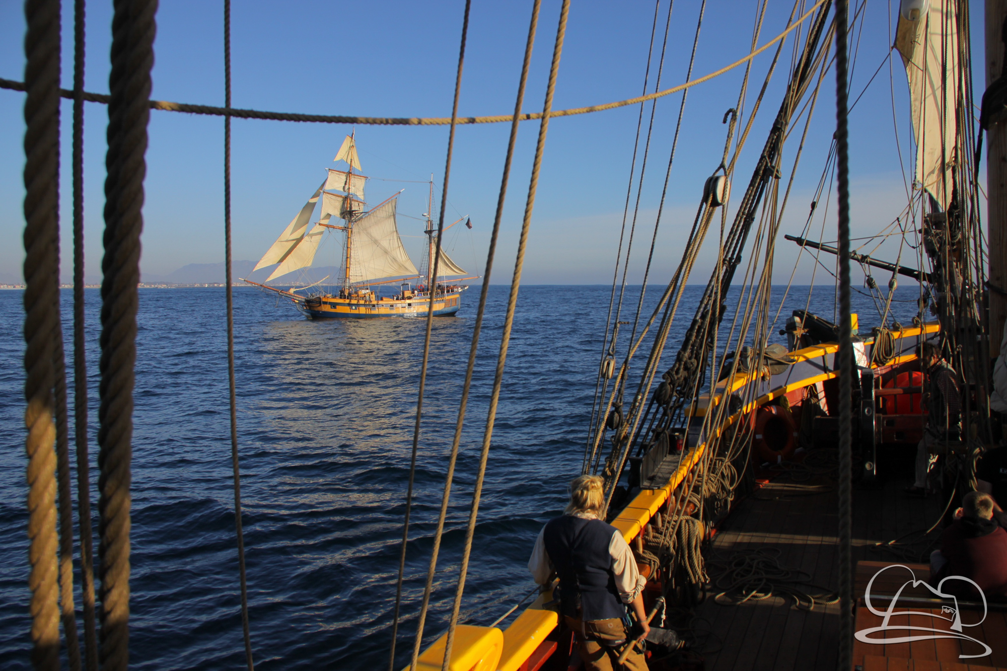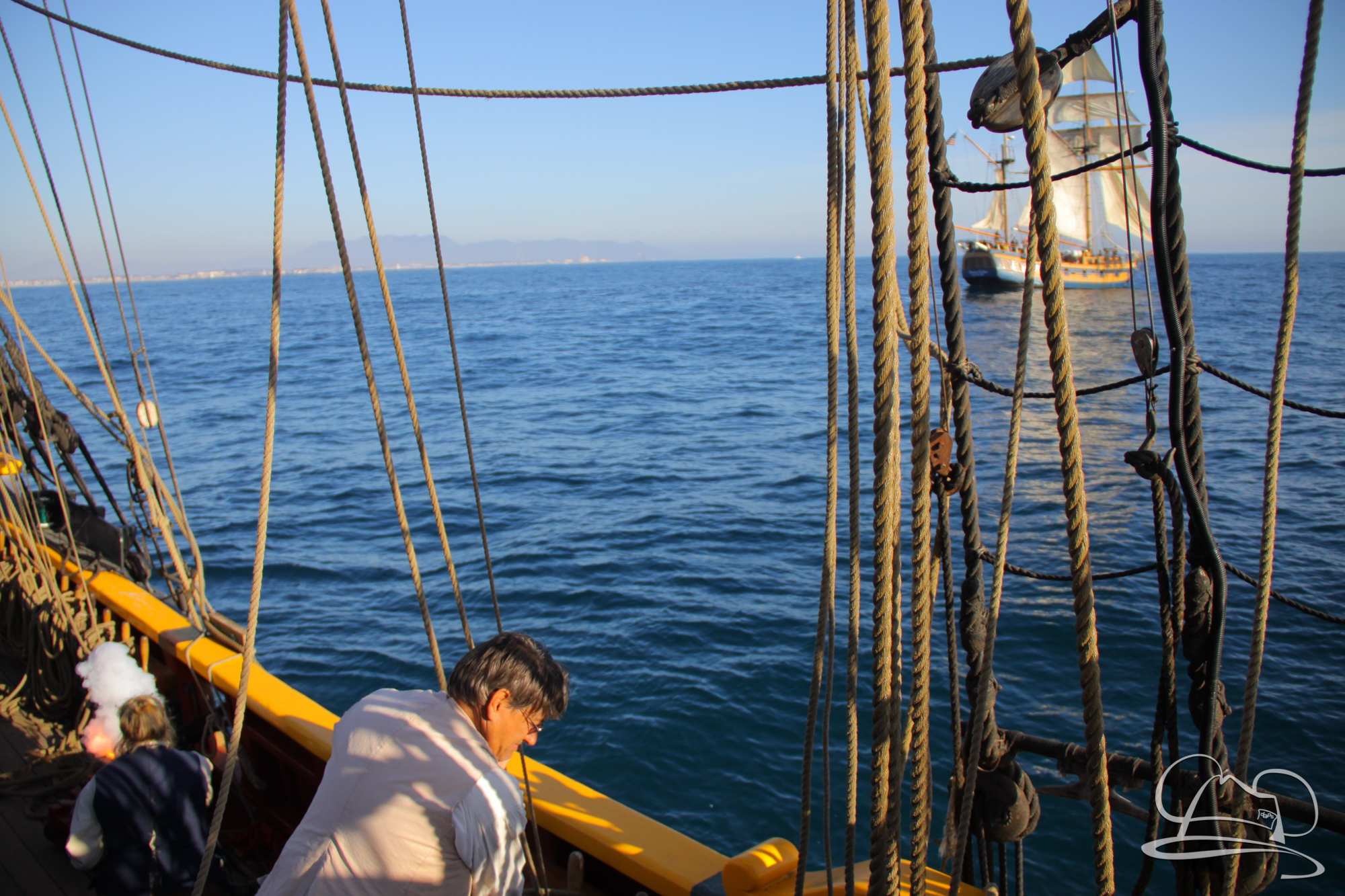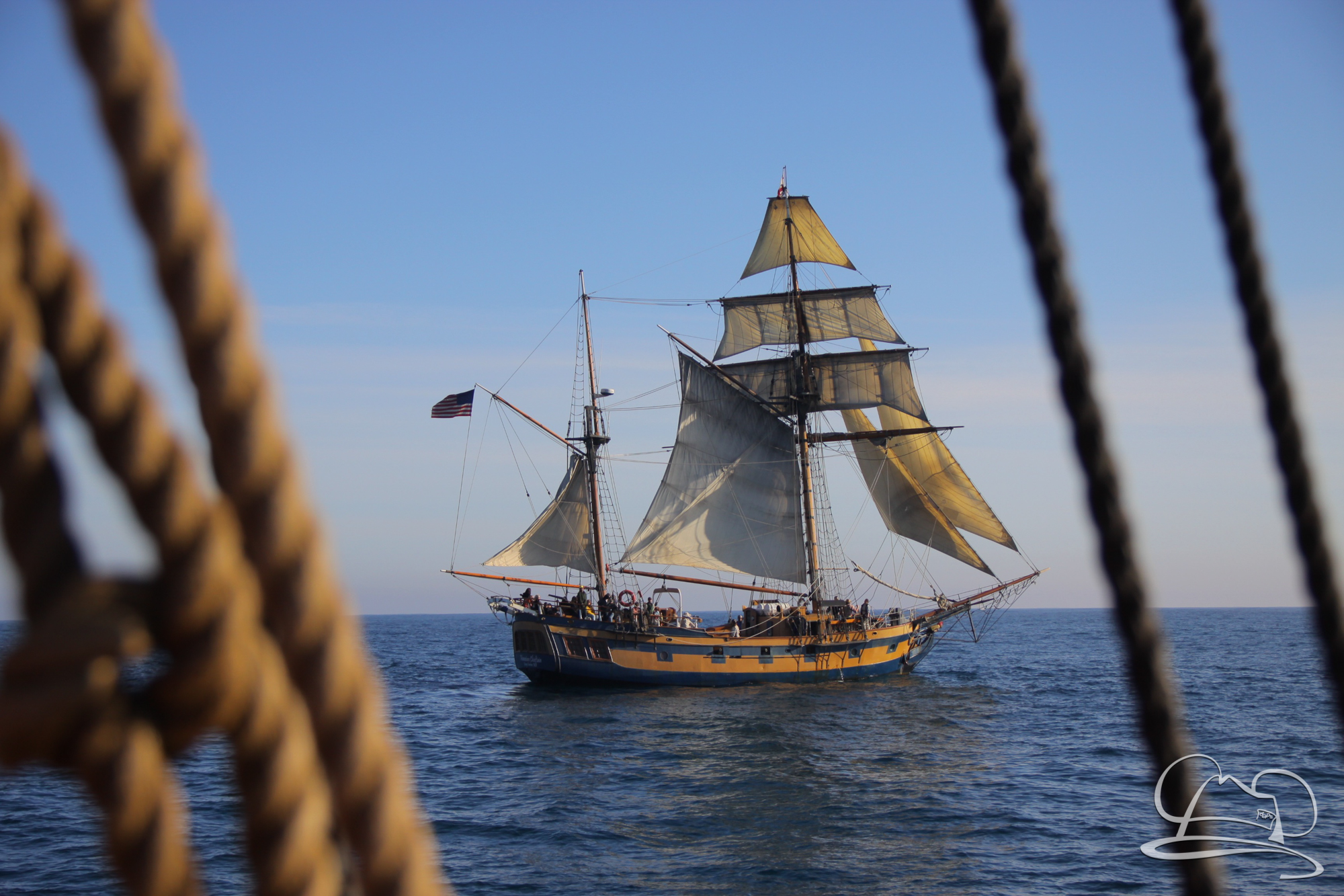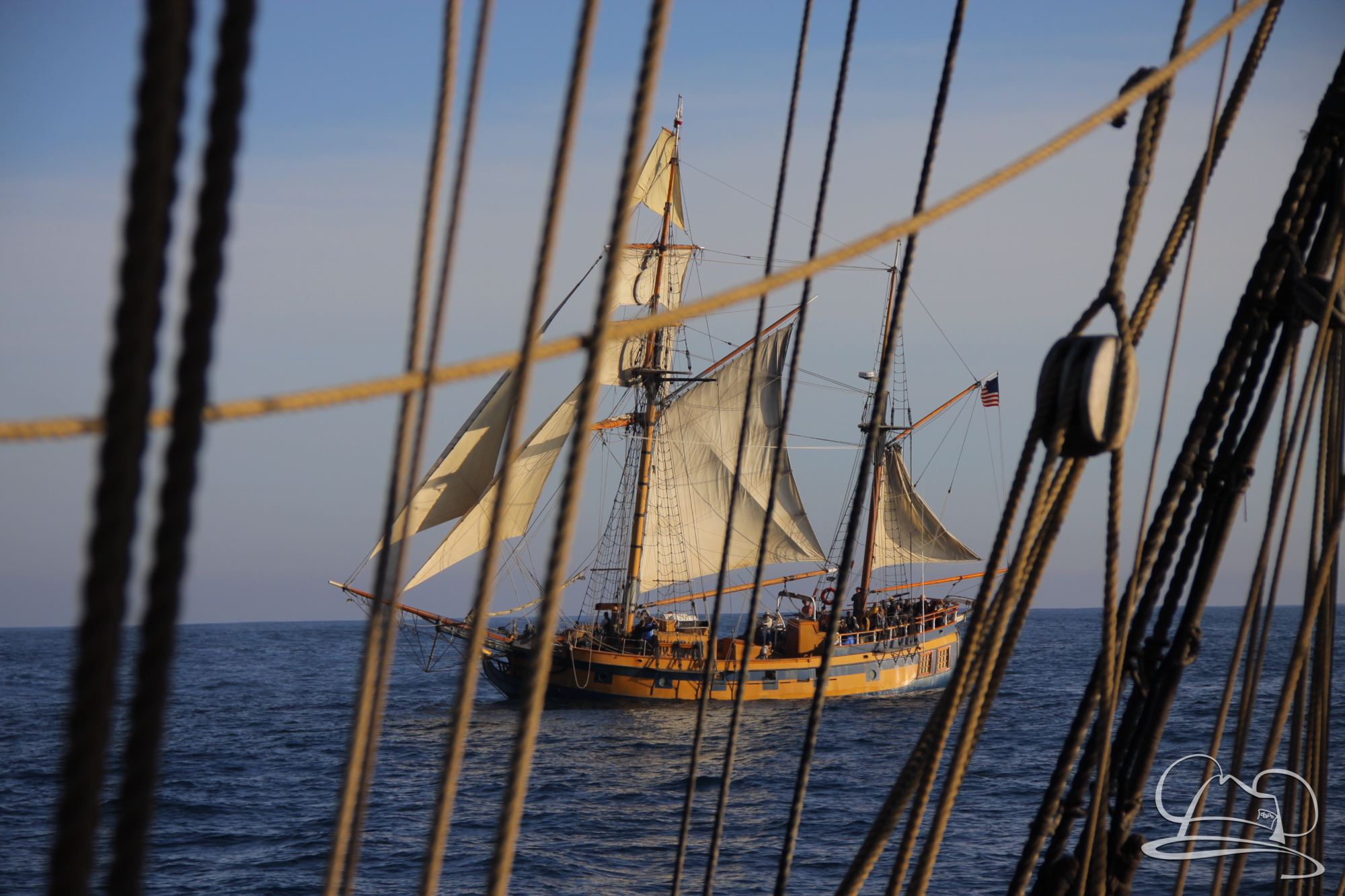 Last Saturday I had the opportunity to experience one of its three hour tours sailing aboard the Lady Washington and experience a simulated battle with the Hawaiian Chieftain. The cruise began in the Channel Islands Harbor in Oxnard, California. We set sail with the Hawaiian Chieftain at 2:00 pm and made our way out into the beautiful Pacific Ocean over some pretty awesome swells. Leaving the harbor the Lady Washington utilized her engines as she made her way out into the sea.